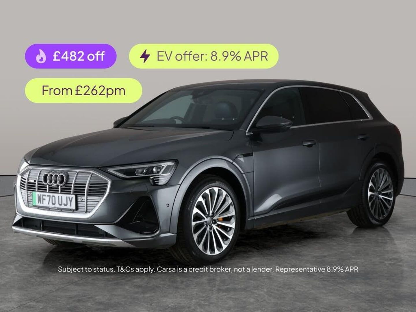 Experience luxury and technology with this stylish Audi e-tron 50 S line SUV in striking grey. Enjoy an upgraded Bang & Olufsen sound system, MMI Navigation Plus, Apple CarPlay, and onboard wifi. Relax in heated leather S line sport seats with driver memory and adjustable suspension for a smooth ride. Stay safe with LED headlights, lane departure warning, and a reversing camera. This Audi e-tron combines advanced features with premium comfort, making every journey exceptional. MOT to 23/04/2026. Visit our website for service history, online valuation, full vehicle specification plus multiple images. Certain features listed may be available via subscription packages at extra costs, please consult with Audi for details. Any feature/option specified here is from 3rd party data. We cannot guarantee the accuracy of any specification supplied by a 3rd party. We recommend that you physically check the specification of the vehicle on site prior to purchase. This information does not form part of the buying contract. Terms & Conditions apply. We have over 2,000 cars available from our 10 national branches, check our website to see all our stock. Our Trustpilot rating is 4.4/5 with over 9,000 reviews.