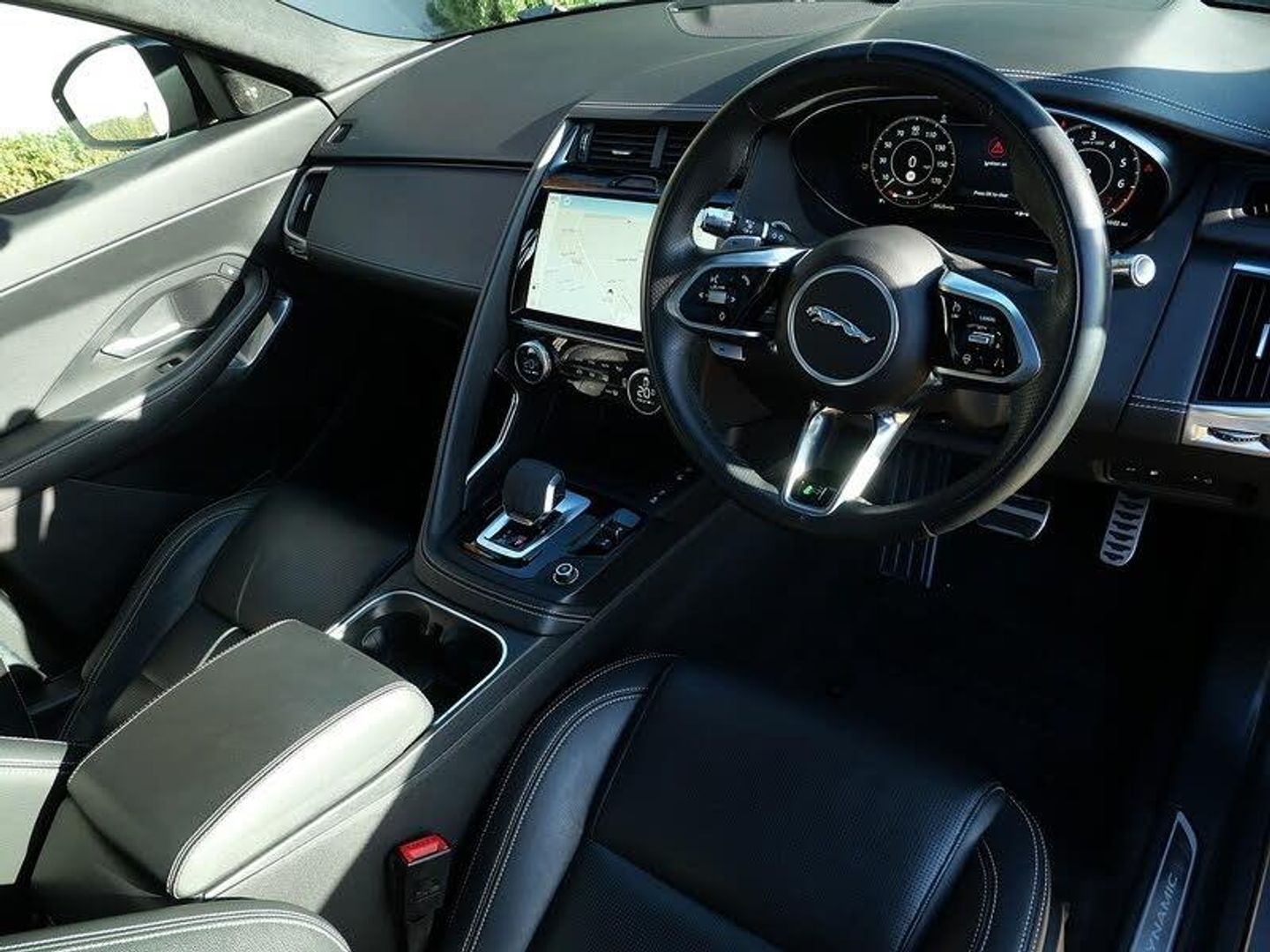 Privacy Glass,Heated Steering Wheel,Fixed Panoramic Roof,Wireless Device Charging with Phone Signal Booster,20in Alloy Wheels - 5 Split-Spoke Gloss Black Finish - Style 5051,Eiger Grey,Grained Leather - Ebony with Ebony-Ebony Interior and Sport Seats, Android Auto, Apple CarPlay, DAB Radio, Meridian Sound System, Blind Spot Assist, Cruise Control with Speed Limiter, Front and Rear Parking Aid, JaguarDrive Control with Adaptive Surface Response, Rear Camera, Voice Control, Electric Windows - Front and Rear with One-Touch Open-Close and Anti-Trap, Heated - Electric - Power Fold Door Mirrors with Approach Lights and Auto-Dimming Driver Side, Heated Front Windscreen, Heated Rear Window, Heated Washer Jets, Rear Fog Lights, LED Tail Lights, Premium LED Headlights with Signature Daytime Running Lights with Front and Rear Animated Directional Indicators and Auto Hight Beam Assist, 12-Way Heated Electric Driver Memory Front Seats with 2-Way Manual Headrests and Rear Seats with Centre Armrest, 2-Zone Climate Control, Analogue Dials with Central TFT Display, Auto-Dimming Interior Rear View Mirror, Ebony Suedecloth Headlining, Power Tailgate-Boot Lid, Rain Sensing Windscreen Wipers, R-Dynamic Branded Leather Steering Wheel, EPAS - Electric Power Assisted Steering, Low Friction Launch, Passive Suspension, Public Charging Cable, Speed Proportional Steering, Torque Vectoring by Braking - TVBB, ASPC - All Surface Progress Control, Dynamic Stability Control - DSC, EBA - Emergency Brake Assist, EBD - Electronic Brake-Force Distribution, EPB - Electric Parking Brake, Hill Launch Assist, Lane Keep Assist, Power Operated Child Locks
