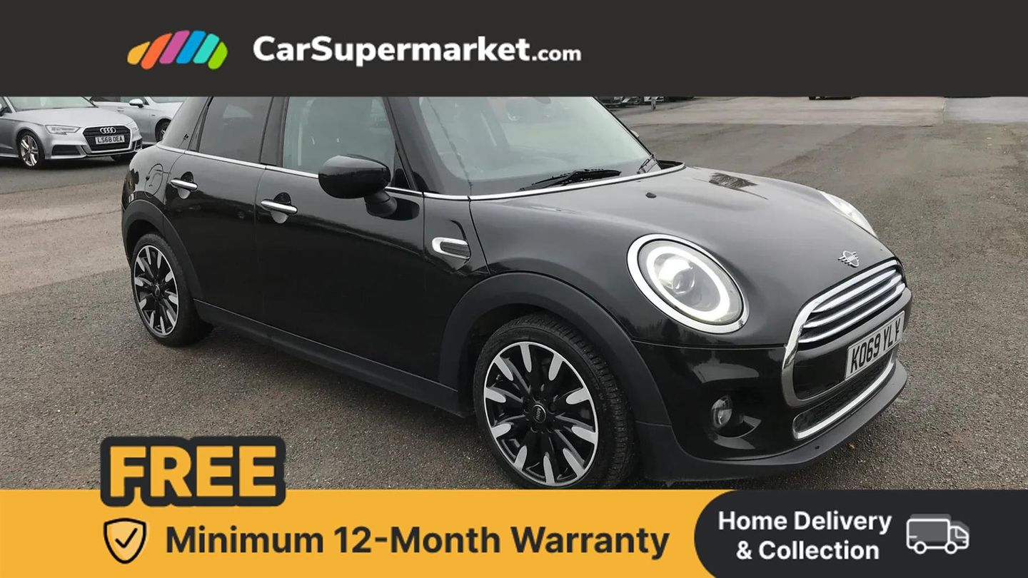 Automatic start/stop function with brake energy recuperation,Compatible mobile phone bluetooth with audio streaming,Electro-mechanical speed dependant steering assistance,Instrument cluster,Mini E-call,MINI TeleServices,On board computer,Service interval indicator,Double Vanos system,Fully variable valve control,High precision injection,FM tuner and DAB digital radio,Automatic headlight activation switch,Body colour fuel filler cap,Chrome border high gloss black slats radiator grille,Chrome line exterior,Dynamic brake lights,Electric front+rear windows,Heated rear window,Heated windscreen washer jets,Left exhaust tailpipe with chrome finisher,Metal door sill strips with MINI imprint,Model logo Cooper on right of tailgate,Radiator grille bars, tailgate handle, lower front grille grating, rear central fog light in chrome,Rain sensor window wipers,Rear fog lights,Rear LED lights with union jack design,Rear window wiper,Side scuttle panel with integrated indicator,Sun/heat protection glass,White indicator lenses,12V Accessory socket in centre console,4 lashing eyes in luggage compartment,60/40 split folding rear seat,Air vents, gear lever base, speakers in doors, door handles in chrome,Chrome interior highlights,Cupholders,Front and rear head restraints,Front and rear isofix with front passenger airbag deactivation,Glove compartment,Height and length steering column adjustment,Interior lighting with 12 basic colours selectable via toggle switch in roof,Leather gearshift lever and handbrake gaiters,LED reading lights, vanity mirror lights, front foot well light and spotlight on front seats,Mechanical seat adjustment, driver seat height adjust, forward/back and front seats backrest,Mini logo projection on floor from drivers exterior mirror,MINI Yours leather steering wheel with silver contrasting stitching with MINI Yours badge,Multifunction steering wheel,Storage compartments in doors,Sunvisors with vanity mirrors,3 point seatbelts on all five seats,6 Airbags - front, side, head and seat belt tensioners,Anti-lock braking system (ABS),DSC - Dynamic Stability Control,Front and rear disc brakes,Hill start assist,Single tone fanfare horn,Tyre pressure monitoring system,Alarm system with tilt sensor, monitoring doors, bonnet interior and tailgate,Electronic vehicle immobiliser,Start/stop toggle with keyless go,Chrome line interior,Tool kit,Comfort Pack,Darkened Rear Glass,MINI Yours Lounge Leather - Carbon Black,Midnight Black,Navigation Pack