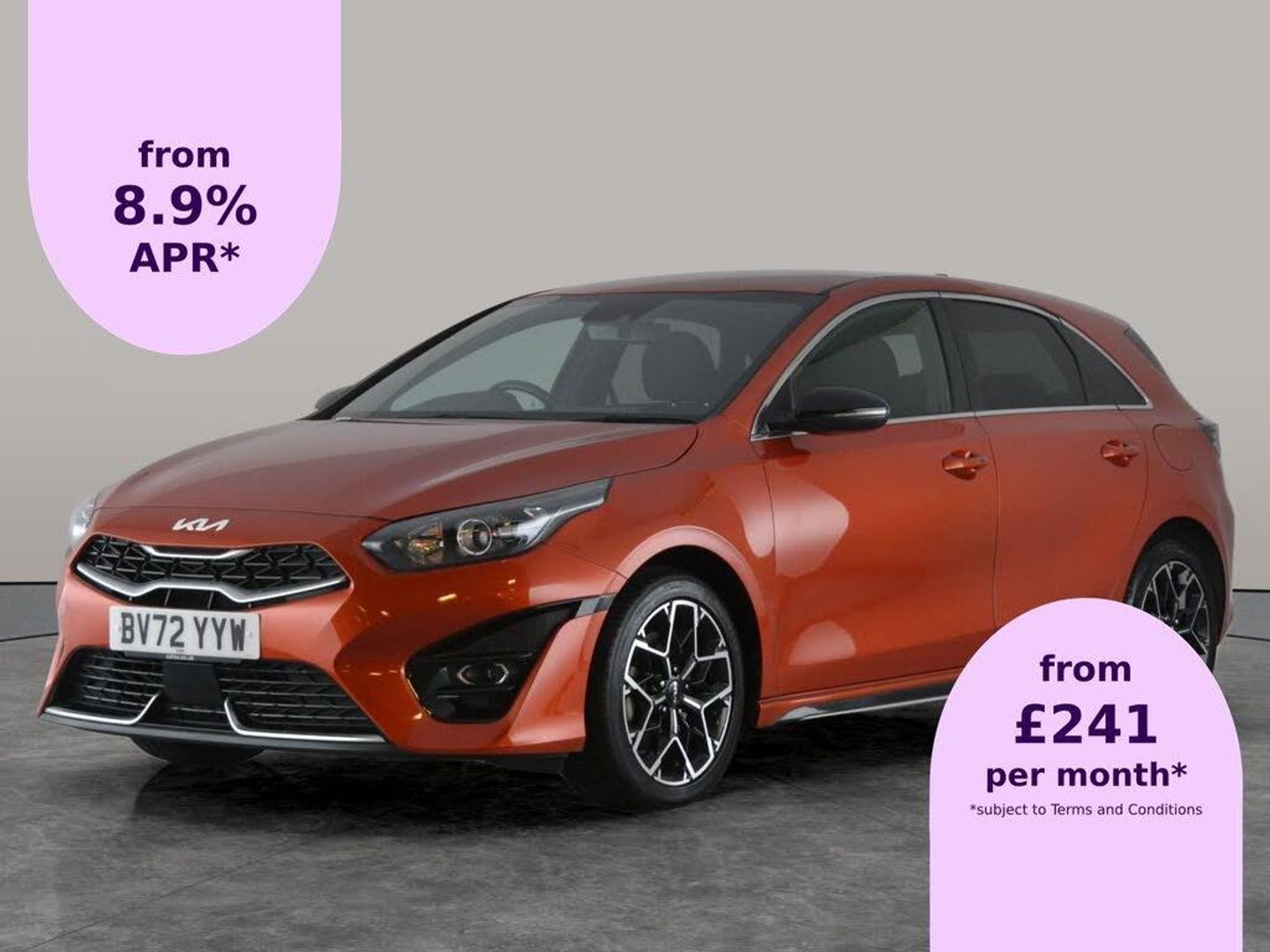 Stand out in this striking orange Kia Ceed GT-Line Hatchback, packed with premium touches. Enjoy the comfort of heated seats and a heated steering wheel, while the integrated sat nav and Apple CarPlay keep you connected on every journey. Parking is effortless with a reversing camera, and keyless entry adds convenience. Safety features include lane departure warning and cruise control. With stylish half-leather seats, dual zone climate control, LED running lights, and 17in alloy wheels, this Ceed blends sporty flair with everyday practicality. 3 services recorded, last serviced on 08/10/2025 at 8,425 miles. MOT to 08/10/2026. Visit our website for service history, online valuation, full vehicle specification plus multiple images. This vehicle is VAT qualifying. Any feature/option specified here is from 3rd party data. We cannot guarantee the accuracy of any specification supplied by a 3rd party. We recommend that you physically check the specification of the vehicle on site prior to purchase. This information does not form part of the buying contract. Terms & Conditions apply. We have over 2,000 cars available from our 10 national branches, check our website to see all our stock. Our Trustpilot rating is 4.4/5 with over 9,000 reviews.