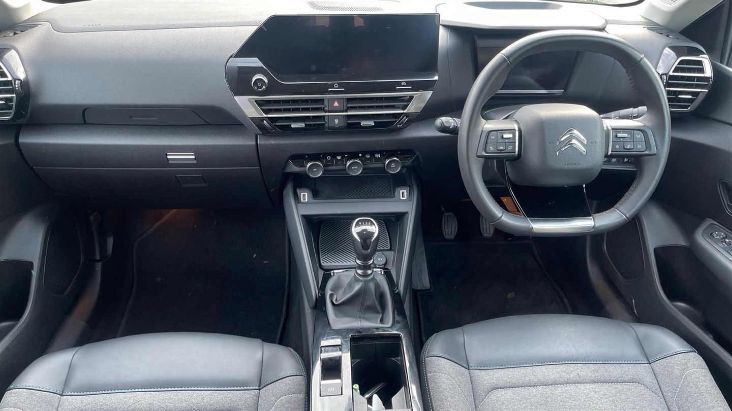 Features include Rear Sensors with Rear Camera, Cruise Control/Speed Limiter, Forward Collision Warning, Folding Mirrors, Lane Departure Warning, 3D Navigation and even Head Up Display. The Citroen C4 takes on Citroen's latest styling ethos with bold colours. Our model looks superb with 18in 'Aeroblade' Alloy Wheels on this 'Sense Plus' model. The 1.2 Puretech Petrol Engine is refined and efficient whilst offering 130ps for swift acceleration when needed. The cabin is detailed with Citroen's Advanced Comfort Technology that is trimmed in 'Cheveron Cloth and Leatherette' upholstery with Silver Contrast Stitching. Isofix Points are located in the rear for younger passengers. A 10in 'Citroen Connected Nav' display includes access to DAB radio bands with Bluetooth and USB media connections. Navigation and Apple Carplay/Android Auto functions are included too..