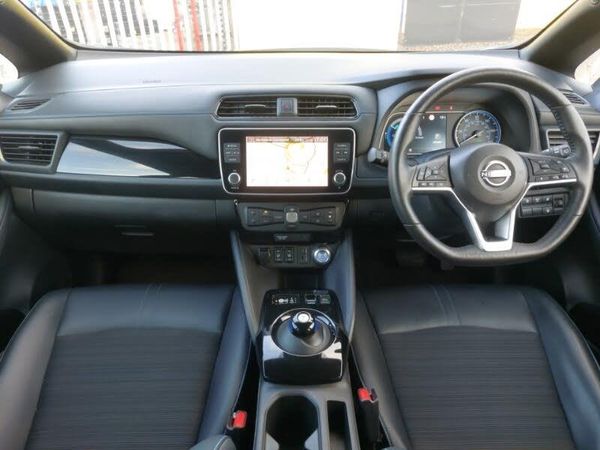 Apple car play/Android Auto, Heat pack - LEAF, 8" touchscreen navigation and entertainment system, Nissan connect services with nav, Adaptive cruise control, LED daytime running lights, Rear parking sensor, Speed limiter, Intelligent Cruise control (ICC), Push button starter, Intelligent lane intervention, Lane departure warning system, 6.6 kw On-board charger, Automatic rain sensing wipers, Auto dimming rear view mirror, High beam assist, Rain sensor, Automatic air conditioning with timer and heater, Hill start assist, 17" Alloy wheels