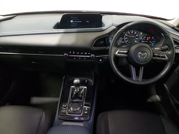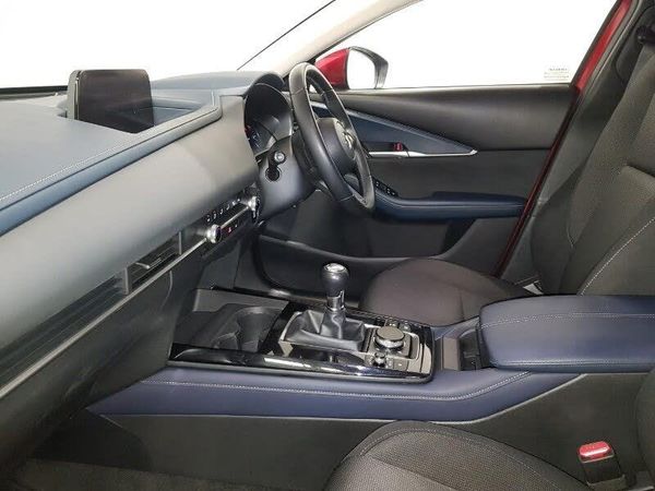 Integrated Mazda navigation system, 8.8" Colour centre touch screen display with Mazda Connect infotainment, 7" TFT Colour driver instrument panel display, Adaptive cruise control (Mazda radar cruise control) features stop and go, Apple car play/Android Auto, Lane keep assist system (LAS) with Lane departure warning system (LDWS), Blind spot monitoring with rear cross traffic alert, Driver attention alert system, Engine start/stop button, Integrated bluetooth, Rear parking sensor, Trip computer, PAS, 2 USB charging ports, Multimedia Commander including separate volume dial, Steering wheel mounted audio/bluetooth controls, Coming/leaving home lighting function, LED headlamps with auto levelling, LED headlights with halogen daytime running lights and high beam control, Rain sensing front wipers with adjustable speed and intermittent wipe, 60/40 split fold down rear seats, Driver seat manual slide, recline and height adjust, Front passengers seat manual slide, recline and height adjustment, ISOFIX child seat anchorage points attached on outer rear seats, Leather wrapped steering wheel with telescopic and tilt adjustment, Manual air conditioning, 16" Grey metallic alloy wheels