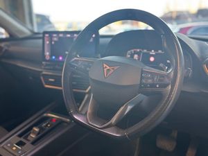 12V Socket in Front, 18in Alloy Wheels - Performance Machined Sport - Black and Silver, 60-40 Rear Seats with Central Armrest and Mechanical Seat Release, ABS - Anti-Lock Braking System, Airbag on Driver and Front Passenger Side with Front Passenger Airbag Deactivation, Anti-Theft Alarm, Asphalt Blue, Auto Dimming Rear View Mirror, Black Sports Seats with Copper Stitching, Breakdown Kit, Charging Cable - Mode 2 - 10amp, Charging Cable - Mode 3 - 16amp, Copper and Aluminium Interior Detailing, CUPRA Connect - Safety - Service - Remote and Online, Daytime Running Lights with Automatic Headlight Control and Coming-Leaving Home Lights, Digital Cockpit and Configurable Dashboard, Door Mirrors Electrically Adjustable - Folding and Heated, Driver Alert System, Driving Profile Selection, Dynamic Headlight Range Control, Electric Window - Front, Electronic Locking Differential with Dynamic Traction Support, Electronic Parking Brake, Forward Collision Warning with Automatic Braking, Front and Rear Head Restraints, Front Centre Armrest, Front Fog Lights with Cornering Function, Front Side Curtain Airbag, Gloss Black Roof Rails and Window Surrounds, Headlining - Grey, Illuminated Interior Front Door Sills, Illuminated Sunvisor with Mirror, Interior Ambient Lighting, ISOFIX, Kessy - Keyless Entry and Start, Lane Assist, Leather Multi-function Steering Wheel - Heated with Gear Shift Paddles, Leather Multifunction Steering Wheel, LED Headlight, LED Taillights with Dynamic Indicator, Locking Wheel Bolts, Manually Adjustable Height and Lumbar Support for Front Seats, Navigation System, Power Steering, Predictive Adaptive Cruise Control with Speed Limiter, Rain Sensing Wipers, Reading Lights - 2x Front - 2x Rear, Rear Diffuser with Black Simulated Exhaust Pipes, Rear Parking Sensors, Safety and Driving Pack M, Seat Belt Reminder, Three Zone Climate Control with Control Panel in the Rear, Tinted Rear Windows, Tyre Pressure Monitoring System, USB Type C x4 - x2 Front and x2 Rear, Welcome Lights, Wireless Phone Charger