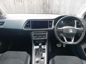 Cruise control system with speed limiter, SEAT drive profile with driving experience button - Normal, Sport, Eco and Individual mode, gearshift, steering and throttle response, Self parking functionality (includes front and rear parking sensors), Wireless full link smartphone integration, Wireless phone charger, Steering wheel mounted audio/phone controls, Chrome roof rails, Daytime running lights, Dynamic headlight range control with self adjusting whilst driving, Electric adjustable/heated/folding door mirrors, Front and rear electric windows, Rear spoiler, Aluminium pedals, Dual zone climate control, Leather steering wheel and gear knob, Steering wheel mounted gearshift paddles, Convenience pack - Ateca, Interior lighting pack - Ateca, Navigation system pack with DAB - Ateca, Electric parking brake with auto hold function, Hill hold control, Tiredness recognition system, Traction control, Alarm, Keyless entry, 18" Brillaint silver alloy wheels