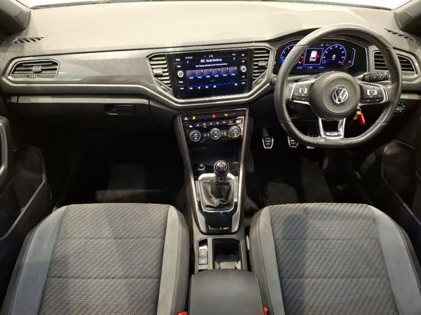Adaptive cruise control with front assist, radar sensor controlled distance monitoring, city emergency braking, App-Connect, Automatic start/stop system, Voice activation, Rear tinted glass from B-pillar backwards approx 65% tinted, Climate control - 2 zone electronic air conditioning with automatic air recirculation and allergy filter, R line styling pack - T-Roc, Winter pack - T-Roc, Active Info Display, 10.3" high resolution TFT dash display screen with customised information, Discover navigation, 8" touch screen navigation/infotainment system with Car-Net, European map, CD/radio, 2D/3D map and speed limiter, Lane assist, Dynamic navigation based on TMC+, Tyre pressure loss indicator
