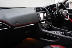12V Power Socket - Front, 12V Power Socket - Rear - Luggage Compartment, 12V Power Socket - Row Two, 2-Zone Climate Control, 20in Alloy Wheels - Blade 5-Spoke - Grey Diamond Turned Finish, 3 Month Trial Data Plan, 3-Flash Lane Change Indicators, 350mm Brakes with Red Brake Calipers, 380 Watts, 40-20-40 Split Fold Rear Seat, ABS - Anti-locking Braking System, AEB - Autonomous Emergency Braking, AM-FM Radio, ASPC - All Surface Progress Control, Adaptive Dynamics with Configurable Dynamic Mode, Airbags - Driver, Airbags - Front Side, Airbags - Full Length Side Curtain, Airbags - Passenger, Analogue Dials with 5in Full Colour TFT Display, Approach Illumination - Automatic via Remote, Auto-Dimming Interior Rear View Mirror, Automatic Headlight On, Aux-In - 3.5mm, Bluetooth Audio Streaming, Bluetooth Telephone Connectivity, Body Coloured S Door Claddings with Satin Chrome Finishers, Bootlid - Badging - S AWD, Bootlid Jaguar Leaper and Wordmarque, Bootlid Nameplate Badge, Brake Pad Wear Indicator, Bright Metallic Sports Pedals, Bumper Outer Grille Bezel - Satin Chrome, Bumper Outer Grille Mesh - Grained Black, Capacitive Touchscreen, Carpet Mats - Premium - Jet, Centre Console - Side Stowage, Centre Console - Storage Surround Finishers - Satin Chrome, Centre Lower Valence - Satin Silver, Configurable Dynamics, Cruise Control with Adaptive Speed Limiter, DAB Radio + and DMB, Dark Hex Aluminium Instrument Panel Finisher, Daytime Running Lights - LED, Diffuser - Satin Silver, Door Mirrors - Body Coloured, Door Mirrors - Power Folding with Auto-dimming-Signature Approach Lamps and Blacked Side Repeaters, Door Trim - Luxtec, Dual Tailpipes with 84mm Finishers, Dynamic Route Guidance, Dynamic Stability Control - DSC, Dynamic Volume Control, EBA - Emergency Brake Assist, ECO Data, EPB - Electric Parking Brake, Electric Windows - Front and Rear with One-Touch Open-Close and Anti-Trap, Fold Flat 6 Degrees - Row 2 Seats, Follow Me Home Lighting, Front Armrest with Storage Compartment, Front Fog Lights, Front Grille Badge - S, Front Headrests - S Branded Embossing, Front Parking Aid, Gloss Black Rear Valance, Glove Compartment Lockable, Glovebox Finisher with Jaguar Wordmark, Hazard Lights Under Heavy Braking, Head Restraint - Rear Centre, Headlight Power Wash, Headlights - Self Leveling, Headlights - Xenon, Headlining - Morzine - Jet, Headrest - Manual Adjustable, Heat Insulating Glass - Green All-round, Heated Front Seats, Heated Front Windscreen, Heated Washer Jets, Hill Launch Assist, ISOFIX Rear, InControl - Remote Esstentials, InControl Apps, InControl Protect, InControl Remote Premium, InControl Touch Navigation - SD, InControl WiFi, Instrument Panel Topper - Cuir Grain Wrapped, Instrument Panel Upper Fascia - Jet, Interior Front Door Handles with Separate Locking Switches, Interior Mood Lighting, Jaguar Performance Braking System, Jaguar Sequential Shift, Jaguar Smart Key System with Keyless Entry, Jaguar Smart Key System with Keyless Start, Jaguar Tyre Repair System, JaguarDrive Control with Dynamic - Normal - ECO and Winter, JaguarSense - Overhead Light Console, JaguarVoice, LED Tail Lights, Lane Departure Warning, Loadbay - Premium Luggage Tie Downs, Meridian Sound System - 380W, Meshed Aluminium Trim Finisher, Metal Treadplates with S Branding, Optimised Assistance Call, Outside Temperature Gauge, Passive Front Head Restraints - Whiplash Protection, Perimeter Alarm, Power Operated Child Locks, Power Steering - Speed Sensitive, Powered Tailgate, Radiator Grille - Gloss Black Insert with Satin Chrome Surround, Rain Sensing Windscreen Wipers, Rear Armrest with Cupholder, Rear Bumpers with Corners - Body Coloured - S, Rear Cup Holders in Armrest, Rear Parking Aid, Rear View Camera, Red Brake Calipers, Reversible Boot Floor - Carpet-Rubber, Roof Rails - Gloss Black, Row 2 Air Vents, S Front Bumper, SOS Emergency Call with Automatic Collision Detection, Satin Chrome Frame - Touchscreen, Seat - Cushion Height - Electric, Seat - Cushion Til