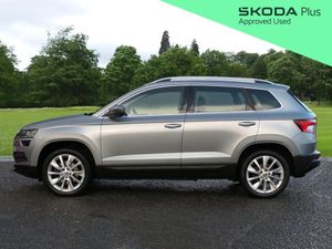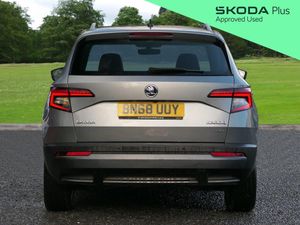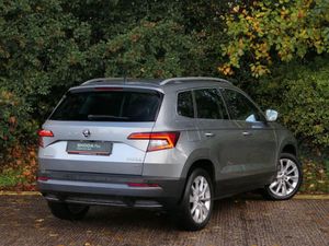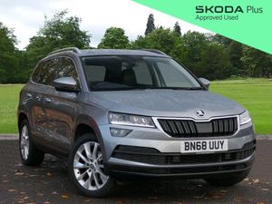 Introducing this 2019(68), Skoda Karoq SE L 2.0 TDI 150PS 4x4 6-speed manual finished in Business Grey Metallic with 18" Braga Silver alloy wheels. Advanced driving assists include cruise control with speed limiter, front assist and light assistant, providing added safety and ease on every journey. Front and rear parking sensors, together with a rear-view camera, make manoeuvring straightforward whether in busy car parks or at home. Connectivity and entertainment are seamless with DAB radio, Bluetooth, Apple CarPlay and Android Auto, keeping you connected wherever you go. LED headlights ensure excellent visibility for safer night-time driving, while satellite navigation helps you stay on course, particularly useful on longer trips. Dual-zone climate control maintains the ideal cabin temperature throughout the year, complemented by heated front seats for comfort during colder months. Drive mode select allows you to adjust performance to your preference, with an offroad display providing essential data when tackling more challenging terrain. ULEZ compliant. Part exchanges welcome. We are driven by customer satisfaction and all our cars are carefully prepared to our own and Skoda's exacting approved standards, both mechanically and cosmetically, additionally with a minimum of 12 months warranty, 12 months breakdown roadside assistance and minimum 6 months MOT. For more information, to book your test drive or to request a personalised walk-around video of a vehicle, please contact our team at Simpsons Skoda Colne.