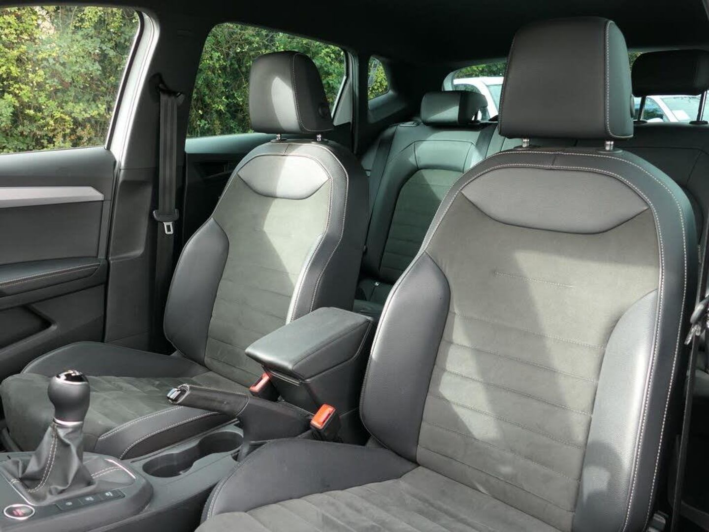 'Lights On' Reminder warning buzzer, 9.2" touchscreen navigation system with type C USB socket, Voice control and DAB/AM/FM radio, Auto start and stop system, Bluetooth audio streaming with handsfree system, Digital clock, Digital cockpit, E-call, Front and rear parking sensors with rear view camera, Full link smartphone integration with mirror link, wireless apple carplay, Google android auto + USB Type C cable for apple and android devices, Lane assist, Low fuel warning light, Outside temperature gauge, Power Steering, Seat connect with safety, service, remote and online, SEAT drive profiles and ECO function, SEAT logo boot release, Speed limiter, Traffic sign recognition, Trip computer, Comfort suspension, Auxiliary input socket, Radio/MP3 player, SD card slot, Steering wheel mounted controls, Anti theft roof antenna, Atom grey door mirrors, Auto dimming rear view mirror, Automatic rain sensing wipers, Body colour bumpers, Body colour door handles, Chrome window surround and upper grille surround, Dark tinted rear windows, Electric adjustable/heated/folding door mirrors, Electric front windows, Electric headlight adjustment, Electric rear windows, Front/rear fog lights, FULL LED automatic headlights with dynamic headlight range control, coming and leaving home, LED daytime running lights, LED tail lights, Rear side wing doors, Rear wiper, Third brake light, 3 seat bench in 2nd row, 60/40 split folding rear seat, Ambient interior lighting, Chrome detailing and black headlining, Comfort seats, Dual zone climate control with combination filter, Front centre armrest, Front courtesy lights, Front cupholders x 2, Front reading lights, Gear shift indicator, Glovebox, Height adjustable front and rear headrests (five), Height adjustable front seats, Height/reach adjust steering wheel, Illuminated air vent surrounds, Illuminated boot, Instrument lighting with brightness control, Isofix, Leather multifunction flat bottomed sports steering wheel, Microsuede cloth upholstery, Passenger sunvisor, Single front passenger seat, Storage pockets on back of front seats, Sunvisors with mirror and driver side card holder, 3 point seatbelts on all 3 rear seats, ABS, Active front headrests, Child locks on rear doors, Electronic stability control, Energy recovery system, Front assist forward collision warning and autonomous emergency braking, Front driver and passenger side airbags with curtain airbag and front passenger airbag deactivation, Hill hold control, Multi-Collision braking, Seat belt reminder for front and rear seats, Tiredness recognition system, Tyre pressure monitoring system, Electronic engine immobiliser, KESSY Keyless entry and go, Locking wheel bolts, Perimeter alarm and interior monitoring with backup horn and tow away protection, Remote central locking + deadlocks, 17" Dynamic machined alloy wheels in Nuclear grey
