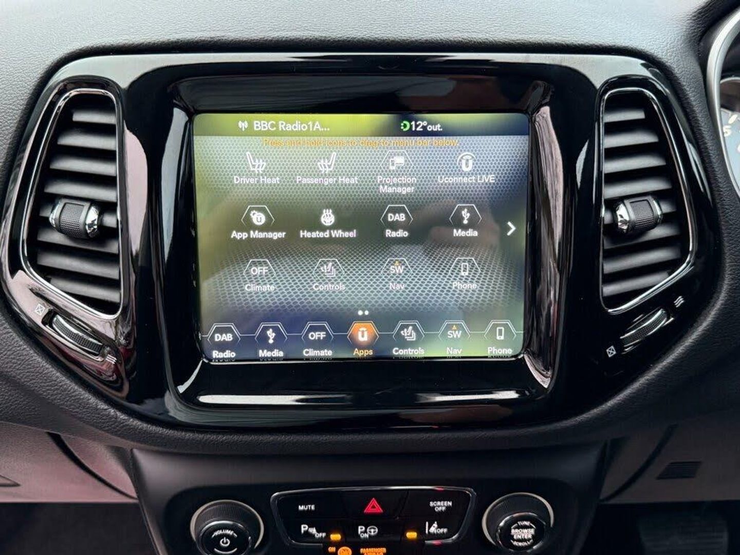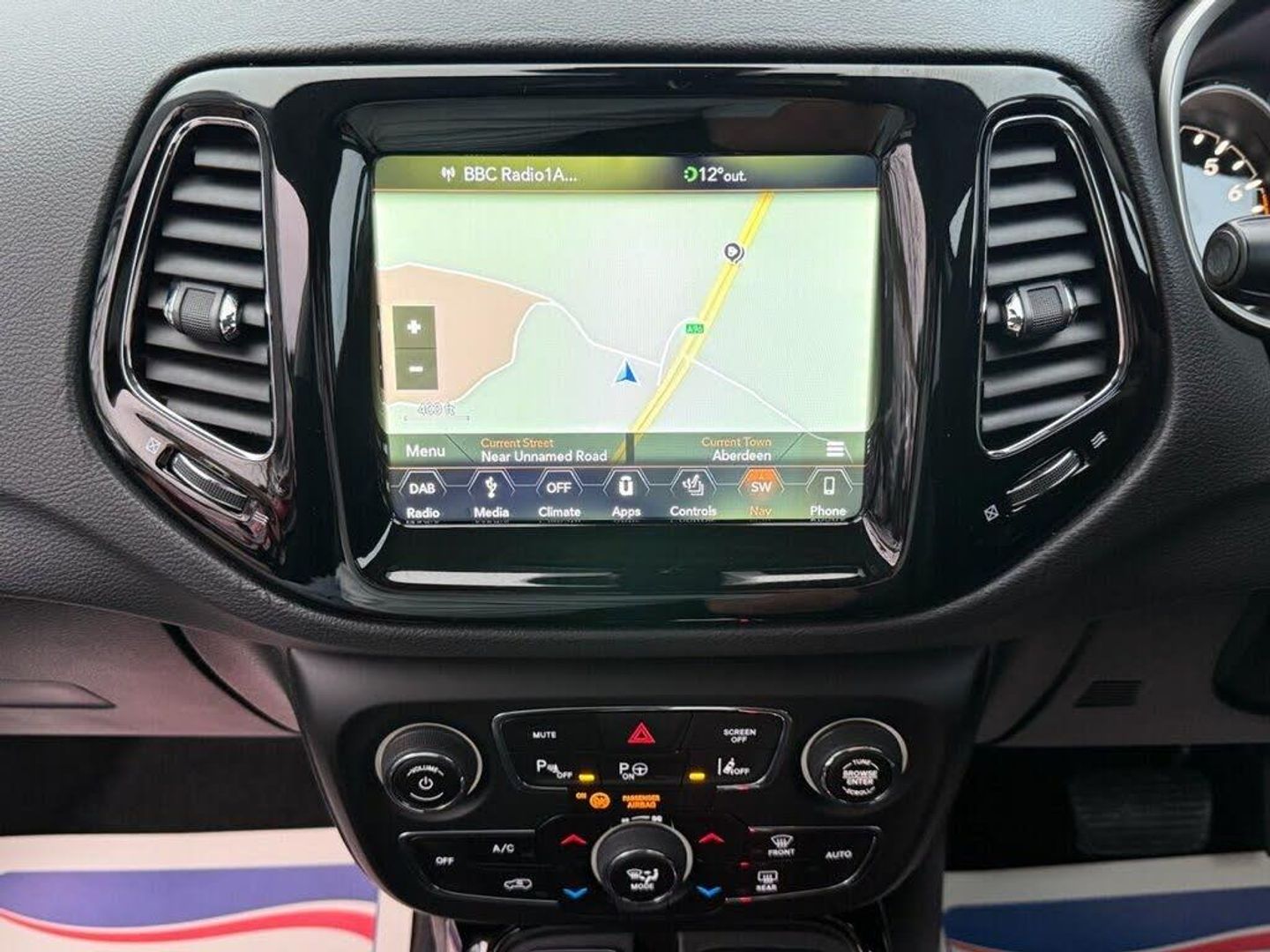 Brilliant Black, 12V Auxiliary Power Outlet - Front, 18in Alloy Wheels - Silver and Tech Grey, 230v Auxiliary Power Outlet, 60-40 Rear Seat with Trunk Pass-Thru, Active Speed Limiting Device, Advanced Brake Assist, Airbags - Advanced Multistage Front - Front Side and Side Curtain Front and Rear, Alarm - Premium, All Speed Traction Control, All-Weather Floor Mats with Jeep Logo, Ambient LED Interior Lighting, Anti Lock 4 Wheels Disc Brake - ABS, Apple CarPlay and Android Auto Integration, Auto Dimming Rear View Mirror, Autonomous Emergency Braking, Auxiliary 12v Power Outlet In Cargo Area, Beats Audio 9-Speaker System, Black Roof Rails with Chrome Inserts, Black and Chrome Front Grille, Blind Spot Monitoring and Cross-Path Detection, Body Colour Exterior Mirrors, Body Coloured Door Handles, Child Seat Anchor System, Chrome Exterior Accents, Chrome Window Surrounds, Cruise Control, Deep Tint Sunscreen Glass, Door Mirrors - Power Folding, Dual Zone Climate Control, ERM - Electronic Roll Mitigation, ESC - Electronic Stability Control, Electric Power Steering, Electric Windows - Front One Touch, Electronic Park Brake, Exhaust Tailpipes - Chrome, Exterior Door Mirrors with Courtesy Lamps, Fog Lamp Bezels - Chrome, Forward Collision Warning Plus, Front Fog Lights with Cornering Lights, Front Height-Adjust Seatbelts, Front Passenger Forward Fold-Flat Seat and Storage Under Passenger Seat, Gear Shift Indicator, Halogen Projector Headlamps, Heated Front Seats, Heated Steering Wheel, Heated and Adjustable Door Mirrors with Indicators, Hill Start Assist, Immobiliser, Instrument Cluster - 7in TFT Colour Display, Keyless Enter-N-Go, LED Signature Lighting, LED Tail Lamps, Lane Departure Warning Plus, Leather Wrapped Steering Wheel, Parallel and Perpendicular Park Assist and Camera, ParkSense Front and Rear Park Assist System, ParkView Rear Back Up Camera, Power 8-Way Driver - Passenger Seats with Lumbar Adjust, Pretensioning Seatbelts, Rain Sensitive Windscreen Wipers, Rear Air-Conditioning and Heater Vents, Rear Axle Disconnect, Rear Door Child Protection Locks, Selec-Terrain System, Steering Wheel - Mounted Audio Controls, Trailer Sway Damping - Control, Tyre Service Kit, Uconnect 8.4in DAB Radio with Touchscreen USB AUX Satellite Navigation and Bluetooth, Uconnect Live, Windshield Wiper De-Icer, Leather - Black with Tan Accent Stitching, Visibility Pack