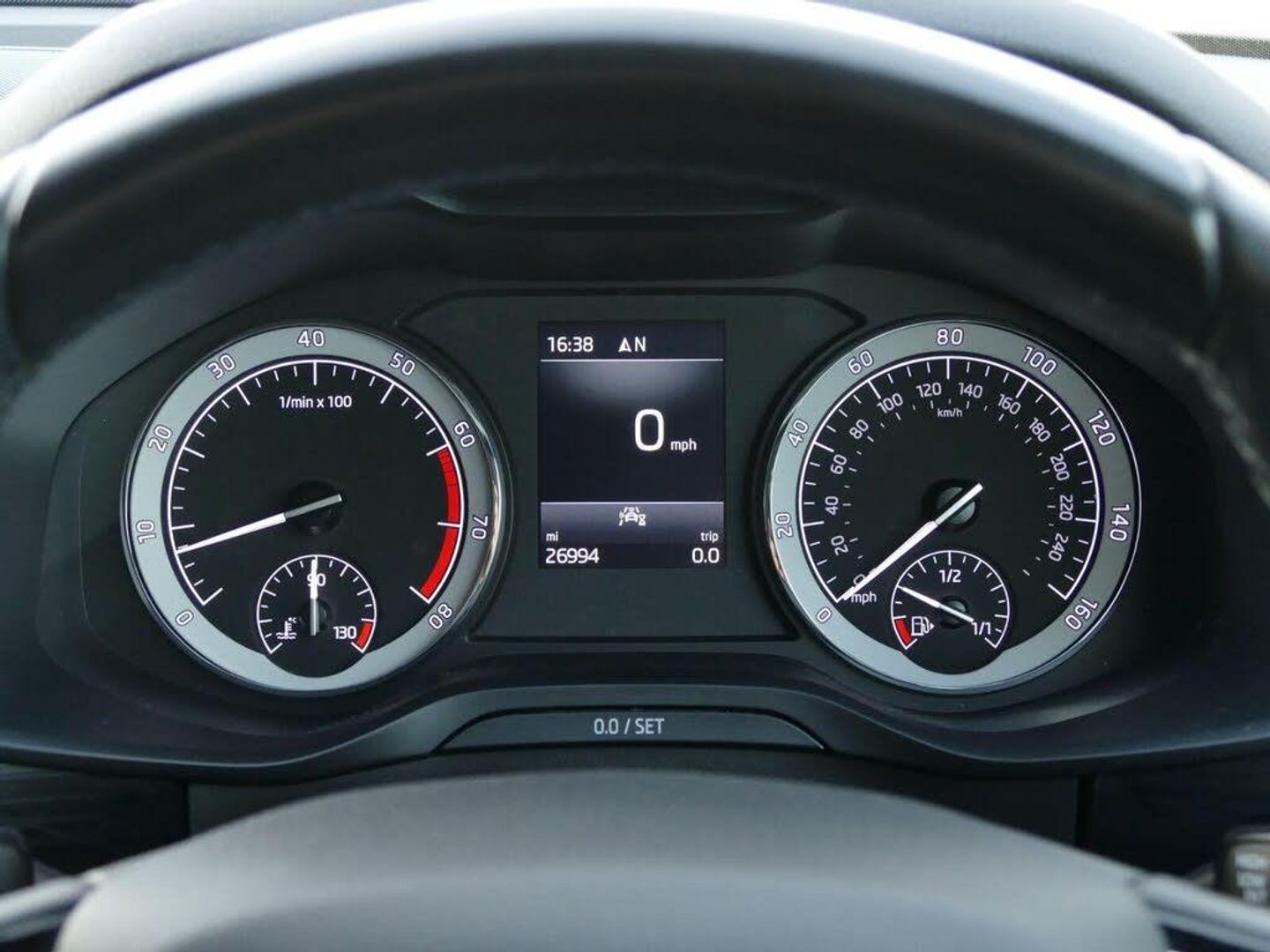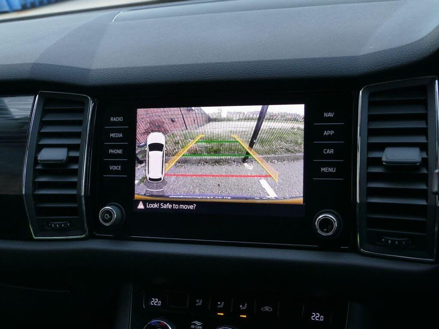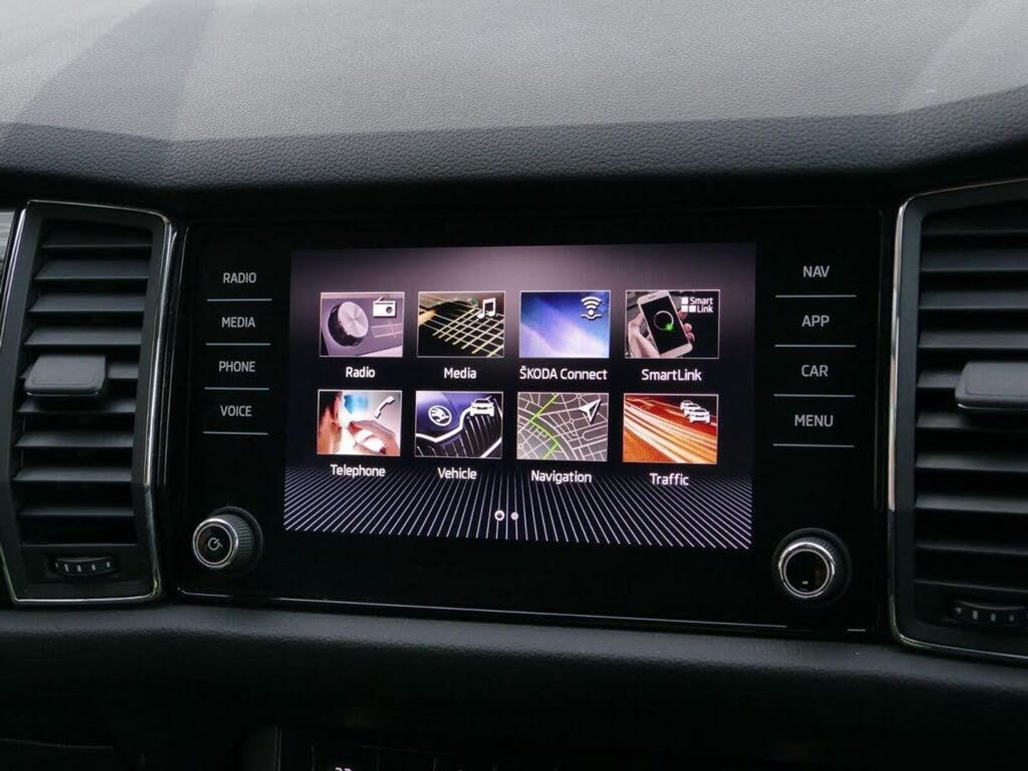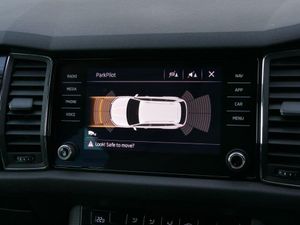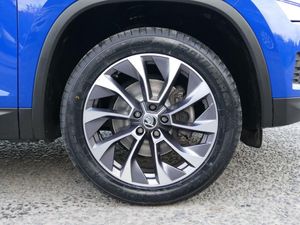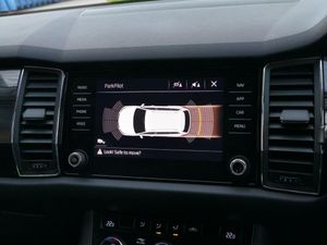 Bluetooth system, Colour multifunction trip computer, Cruise control, Digital voice enhancement, ECO Stop/start function, Exterior temperature indicator, Power assist steering, Rear view camera with full LED rear lights, SmartLink plus, Speed limiter, Tailgate unlocking from outside, USB C Port x 2 in front centre console, Voice control system, Bolero Radio, DAB Digital radio, Aero front windscreen wipers with intermittent function, Aero rear window wiper, Auto dimming rear view mirror, Automatic activation of hazard warning lights, Black electric window control buttons, Black wheel arch surrounds, Body colour bumpers, Body colour door mirrors and handles, Electric front and rear windows, Front fog lights, Halogen headlights with LED daytime running lights, Headlight washers, Heated rear window, Invisible tailpipe, LED rear fog light, LED third brake light in rear spoiler, Light assistant (coming home/tunnel light), Radiator grille frame in matt black with chrome strip, Rain and light sensors, Rear spoiler, Safety reflectors on front and rear doors, Scuff plates, Sunset privacy glass, 12V socket in boot, 2 rails with 2 hooks including 4 hooks for net programme, 4 foldable roof handles with rear coat hooks, 4 lashing points on luggage floor, 60:40 foldable rear seat with sliding adjustment and backrest angle adjustment, Bottle holders in door panel in the 1.5 litre front and 1 litre rear, Cargo storage compartments, Centre console with open storage box, cup holder and 12V socket, Chrome interior door handles, Coat hooks on B pillar, Covered storage compartment on driver side, Fabric upholstery, Front and rear door armrest with black adductor trim, Front and rear height adjustable headrests, Front centre armrest with storage compartment, cup holder and 12V socket, Front courtesy lights, Gear shift lever with chrome frame and black gloss insert, Grey headlining, Height adjustable front seats, Illuminated and cooled glovebox, Illuminated luggage compartment, Isofix child seat fittings in outer rear seats with top tether, LED ambient lighting, Manual lumbar support for driver and front passenger, Manually adjustable steering column, Net programme in boot (1x horizontal Net, 2x vertical Nets), Overhead glasses storage compartment, Pollen filter, Rear centre armrest with cupholders, Roll up luggage compartment cover with intermediate position, Small Bags on the inner sides of the front backrests, Storage compartment in lower middle instrument panel with closing, Three rear height adjustable headrests, Ticket holder on A Pillar, Umbrella in door panel, LED Interior Light pack - Kodiaq SE Drive, Auto door release and activation of warning lights in the event of an accident, Driver and passenger airbags, Electronic parking brake with hill hold control, Emergency rear braking signal, ESC (incl. ABS+MSR+ASR+EDS+HBA+DSR+RBS+MKB), Front and rear three point safety belt on all seats, Front assist includes AEB city/urban, Front passenger airbag deactivation switch, Front side airbags, Fuel cut off safety device, Head and knee airbags, Rear disc brakes, Safety vest holder in door, Seat belt reminder for all seats, Two tone horn, Tyre pressure monitor, Warning lights in front doors, Alarm with interior monitoring and tilt sensor with safe function, Immobiliser, Remote central locking, Mythos black decorative inserts, 19" Ariona anthracite alloy wheels with anti-theft wheel bolts