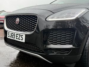 Powered Gesture Tailgate - Boot Lid, 18-Way Heated Electric Memory Front Seats, Meridian Surround Sound System - 825W, Grained Leather - Light Oyster with Lunar-Light Oyster Interior, Santorini Black, Privacy Glass, Fixed Panoramic Roof, 19in Alloy Wheels - 5 Spoke Satin Dark Grey Finish - Style 5049, 10in Touch Pro, 14-Way Heated Electric Memory Front Seats, 19in Alloy Wheels - 10 Spoke Gloss Sparkle Silver - Style 1039, 2-Zone Climate Control, 3-Flash Lane Change Indicators, 360 Degree Parking Aid, 60-40 Split Fold Rear Seat, ABS - Anti-locking Braking System, AM-FM Radio, ASPC - All Surface Progress Control, Airbags - Front Side, Airbags - Full Length Side Window Curtain, Analogue Dials with Central TFT Display, Android Auto, Apple CarPlay, Approach Illumination, Auto High Beam Assist, Auto-Dimming - Power Fold - Heated Door Mirrors with Memory and Approach Lights, Auto-Dimming Interior Rear View Mirror, Automatic Headlights, Bluetooth Connectivity, Body Coloured Roof, Body-Coloured Bumpers, Carpet Mats, Centre Console with Armrest, Chrome Side Vents, Connect Pro Pack, Cruise Control with Speed Limiter, Customer Configurable Autolock, D150 AWD Badge, DAB Radio, Diesel Misfuelling Protection Device, Driver Condition Monitor, Dynamic Stability Control - DSC, Dynamic Volume Control, E-PACE Badge, EBA - Emergency Brake Assist, EBD - Electronic Brake-Force Distribution, ECO Driving Style Assistant, EPAS - Electric Power Assisted Steering, EPB - Electric Parking Brake, Efficient Driveline, Electric Windows - Front and Rear with One-Touch Open-Close and Anti-Trap, Emergency Braking, Front Airbags with Passenger Seat Occupant Detector, Grained Black Door Claddings, Grained Black Grille with Chrome Surround, Heated Front Windscreen, Heated Rear Window, Heated Washer Jets, Hill Launch Assist, Interior Lighting, Intrusion Sensor, Jaguar Script and Leaper, JaguarDrive Control, LED Headlights with Signature Daytime Running Lights, Lane Keep Assist, Leather Steering Wheel, Light Oyster Morzine Headlining, Loadspace Cover, Loadspace Elasticated Side-Strap, Loadspace Lighting, Loadspace Storage Net, Locking Wheel Nuts, Low Friction Launch, Luggage Tie Downs in Loadspace, Meridian Sound System - 380W, Metal Treadplates with Jaguar Script, Navigation Pro System, Outside Temperature Gauge, Overhead Lighting Console, Park Assist, Park Pro Pack, Passive Front Head Restraints, Passive Suspension, Power Operated Child Locks, Power Sockets, Power Tailgate-Boot Lid, Pro Services and Wi-Fi Hotspot, Push Button Start, Rain Sensing Windscreen Wipers, Rear Air Vents, Rear Bench Seat - 3 Seats, Rear Centre Headrest, Rear Fog Lights, Rear ISOFIX, Rear Traffic Monitor, Rear View Camera, Remote, SE Badge, Satin Black Side Window Surround, Seat Belt Reminder, Smart Settings, Smartphone Pack, Speed Proportional Steering, Start Up Sequence with Movement - Dials and Lighting, Summer Tyres, Sunvisors with Illuminated Vanity Mirrors, Tailgate Spoiler, Torque Vectoring by Braking - TVBB, Traffic Sign Recognition with Adaptive Speed Limiter, Trip Computer, Twin Front Cupholders, Twin Tailpipes, Tyre Pressure Monitoring System, Tyre Repair System, Voice Control, x4 Hooks in Loadspace