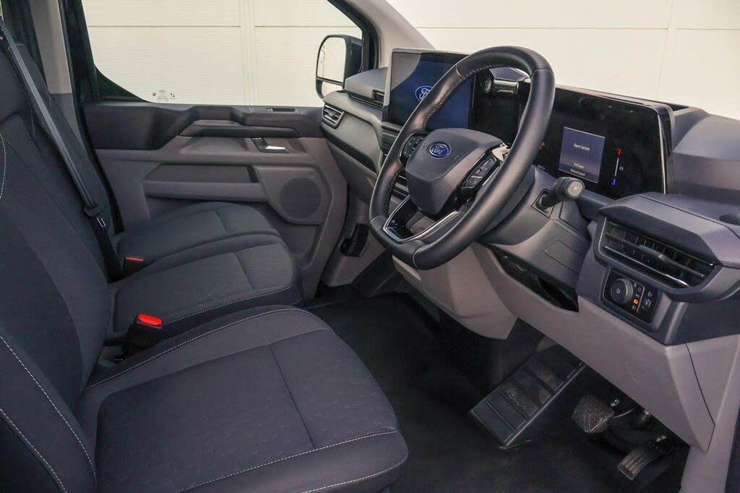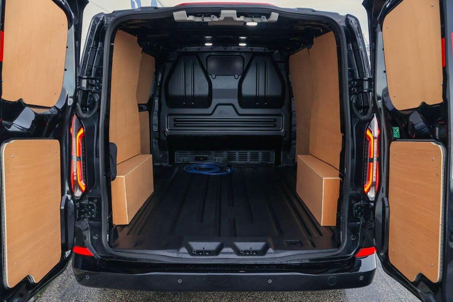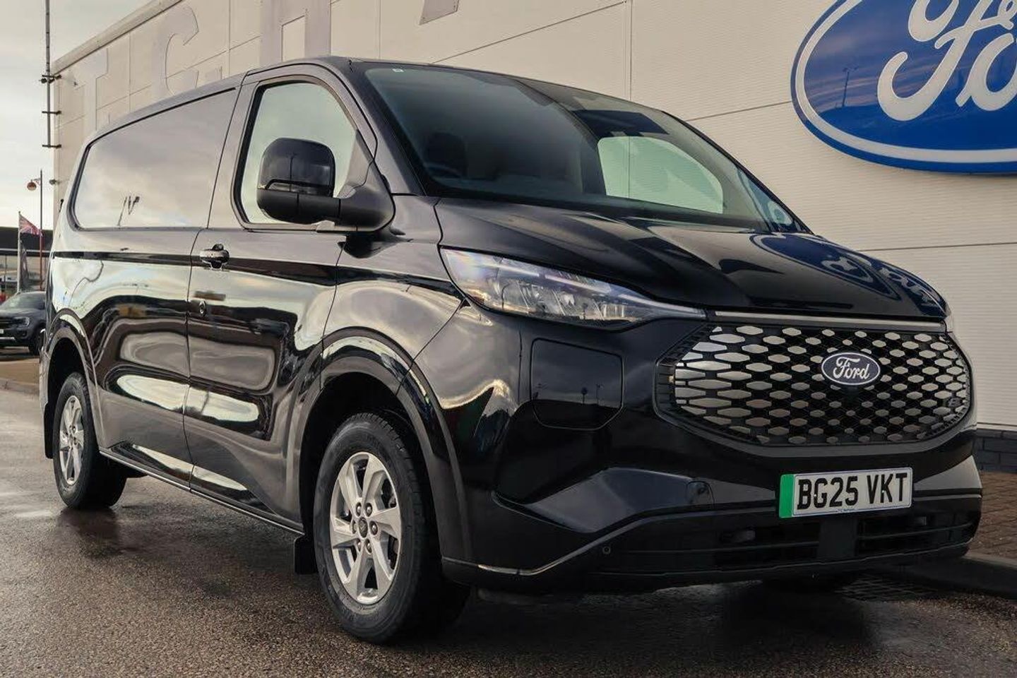 13" Touchscreen, 5G embedded modem, AECS NO SMS/Roll Detect 2G, PAS, Tyre pressure monitor, SYNC 4 - Android Auto/Apple Car Play, advance speech recognition, over the air update capability, Automatic headlights, Automatic windscreen wipers, Body coloured door mirrors, Body coloured front bumper, Body coloured rear bumpers, Coast-to-coast light bar, Daytime running lights, Electric front windows with one touch facility for driver and front passenger, Front mud flaps, Front splash guards, LED tail lamps, Low roof line, Quickclear front window defroster, Rear cargo hinged door, Rear splash guards, Signature BEV Grille, Trailer sway control, 6 Load compartment tie down loops, Courtesy light, Heat pump, Interior grab handle with driver's sunglasses holder, LED lights, Locking glove box lid, Sensico gearshift knob, 2 remote keys, Alcohol Interlock wiring preparation pack, Keyless entry and start, Locking wheel lug nut, Thatcham category 1 alarm, Cloth - Barlo Style 1 - Black Onyx