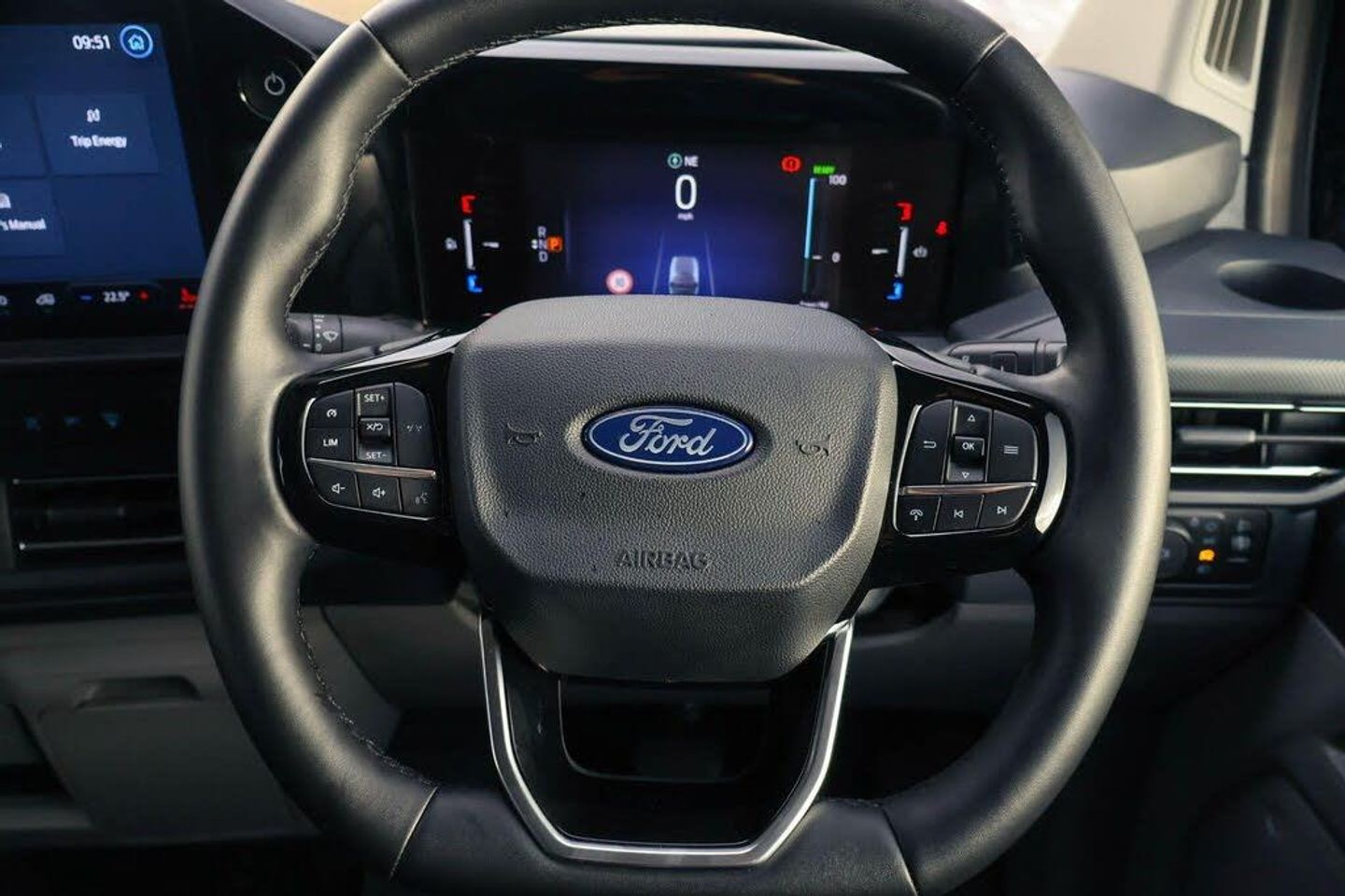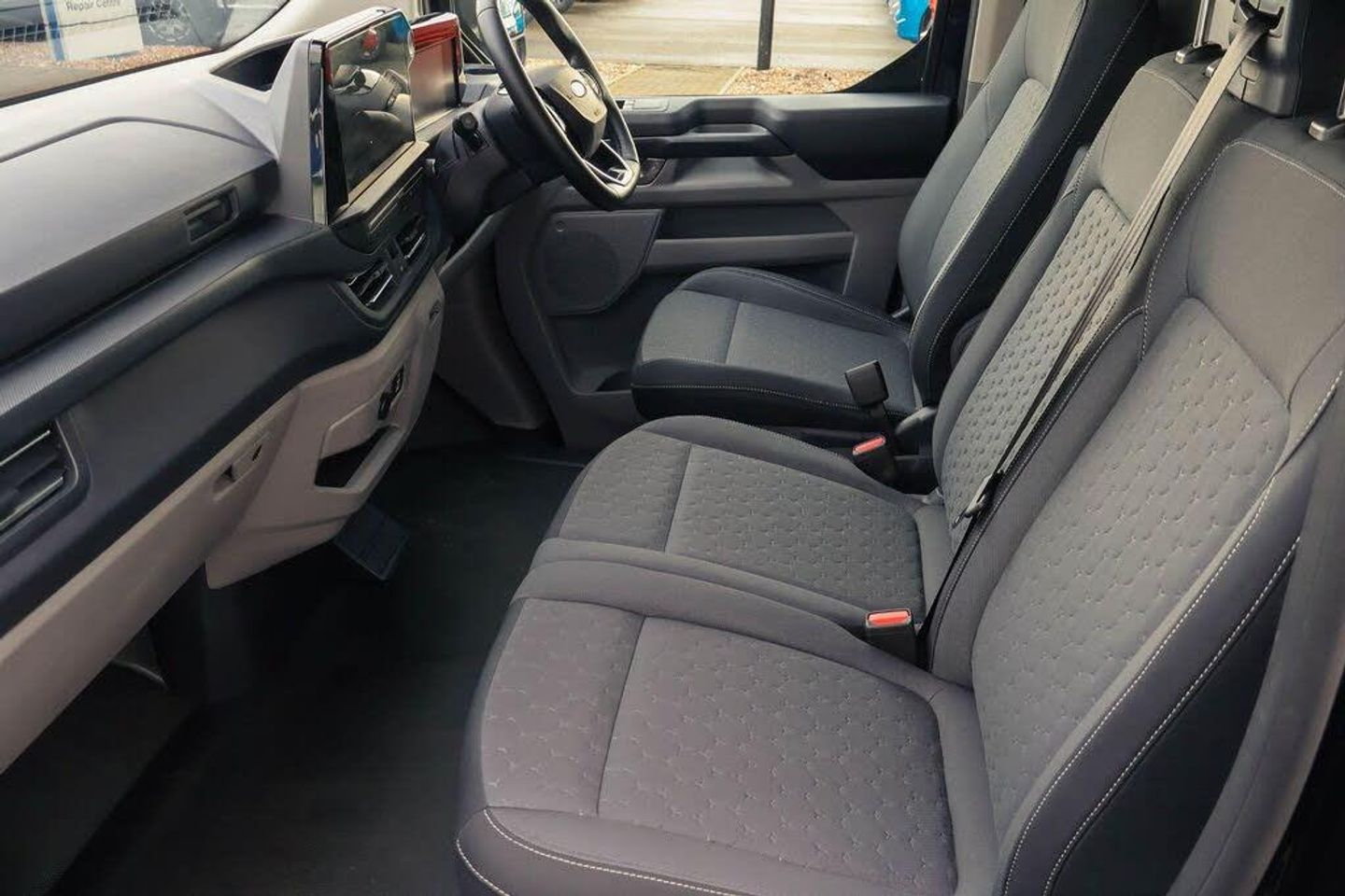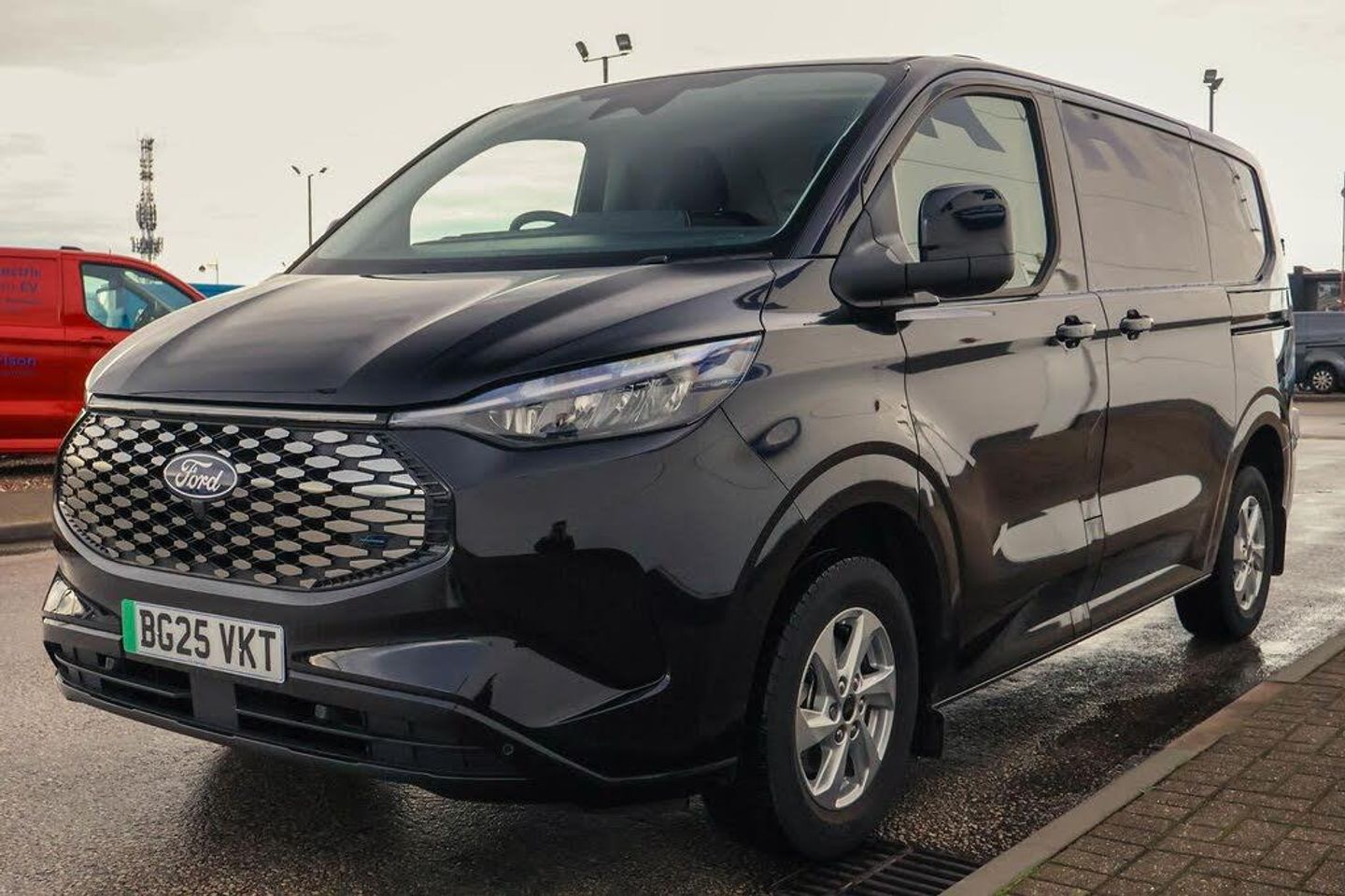 13" Touchscreen, 5G embedded modem, AECS NO SMS/Roll Detect 2G, PAS, Tyre pressure monitor, SYNC 4 - Android Auto/Apple Car Play, advance speech recognition, over the air update capability, Automatic headlights, Automatic windscreen wipers, Body coloured door mirrors, Body coloured front bumper, Body coloured rear bumpers, Coast-to-coast light bar, Daytime running lights, Electric front windows with one touch facility for driver and front passenger, Front mud flaps, Front splash guards, LED tail lamps, Low roof line, Quickclear front window defroster, Rear cargo hinged door, Rear splash guards, Signature BEV Grille, Trailer sway control, 6 Load compartment tie down loops, Courtesy light, Heat pump, Interior grab handle with driver's sunglasses holder, LED lights, Locking glove box lid, Sensico gearshift knob, 2 remote keys, Alcohol Interlock wiring preparation pack, Keyless entry and start, Locking wheel lug nut, Thatcham category 1 alarm, Cloth - Barlo Style 1 - Black Onyx