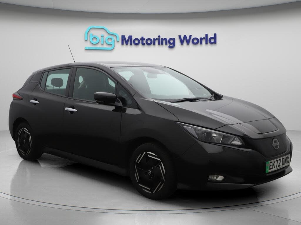 FREE £750 towards your finance-Our Nissan Leaf is finished in Black. Specification includes a range of fantastic features including FREE £750 towards your finance Deposit, Apple CarPlay, Rear View Camera, Bluetooth, Blind Spot Assist, Flat Bottom Steering Wheel, Cruise Control, Climate Control, DAB Radio , Touch Screen Control Specification information is supplied by CAPHPI and may vary to the actual car. This data does not form any part of a buying contact. Please check specification prior to purchase in-store. The MOT is valid until September 2026, visit bigmotoringworld.co.uk for more photos, a 360 tour, service history and a free HPI report.Were BIG on peace of mind and this Black Nissan Leaf has completed our comprehensive 200 point inspection and passed all checks. Its ready for you to drive away with immediate collection in-store. We include a 90-day warranty as standard plus an option to extend for up to 3 years.Reserve this car exclusively for you, safely and securely at bigmotoringworld.co.uk, with a fully refundable £99 deposit. Test drive before you buy, with no commitment, no hassle and a completely haggle free experience. Still searching and want to see thousands more cars? We are BIG on choice with over 8000 cars to choose from.Visit our award winning web site bigmotoringworld.co.uk.Were Big Motoring World and were BIG on what matters to you.