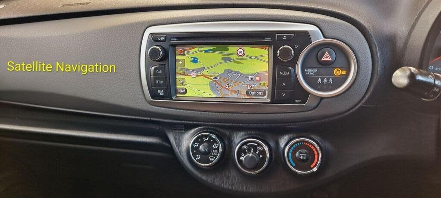 Bluetooth Connectivity, Automatic Air Conditioning, TNS410 Full Map Satellite Navigation System with Portable TomTom and Bluetooth, 16in Alloy Wheels - Toyota Motorsport Pitlane, CD System - MP3 and WMA Compatible, AM-FM Radio, CD Player - Single Disc, Steering Wheel - Audio Controls, Aux Input, Manually Height-Adjustable Driver Seat, Privacy Glass, Power Assisted Steering - Speed Senstive - Electrically Controlled, Trip Computer, Airbags - Curtain, Front Fog Lights - Chrome Surround, Airbags - Driver Knee, Rear Spoiler, Accessory Power Socket - Front, Airbags - Front Passenger Cut-Off Switch, Airbags - Front Side, Anti Lock Braking System - ABS with Electronic Brake-Force Distribution - EBD, ISOFIX Seat Fixing - Rear, 3-point Seatbelts - 2nd Row Outer Seats with ELR and ALR, BAS - Brake Assist System, Bottle Holders, Bumpers - Body Coloured, Door Mirrors - Electrically Adjustable, Central Double Locking with Remote Activation, Child Safety Locks on Rear Doors, Chrome Inside Door Handles, RDS with PTY and EON Settings, Chrome Side Air Vent Surrounds, Door Ajar Warning, Door Handles - Colour-Keyed, Driver and Front Passenger Airbags, Drivers Glove Box, Cupholder - Front x2 and Rear x1, Electric Windows - Front, Digital Clock, Energy Absorbing Crumple Zones Front and Rear, Headrests - Front Height Adjustable, Driver and Passenger Seatback Pockets, Headrests - Rear Height Adjustable, High Mounted Rear Brake Light, Front Map Lights, Front Grille - Black, Front Wipers - Twin Speed and Variable Intermittent with Mist Function, Head Impact Protection, Front Room Light, Outside Temperature Display, Perforated Sport Leather Steering Wheel with Unique Stitching,Rear Seats - Sliding and Reclining, Rear Seats 60-40 Split Folding