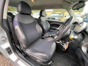 15in 5 star Rocket Alloy Wheels, 15in 7 Hole Alloy Wheels, 16in 5 star Light Alloy Wheels when with Chili Pack, 16in 7Spoke Fin Alloy Wheels, 16in 7Spoke Fin Alloy Wheels when with Chilli Pack, 3Spoke Sports Leather Steering Wheel, Alloy Patina look Interior Trim, Alloy Wheels painted White, Anthracite Interior Trim, Black roof & mirror caps, Body colour roof & door mirrors, Brilliant Silver Interior Trim when with Chilli Pack, Brilliant Silver Interior Trim when with Pepper Pack, Cassette player, Chili Pack, Chrome line Exterior, Delete COOPER badge, Front Sports Seats, Interior Light Pack, Leather Cloth mix- Octagon- Panther Black & lumbar support, Manual Air Conditioning, MINI Cooper badging on tailgate, MINI mobility System, Radio BOOST, Radio WAVE, Single CD player, Sport Suspension PLUS when with Chili Pack, Sports suspension, Storage Compartment Pack, Thatcham Cat2 engine immobiliser, Tinted Glass, White roof & mirror caps