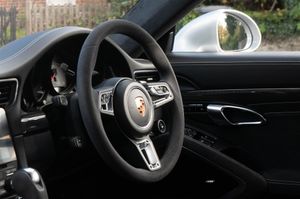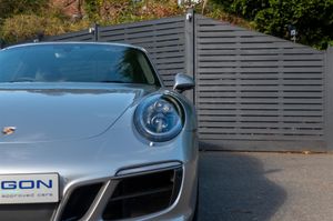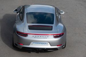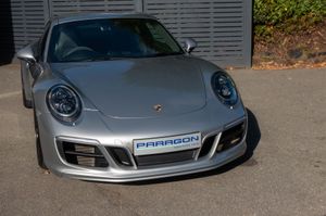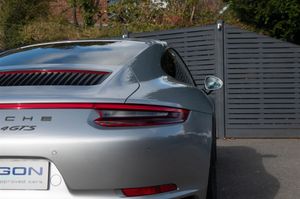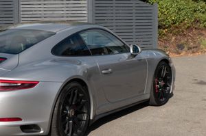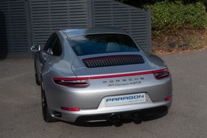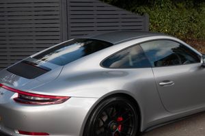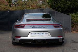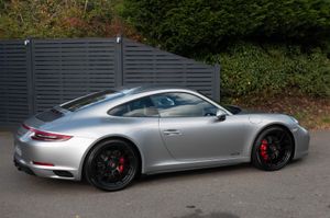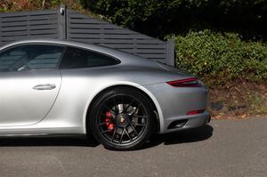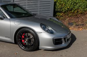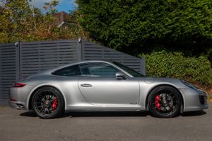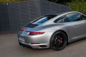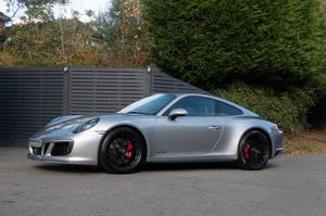 Porsche 911 Carrera 4 GTS Coupe (991.2) 7-speed PDK, GT Silver, Black half leather 18-way sports seats, four wheel drive, air conditioning, 20" GTS centre lock wheels, Porsche active suspension management & Porsche stability management, touchscreen satellite navigation with Apple car play, DAB radio & bluetooth phone, LED daytime running lights, switchable sports exhaust, stop/start function, GT multifunction steering wheel, automatic headlights, voice activated computer.