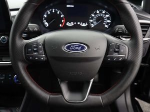 17in Alloy Wheels - 5x2-Spoke - Rock Metallic,4.2in TFT Ice Blue Illumination Analogue Cluster with Trip Computer,Active Grille Shutter,Air Conditioning - Manual,Airbags - Driver and Front Passenger,Airbags - Front Side Impact,Airbags - Side Curtain,Anti-Lock Braking System - ABS with Electronic Brake Force Distribution - EBD,Auto Dimming Rear View Mirror,Black Interior Headlining,Cargo Area Cover,Centre Console - Premium with Openable Stowage Area with USB Connectivity - 2 Cupholders and 12v Power Point,Chrome Exhaust Trim,Courtesy Light - Front LED with Map-reading Light,Cruise Control includes Speed Limiter and Intelligent Speed Assistance,Door Handles - Body Colour,Door Lever - Chrome Finish,Door Mirrors - Heated - Electric - Integrated Side Indicators - Body Coloured,EPAS - Electric Power Assisted Steering,Electric Windows - Rear,Emergency Brake Warning - Automatic Flashing of Brake Lights Under Heavy Braking,Enhanced Electronic Stability Control - ESC with Traction Control - Emergency Brake Assist - EBA - Hill Start Assist - HSA,Floor Mats - Front Deluxe Carpet,Ford Easy-Fuel Capless Refuelling System,Ford SYNC2.5 without Navigation or Embedded Voice Control and Embedded Modem,Front Bumper - Unique ST-Line,Front Seat - Driver 4-Way Manual Adjust,Front Seat - Passengers Manual Fore-Aft Adjustment,Front Seats - Drivers and Passengers Seatback Map Pockets,Front Upper Grille - Unique ST-Line - Body Coloured,Gearshift Knob - Polyurethane,Handbrake - Black,IPS - Intelligent Protection System,Keyless Start,LED Headlights with Daytime Running Lights and Integrated Fog Lights,Lane-Keeping Aid with Lane-Keeping Assist,Locking Wheel Nuts,MyKey,Parking Distance Sensors - Rear,Quickclear Heated Windscreen,Rear Bumper - Unique ST-Line,Rear Fog Lamps,Rear Lights - Non-LED - Splite,Rear Privacy Glass,Rear Seat - 60-40 Split Back and Cushion,Rear Seat Centre Headrest,Remote Central-Double Locking,ST-Line Badge,Seats - Front Passenger 2-Way Adjustment,Seats - ISOFIX Mounting Provision for Child Seats,Selectable Drive Modes,Sports Seats,Sports Tuned Suspension,Steering Column - Rake and Reach Adjustment,Steering Wheel - ST-Line 3-Spoke Sensico-trimmed Flat-bottomed with Red Stitching,Tailgate Handle - Body Colour,Tailgate Wash-Wipe,Thatcham Category Alarm with Power Door Deadlocks,Traffic Sign Recognition, Auto High Beam and Driver Alert,Trip Computer,Tyre Pressure Monitoring System - TPMS,Tyre Repair Kit,Unique ST-Line Grille - Full Bodystyling Kit, and Large Body Coloured Rear Spoiler,Windows - Electrically-Operated Front with One-Touch Lowering-Closing on Drivers Side,Wipers - Automatic with Rain Sensor