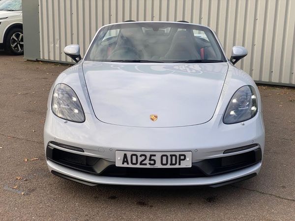 Auto start and stop system, Digital displays for vehicle speed, chosen gear, odometer, trip odometer and clock, eCall emergency call system, Instrument cluster with central rev counter and high-resolution 4.6 inch colour display, Porsche Communication Management (PCM) including online navigation module, mobile phone preparation, audio interfaces and voice control system, 64 litre fuel tank, Aluminium block and cylinder heads, Central cooler, Closed underbody panelling, Direct fuel injection (DFI), Dynamic gearbox mount system, Gasoline particulate filter, Integrated dry-sump lubrication with an on-demand oil pump, Porsche Doppelkupplung (PDK), Porsche Stability Management (PSM) with ABS, advanced brake functions, Porsche TORQUE Vectoring (PTV) with mechanical rear differential lock, Rear wheel drive, Two seater vehicle with mid mounted engine, Two three-way catalytic converters and on-board diagnostics for monitoring emission control system and coated particulate filter, Variable intake manifold with two switchable resonance valves, VarioCam (camshaft control for inlet and exhaust valves) and adaptive cylinder management, Water cooled with thermal management, DAB Digital radio, Integrated 4G/LTE compatible SIM including data for the Porsche Connect Services, Integrated compatible SIM including Porsche Connect Services, Navigation incl porsche + Apple Carplay, connect module, wireless internet access, carfinder, remote vehicle status, remote service and vehicle track, Wifi and music streaming, Auto deploying rear wing, Automatic headlight activation including welcome home lighting, Automatically extending rear boot spoiler, Body colour bumpers, Body colour door handles, Electrically adjustable heated exterior mirrors on door waist rails, aspherical on driver's side, Electrically folding exterior mirrors including courtesy lighting, Fully automatic fabric hood, electrically operated/heatable rigid glass rear screen, operable approx 31 mph and convenient operation by key remote, Green tinted heat insulating glass, Grey top tinted windscreen, Heated rear windscreen, Intelligent lightweight body in Aluminium/Steel composite construction, LED 3rd brake light, LED tail lights and integral 4 point brake lights and reversing lights, Net wind deflector, Power windows with one touch operation and door seal protection, Rain sensor, Rear boot, Separate tinted auxiliary lights in the front end with LED indicators and position lights, Side air intakes with one grille in black, Specifically designed GTS front and rear aprons partially painted in black, Twin tract sports exhaust system with two tailpipe in stainless steel high gloss black, Windscreen washer system with two wiper speeds and washer jets, 12V sockets in passenger footwell and centre console storage compartment, 718 logo on gear lever, Additional smooth finish leather with door panel armrest and centre console main storage compartment, Adjustable fan with air recirculation and defroster functions, Ascending centre console with uncovered storage compartment and closed storage compartment, Clothes hooks on front seat backrests, Footwell illumination, Front and rear luggage compartments, Front headrests, Heated seats, Hood lining in black fabric, LED reading lights, orientation, ignition lock, additionally luggage compartment and glove compartment lighting, Lockable glovebox, Seat centres in race tex, side bolsters, headrests in leather and headrests embroidered with GTS logo in black, Single front passenger seat, Storage compartments in each doors, Two individual cup holders (Passenger side, integrated into dashboard trim strip), Sport chrono package including mode switch - Boxster, 3 point automatic seatbelts, ASR, Electrically controlled parking brake, Front and rear lightweight spring strut axle, Front seatbelt pretensioners + load limiters, Full size driver and passenger airbags, Passenger airbag deactivate switch, Porsche side impact protection doors with thorax airbag in outer backrest side bolster and head airbag for driver/passenger in door panel, Tyre pressure monitoring system, Alarm system with interior surveillance, Anti-theft wheel bolts, Dashcam prep, Engine immobiliser with in key transponder, central locking and remote control, Tyre repair kit, Wheel centres with full colour Porsche crest