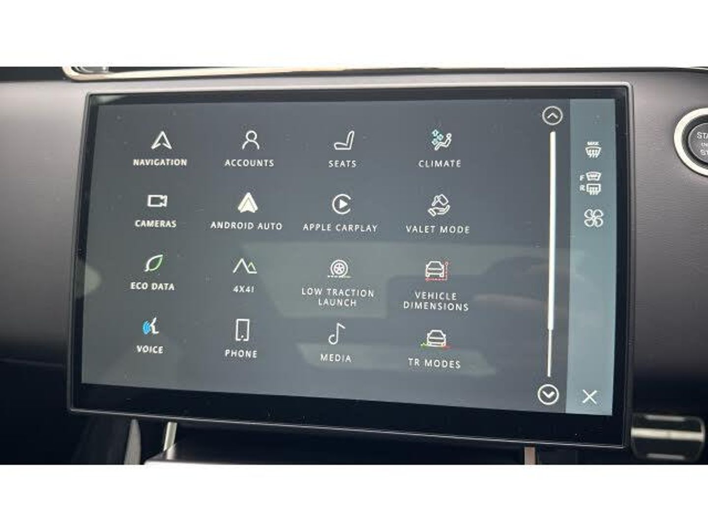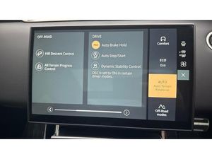 Carpet mats, Heated windscreen, Rear wiper, Heated washer jets, Heated rear window with timer, Rain sensing windscreen wipers, Acoustic laminated windscreen, Electric windows with one touch open/close and anti trap, Winter wiper park position, Electronic traction control, Electronic brake force distribution, Hill descent control, DSC - Dynamic Stability Control, Electronic parking brake, Roll stability control, Torque vectoring brake, Hill Launch assist, Efficient Driveline, Anti-lock Braking System (ABS), Brake hold function, All terrain progress control, Passive suspension, Terrain Response 2, Voice control system, Land rover incontrol apps, InControl remote, Apple car play, Bluetooth connectivity, Wireless device charging, Adaptive cruise control, Lane keep assist, Eco mode, Blind spot assist, Low traction launch, Traffic sign recognition with adaptive speed limiter, Front and rear parking aid, Rear traffic monitor