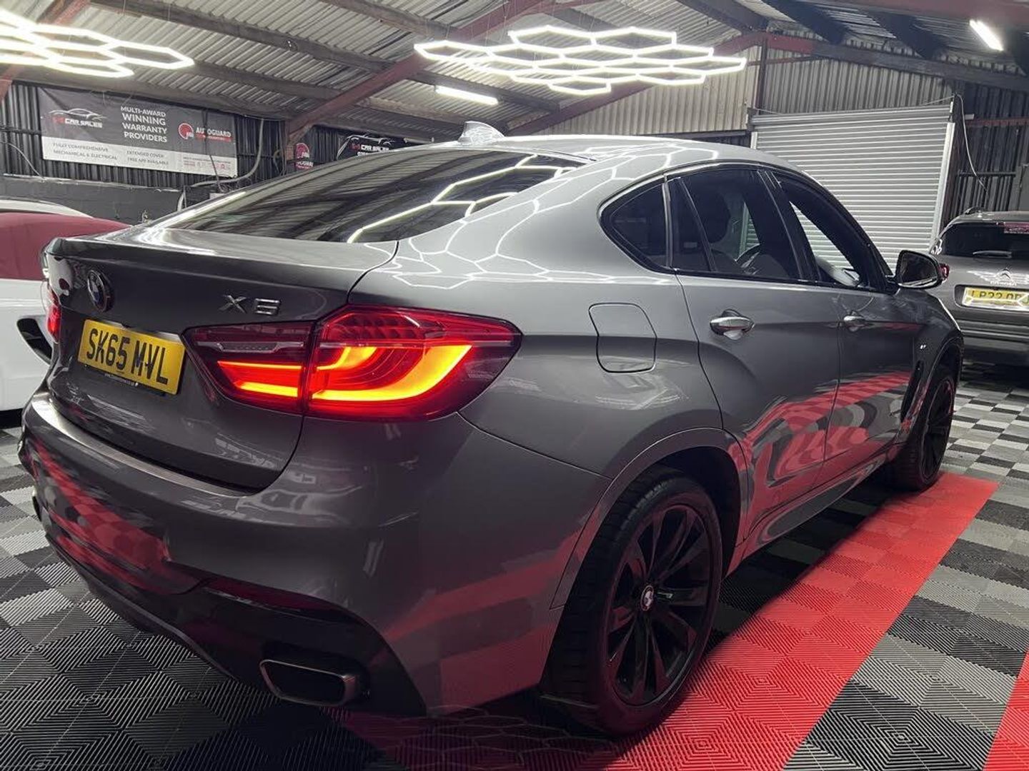 VEHICLES ARRIVING DAILY , FINANCE AVAILABLE , GREATVALUE@ONLY15995, ULEZ COMPLIANCE , GREY WITH RED LEATHER SEATS , LOOKS STUNNING , AMBIENT LIGHTING , ELECTRIC STEERING , SAT NAV REAR CAMERA , ELECTRIC SEATS HEATED SEATS , 96K FULL SERVICE HISTORY, BMW X6 40D M SPORT X DRIVE, 2015 65 REG , AC EW PAS , SAT NAV , TWIN TURBO DIESEL , LED ANGLE LIGHT, REAR PARKING SENSORS , CRUISE CONTROL , 2 KEYS , , 6 MONTHS WARRANTY , 12 MONTH MOT , Navigation System - BMW Professional Multimedia, Real Time Traffic Information, Speakers x6, USB Audio Interface, 12V Power Socket - Front x2, 12V Power Socket - Luggage Compartment, Auxiliary Input, BMW Apps Interface, BMW ConnectedDrive Online Services, BMW Emergency Call, BMW Professional Radio - Single CD and MP3, BMW TeleServices, Bluetooth Hands Free Facility, DAB Digital Radio, Lane Departure Warning System, OBC - On-Board Computer, PDC - Park Distance Control - Front and Rear, PDC - Park Distance Control - Rear, TPWS - Tyre Pressure Warning System, Voice Control - Phone, iDrive Controller with Shortcut Buttons, Brake Force Display, Cruise Control with Brake Function, Kidney Grille - Matt Aluminimum with Black Vertical Slats, Locking Wheel Bolts, M Sport Package, Run Flat Tyres, Windows - Heat Insulated Tinted All Round, 20in Alloy Wheels - Light M Double Spoke Style - 469M, Door Handles - Body Colour, Door Handles - Exterior Puddle Lights, Door Mirrors - Folding - Automatically Dimming, Electric Windows - Front and Rear with Open-Close Fingertip Control, Exhaust Tailpipes - Single Quadrilateral Left and Right, Exterior Trim - High-Gloss Shadowline, Heated Windscreen Washer Jets, LED Fog Lights - Front, Xenon Headlights, Daytime Running Lights, Follow Me Home Headlight Function, Headlights - Automatic Activation, High Level Third Brake Light, Interior Trim - Aluminium Hexagon, Multifunction Controls for Steering Wheel, Rain Sensor, Seat Adjustment - Front Electric with Driver Memory, Seats - Front Heated, Smokers Package, Sport Seats - Front, Steering Column with Manual Reach and Rake Adjustment, Steering Wheel - Sport Leather Multifunction - 3 Spoke, Sun Visors with Illuminated Vanity Mirrors, Tailgate Operation - Powered, Tool Kit Located in Luggage Compartment, 40-20-40 Split Folding Rear Seats, Air Conditioning - Automatic with Two-Zone Control, Armrest - Front with Storage Compartment, Automatically Dimming Rear View Mirror, Cup Holders - Front and Rear, Door Sill Finishers - M Designation, Floor Mats - Velour, Glove Compartment - Lockable and Illuminated, Head Restraints - Front and Rear, Headlining - Anthracite, Self-levelling Air Suspension - Rear, Servotronic Steering, Suspension - Sport, VDC - Variable Damper Control, Adaptive M Sport Suspension, Preventive Pedestrian Protection, Side Impact Protection, Warning Triangle, ABS - Anti Lock Braking System, ASC - Automatic Stability Control, Airbags - Curtain, Airbags - Driver, Airbags - First and Second Seat Row ITS Head, Airbags - Front Side, Airbags - Passenger, Airbags - Passenger Deactivation, Alarm System Thatcham 1 with Remote Control, Brake Drying, Brake Fade Compensation, Brake Pre-Tensioning, CBC - Cornering Brake Control, Central Locking - Remote, Child Proof Locking System - Rear Doors, Child Seat ISOFIX Attachment - Rear x2, City Collision Mitigation, Crash Sensor - Activating Central Locking-Hazard Warning Lights-Fuel Cut Off, DBC - Dynamic Brake Control, DSC - Dynamic Stability Control Plus, DTC - Dynamic Traction Control, Deformation Zones - Front and Rear, Driving Assistant, EBD - Electronic Brake-Force Distribution, Electro-Mechanical Parking Brake with Auto-Hold Function, First Aid Kit, Forward Collision Warning System, HDC - Hill Descent Control