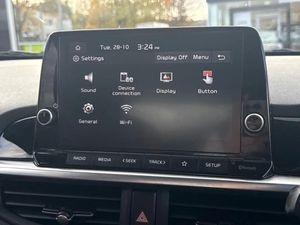 4.2" supervision monochrome cluster display,8" touchscreen display with RDS and DAB,Apple car play/Android Auto with voice control,Emergency call service,Emergency stop signalling system,External temperature gauge,Forward Collision-Avoidance Assist (FCA) - City,Motor driven power steering,Reversing camera system with dynamic guidelines (Integrated into centre fascia screen),Tachometer,Trip computer,6 speaker audio system,Bluetooth with music streaming,Steering wheel mounted controls,USB ports for connection of a media device,Automatic headlight control system,Bi-function projection headlights,Black beltline mouldings,Black grille with silver surround,Body colour B pillars,Body colour bumpers,Body colour mirrors and door handles,Body colour side sill mouldings,Day/night rear view mirror,Electric adjustable/heated/folding door mirrors with LED indicators lights,Front and rear electric windows with drivers's auto up/down function,Front fog lights,Headlamp levelling,Heated rear window,High mount brake light,LED daytime running lights,LED rear fog lights,LED rear lights,Privacy glass - Rear windows and tailgate,Rain sensor,Rear side wing doors,Rear wash/wipe,Speed variable front wipers,Sports front and rear bumpers with gloss black skid plates twin exhaust,Tinted glass,Visible VIN plate,Welcome and follow-me home light functionality,1 x rear coat hook,12V power point front,2 seat bench in 2nd row,3 x passenger assist grips,60/40 split/folding 2nd row of seats,All round height adjustable headrests,Black and red accents front door armrest,Centre Console with Storage Box and Sliding Armrest,Cupholders in centre console,D-cut steering wheel with red stitching,Driver and front passenger sunvisor with vanity mirror,Driver seat height adjust,Faux leather upholstery,Front cabin lights,Glovebox,High gloss lower centre fascia trim, door armrest and air vents,ISOFIX Child seat top tethers and anchor fixings,Leather trimmed steering wheel and gearshift,Luggage area light,Luggage area parcel shelf,Manual air conditioning,Passenger front seatback pockets,Satin chrome interior door handles,Single front passenger seat,Slide/reclining front seats,Tilt adjustable steering wheel,Advanced Driver Assistance Pack - Picanto,GT-Line styling pack - Picanto,2 x 3-point rear seatbelts,ABS/EBD,Automatic unlocking of doors in case of impact,ESC + BAS + VSM + HAC,Front passenger airbag cut-off switch,Front seatbelt height adjusters,Front seatbelt pretensioners,Hill hold control,Hill start assist control (HAC),Knee airbags,Rear child proof door locks,Seatbelt warning,Side impact protection,Torque vectoring brake based and straight line stability (SLS),Traction control,Twin curtain airbags,Twin front airbags,Twin front side airbags,Tyre pressure monitoring system,Anti theft alarm,Engine immobiliser,Folding key,Locking wheel nuts,Remote central door locking,16" alloy GT-Line wheels,Tyre mobility kit