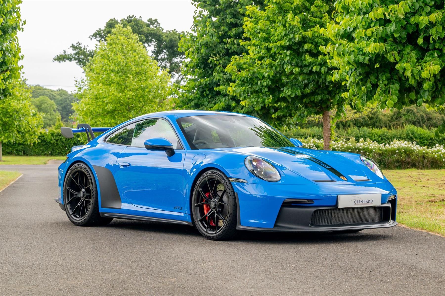 2021 '71 Plate' With 7,450Miles. Finished in Shark Blue With Black Leather/Alcantara. Wheels painted in Satin Black, Porsche Doppelkupplung (PDK), Front axle lift system , Seat heating ,Brushed aluminium interior package in Black, Storage compartment lid in Race-Tex with Porsche Crest, Paint Protection foil in black (matt),LED main headlights in Black incl. Porsche Dynamic Light System (PDLS),Chrono package including preparation for the lap trigger, BOSE® Surround Sound System, Motorsport Decorative sticker set in black, Model designation on doors in black , Vehicle key painted with leather key pouch ,Seat Belts in Shark Blue, Park Assist (rear) including reversing camera, Park Assist (rear) including reversing camera, Adaptive Sports seats Plus (18-Way, electric), Storage Package, ‘PORSCHE’ logo LED door courtesy lights ,Pedals in Aluminium, Door sill guards in brushed Aluminium (Black), illuminated. Full Porsche Service history and Supplied with remaining Porsche warranty balance. Just Recently Had Major Service. 1st Service - Jan 2024 @ 3,503 Miles. 2nd Service - March 2026 @ 7,379 Miles.