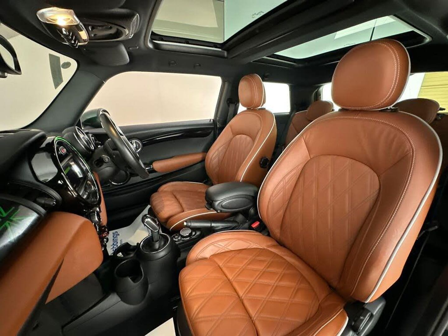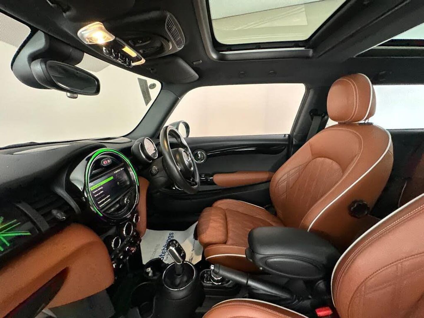 12V Socket in Centre Console, 17in Alloy Wheels - Roulette Spoke, 3 Point Seatbelts on all Seats, 4 Lashing Eyes in Luggage Compartment, 4 Speakers - in Front Door Trims and Underneath Front Seats, 6.5in Screen with LED Ring, Air Conditioning - Manual, Airbags, Alarm System, Anti-Lock Braking System - ABS, Automatic Headlight Activation Switch, Bluetooth for Compatible Mobile Phone - with Audio Streaming, Carbon Black Colour Line - Knee Roll and Door Armrests, Chrome Highlights, Chrome Line Exterior, Chrome Line Interior, Cruise Control with Brake Function, Cup Holders, Door Sill Strips - Metal with MINI, Door Storage Compartments, Dynamic Brake Lights, Dynamic Stability Control - DSC, Electric Windows - Front, Electro-Mechanical Steering with Speed Dependant Steering Assistance, Electronic Vehicle Immobiliser, Exhaust Tailpipe - Left with Chrome Finisher, FM Tuner and DAB Digital Radio, Foldable Rear Seats 60-40, Front and Rear ISOFIX - including Front Passenger Airbag Deactivation, Fuel Filler Cap in Body Colour, Glove Compartment, Headliner - Satellite Grey, Heated Rear Window, Heated Windscreen Washer Jets, Instrument Cluster, Interior Lighting, LED Headlights with Closed Ring as Daytime Driving Lights, LED Reading Lights - Vanity Mirror Lights - Front Footwell Lights - Spotlights on Front Seats, Leatherette Gearshift Lever and Handbrake Gaiters, MINI E-Call, MINI Logo Projection on Floor from Drivers Exterior Mirror, MINI TeleServices, MINI Yours Fibre Alloy Interior, MINI Yours Leather Steering Wheel, Mechanical Seat Adjustment, Model Logo Cooper on Right of Tailgate, Multifunction Controls for Steering Wheel, On-Board Computer, Rain Sensor Window Wipers, Rear Fog Light, Rear LED Lights with Union Jack Design, Rear Window Wiper, Roof and Mirror Caps - Body-Colour, Side Scuttle Panels with Integrated Indicators, Single Tone Fanfare Horn, Start-Stop Toggle including Keyless Go, Steering Column Height and Length Adjustment, Sun Visor with Vanity Mirrors, Sun-Heat Protection Glass, Tool Kit in Luggage Compartment, Tyre Pressure Monitoring System, White Direction Indicators Lights, Panoramic Glass Sunroof, Navigation Plus Pack, MINI Head-Up Display, Interior Trim - MINI Yours - Piano Black Illuminated, Comfort Plus Pack, Driving Assistant Pack, Comfort Access System, Darkened Rear Glass, MINI Driving Modes, Headliner - Anthracite, Bonnet Stripes - Black, 17in Alloy Wheels - Rail Spoke, Colour Line - Malt Brown, Chester Leather - Malt Brown