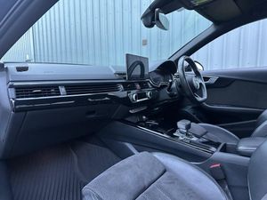 19in Alloy Wheels - 8.5J 5-Arm Rotor Design Matt Titanium Look - Diamond Cut, 2 USB Charging Ports, 4-Way Electric Lumbar Support, 6-Airbag System, 8 Passive Loudspeakers, Anti Theft Locking Wheel Bolts, Anti-Theft Alarm, Audi Connect Infotainment Services (36 Month Subscription From New), Audi Connect Safety and Service, Audi Drive Select, Audi Smartphone Interface, Audi Virtual Cockpit, Auto-Dimming Rear-View Mirror, Automatic Start-Stop with Coasting Functionality and Efficiency Programme, Bluetooth Interface, Body Coloured Door Mirrors, Body Coloured Side Sill Trims, Cloth Headlining in Black, Contrast Stitching on Seats - Steering Wheel and Gear-Lever Gaiter, Cruise Control System with Speed Limiter, DAB Digital Radio Reception, Deluxe 3-Zone Electronic Climate Control, Door Handles - Body Coloured, Door Mirrors - Folding with Auto-Dimming, ESC - Electronic Stabilisation Control inc ABS - ASR and EDL, Electric Boot Lid Release, Electric Windows - Front, Electromechanical Power Steering, Email - Calendar and Text Messages can be Displayed on your Vehicles MMI, First Aid Kit and Warning Triangle, Flat-Bottomed 3-Spoke Leather High Multi-Function Sport Steering Wheel, Front Centre Armrest, Front Spoiler Lip in Body Colour, Front Sports Seats, Gear Knob - Perforated Leather Black, Headlights - High-Beam Assist, Heated Front Seats, High Gloss Package, Hill Hold Assist, ISOFIX Child Seat Mounting and Top Tether, Illuminated Door Sill Trims with S Logo, Inlays - Piano Finish - Black, Keyless Go, LED Daytime Running Lights, LED Headlights with LED Rear Lights and Dynamic Rear Indicators, LED Interior Lighting Pack, Light and Rain Sensor, MMI Navigation Plus including MMI Touch, Manual Seat Adjustment, Multi Collision Brake Assist, Parking System Plus - Front and Rear Sensors, Pedals and Footrest - Stainless Steel, Pop-Up Bonnet for Pedestrian Protection, Pre-Sense City, Privacy Glass, Radiator Grille with Honeycomb Structure in Grained Matt Black, Rear-View Camera, S Line Rear Diffuser in Matt Titanium Black with Trim Strip in Matt Aluminium Silver, S line Front and Rear Bumpers and Side Skirts, Seat Belt Monitoring, Side Air Inlets in Grained Matt Black with Inlay in Matt Aluminium Silver, Split-Folding Rear Seat Bench in 3 Parts - 40-20-40 with Rear Centre Armrest, Sport Suspension, Steering Column - Rake and Reach Adjustment, Steering Wheel - Gear Shift Paddles, Tailpipe Trims in Matt Aluminium Silver, Titanium Black Styling Pack, Tool Kit, Tyre Repair Kit, Voice Control, Windscreen with Acoustic Glazing