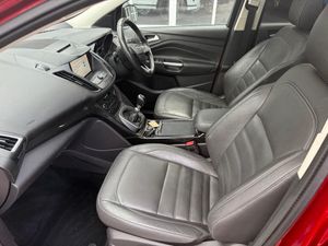 Full Service, HPI Clear, 12 Months MOT, 3 Months Warranty, 12 Months AA Breakdown Cover.-TOP FLIGHT FLAGSHIP KUGA!!-3 point seatbelts on all 3 rear seats, Airbags - front driver/passenger, front & rear curtain, front side, Drivers knee airbag, Front passenger airbag deactivation switch, Intelligent Protection System (IPS), Manual rear child locks, Tyre pressure monitoring system, Immobiliser, Keyless entry system with hands free boot opening, Keyless Start, Locking wheel nuts, Remote central locking, Thatcham Category 1 alarm, Anti-lock Brake System and Electronic Brakeforce Distribution, EBA, Electric traction assist system, Electronic parking brake, Electronic Stability Programme, Hill start assist, Automatic dimming rear view mirror, Electrically heated door mirrors, Power folding door mirrors, Electrically operated front and rear windows with global closing, Quickclear heated windscreen, Rain sensor windscreen wipers, Tailgate wash/wipe, Body colour bumpers, Body colour rear spoiler, Electric panoramic glass sunroof, Front scuff plate, Solid paint, Twin exhausts and rear diffuser, Automatic headlights, Bi-Xenon headlights with dynamic bending, active beam shape and headlight washer jets, Front fog lights, LED daytime running lights, LED tail lights, Towbar preparation, 10 way power adjustable drivers seat, 6 way manually adjustable driver's seat with lumbar support, 6 way manually adjustable passenger seat with lumbar support, 60/40 split/folding rear back and cushion, Driver seat lumbar adjustment, Driver/passenger front seatback pockets, Front head restraints, Heated front seats, Isofix system on outer rear seats, Rear head restraints, Sports style front seats, Front floor mats, Rear floor mats, Footwell courtesy lights front and rear, Front overhead courtesy lights with theatre style dimming and delay, Front/rear reading lights, Multi-colour ambient interior lighting, Variable intensity instrument illumination, Auxiliary power socket in luggage area, Centre console with stowage tray/bottle holder/CD stowage/front and rear 12V power point, Folding rear centre armrest, Leather steering wheel and gear knob, Reach + rake adjustable steering column, Salerno leather upholstery, Stowage unit in upper instrument panel, Tie down hooks, Tonneau cover, Dual electronic automatic temperature control, Cruise control + speed limiter, Electronic power assisted steering, Rear parking sensor, SYNC 3 nav system with DAB radio/CD, 8'''' colour screen, bluetooth, emergency assistance, advance voice control, electronic parking bake, with 6 speakers, Trip computer, Auxiliary socket fo