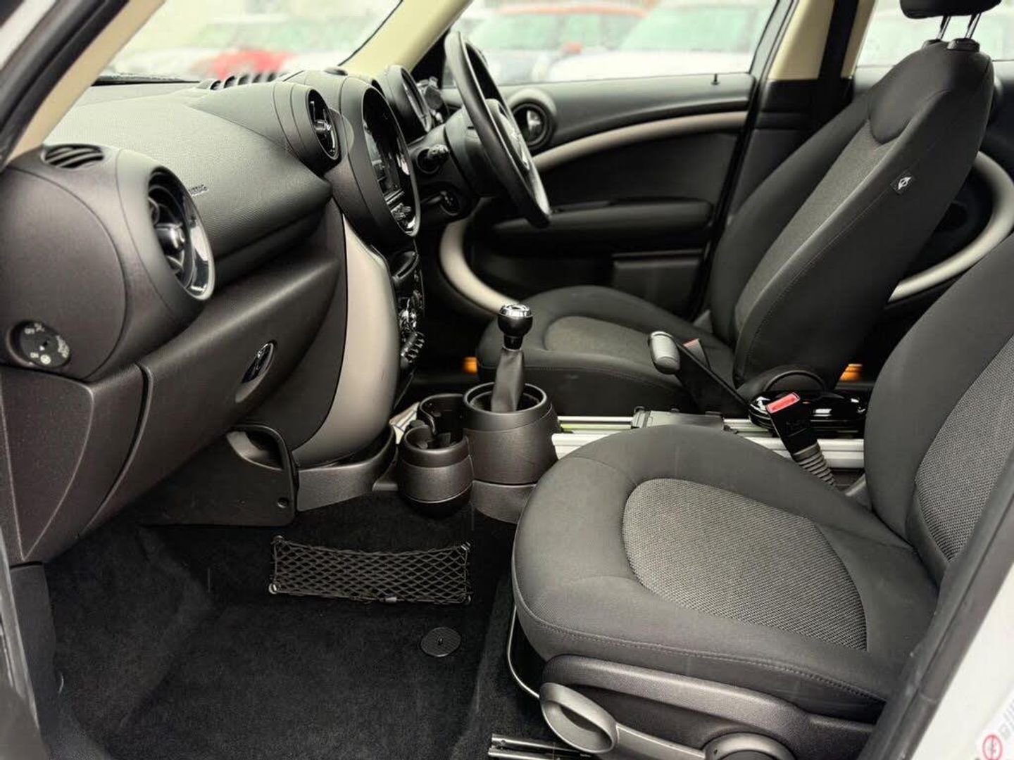 16in Steel Wheels, 3rd Brake Light, ASC+T - Automatic Stability Control and Traction, Air Conditioning - Manual, Airbags - Driver, Airbags - Front Passenger, Airbags - Front Passenger with Deactivation Switch, Airbags - Front Side, Airbags - Head, Alarm - Thatcham CAT1, Anti-Lock Braking System - ABS, Aux-In Connection, Basic Bluetooth Function with USB Audio, Bike Rack Preparation at Rear, Brake Assist, Brake Pad Wear Indicator, CBC - Cornering Brake Control, Car Jack, Central Bass Hi-Fi System, Central Locking - Activated At 10mph, Central Locking - Remote, Centre Rail, Child Seat ISOFIX Attachment, Cooled Glovebox, Cupholders - Two in Front, DAB Tuner, Door Handles - Chrome Plated, Door Handles - Interior - Chrome Plated, Door Mirrors - Electrically Adjustable and Heated, Dynamic Stability Control - DSC, EBD - Electronic Brake-Force Distribution, Electric Windows - One Touch Up and Down Front and Rear, Electronic Power Steering, Embellisher at Bottom Edge of All Windows - Chrome Plated, Grab Handles, Halogen Lights for Low Beam and High Beam Headlights, Headlight - Beam-Throw Control Electrical with Manual Adjustment, Headlights - Chrome Bezels, Headlights - Follow Me Home, Headlining - Beige, Heated Front Windscreen Washer Jets, Hill Assist, Interior lights - Integrated into Centre Front Headliner including Two Reading Lights, Lashing Eyes in Luggage Compartment, MINI Mobility System, MINIMALISM Fuel Saving Technology, Microfilter, PDC - Park Distance Control - Rear, Radiator Grille - Frame Chrome-Plated Radiator-Grille Bars Black, Radio BOOST CD, Roof Rails - Silver, Roof in Body Colour, Seats - 40:20:40 Split Rear Backrests, Seats - Height Adjustable Drivers, Second Radio Remote Key, Side Scuttles with Integrated Indicators, Steering Column Height and Length Adjustment, Sun Visors with Integrated Vanity Mirrors on Drivers and Passengers Sides, TPWS - Tyre Pressure Warning System, PEPPER Pack, Air Conditioning - Automatic, Interior Light Pack, Rain Sensor and Automatic Headlight Activation, Steering Wheel - 2-Spoke Leather, Storage Compartment Pack, White Direction Indicators Lights, Interior World - Carbon Black, Cosmos Cloth - Carbon Black