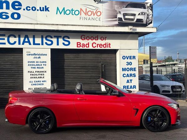 HERE WE HAVE ON SALE THE SUPERB BMW 4 SERIES 3.0 435i M SPORT AUTO CONVERTABLE EURO 6 FINISHED IN METALLIC RED..............COMES WITH FULL BLACK LEATHER SEATS, SATELLITE NAVIGATION, HEATED FRONT SEATS, REAR PARKING SENSORS, CRUISE CONTROL, BLUETOOTH, BMW ONLINE SERVICES, IDRIVE CONTROLLER WITH SHORTCUT BUTTONS, TWO ZONE AIR CONDITIONING, COMFORT GO KEYLESS ENGINE START, DAB DIGITAL RADIO, MULTIFUNCTIONAL STEERING WHEEL, ELECTRIC WINDOWS, ELECTRIC AND HEATED MIRRORS, TYRE PRESSURE MONITORING SERVICES, THATCHAM 1 ALARM WITH REMOTE CONTROL.................THIS VEHICLE COMES WITH FULL BMW DEALERSHIP SERVICE HISTORY CONSISTING FROM 17671 MILES, 26593 MILES, 31094 MILES, 35179 MILES AND 57251 MILES MEANING THIS VEHICLE HAS BEEN MAINTAINED TO A HIGH STANDARD.......................THIS VEHICLE WILL BE SERVICED AT POINT OF SALE ...................THIS VEHICLE PRESENTS IN EXCELLENT CONDITION THROUGHOUT AND DRIVES LIKEWISE....................VIEWING ESSENTIAL....................FINANCE AVAILABLE ON REQUEST.-FULL SERVICE HISTORY/ULEZ