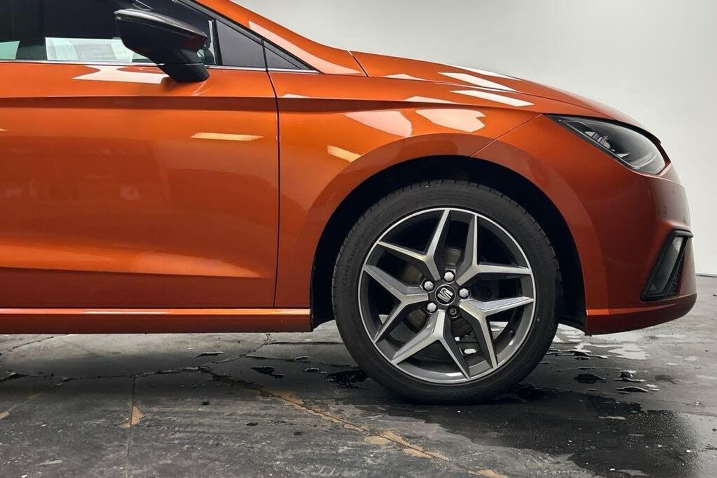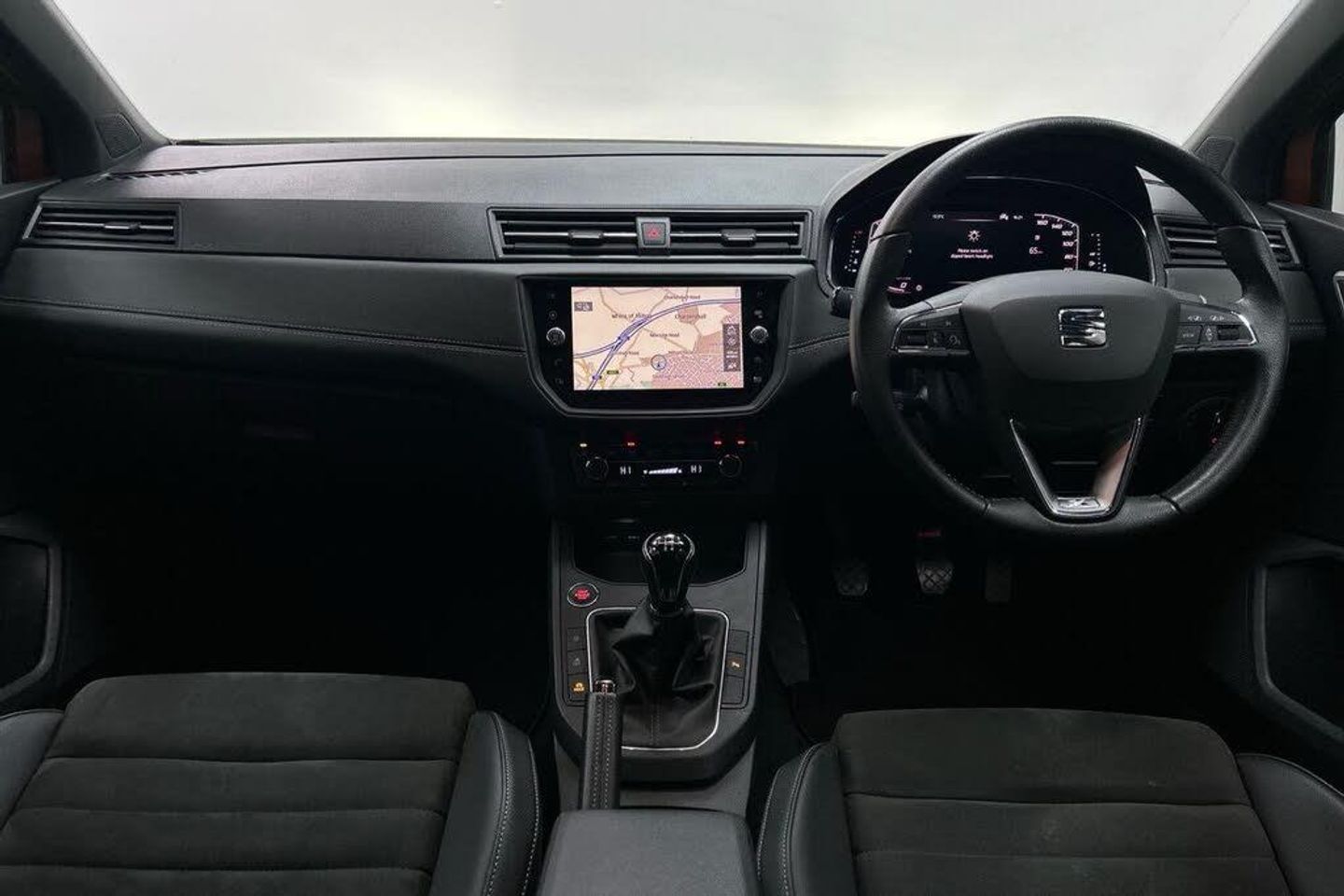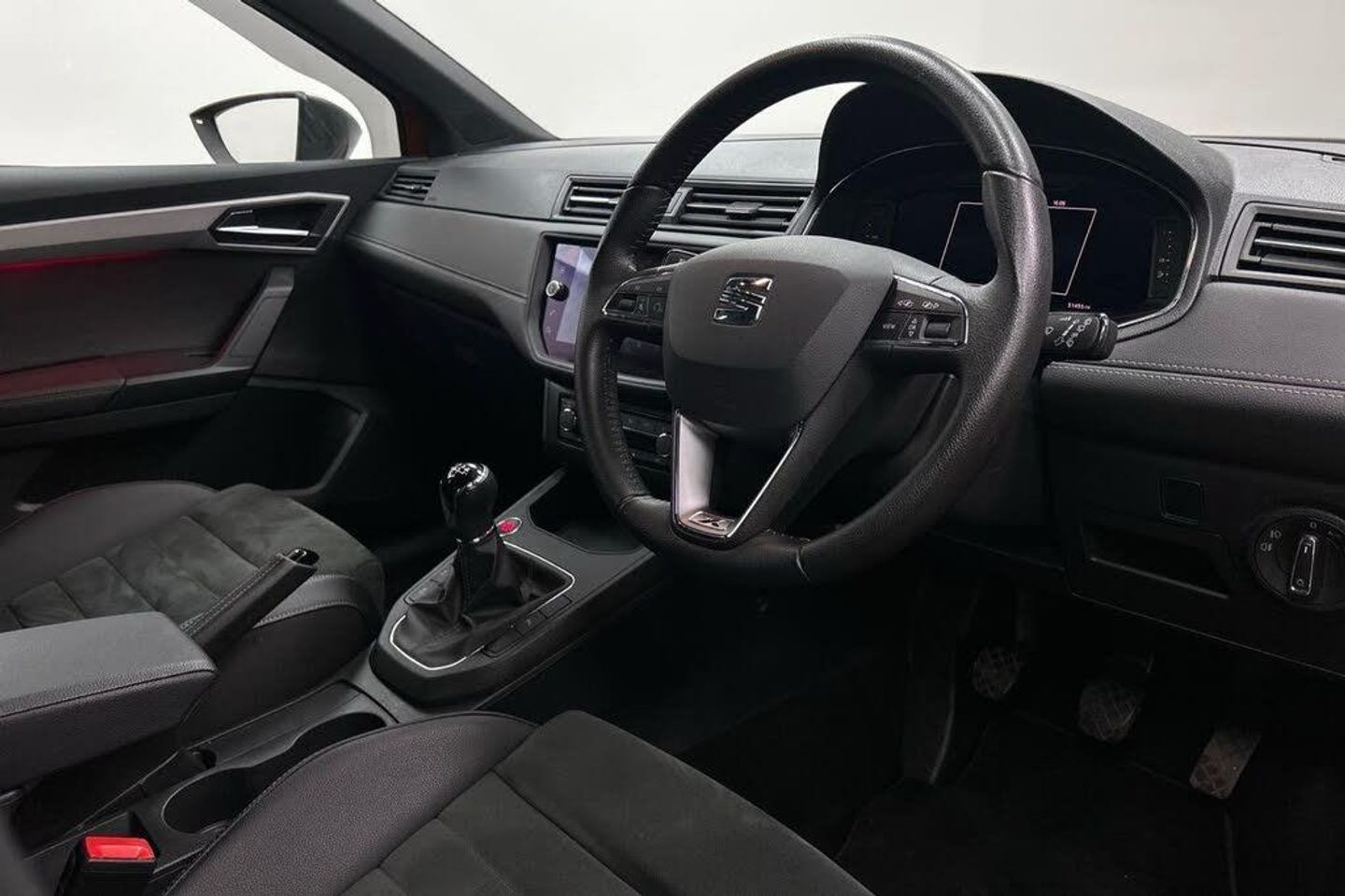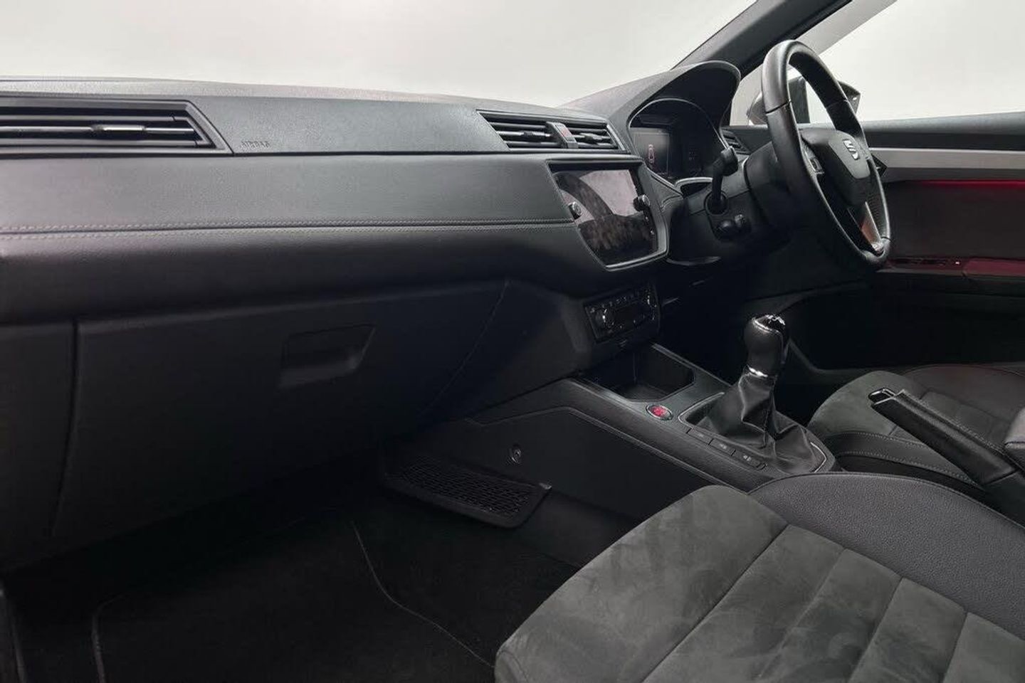 'Lights On' Reminder warning buzzer, Adaptive cruise control, Bluetooth Handsfree Phone Connection, Digital clock, Digital cockpit, Front parking sensors, Full Link Smartphone Integration with Mirror Link, Apple Car Play, Google Android Auto, Low fuel warning light, Outside temperature gauge, Power Steering, Rear parking sensor, Rear view camera, Satellite navigation system with 3D mapping, 8" touch screen, voice control and additional USB port, SEAT Drive profile, SEAT logo boot release, Trip computer, Comfort suspension, 6 speakers, Auxiliary input socket, CD player, Digital Audio Broadcast (DAB) Tuner, Radio/MP3 player, SD card slot, SEAT USB media cable, Steering wheel mounted controls, USB port, Anti theft roof antenna, Atom grey door mirrors, Auto dimming rear view mirror, Automatic headlights, Automatic rain sensing wipers, Body colour bumpers, Body colour door handles, Chrome front grille frame, Chrome grille, Chrome side window trim, Coming/leaving home lighting function, Cornering front fog lights, Dark tinted rear windows, Electric folding door mirrors, Electric front windows, Electric headlight adjustment, Electric rear windows, Electrically adjustable and heated door mirrors, Full LED headlights, LED daytime running lights, LED tail lights, Rear fog lights, 3 rear headrests, 60/40 split folding rear seat, Door and steering wheel ice metal decorative inserts, Driver's sunvisor with ticket holder/vanity mirror, Dual zone climate control, Dust/pollen filter, Front centre armrest, Front courtesy lights, Front cupholders x 2, Front reading lights, Front seat and rear pockets, Gear shift indicator, Glovebox, Height adjustable driver's seat, Height adjustable front/rear head restraints, Height adjustable passenger seat, Height/reach adjust steering wheel, Illuminated boot, Instrument lighting with brightness control, Leather handbrake, Leather steering wheel and gear knob, Microsuede cloth upholstery, Multi-colour ambient interior lighting, Passenger sunvisor, Rear top tether child seat ISOFIX attachment, Storage box under drivers seat, Full LED headlight pack - Ibiza, 3 point seatbelts on all 3 rear seats, ABS, Active front headrests, Child locks on rear doors, Curtain airbags, Driver/Front Passenger airbags, ESP+EBA, Front assist (AEB), Front passenger airbag deactivation, Front side airbags, Hill hold control, Multi-Collision braking, Seatbelt warning, Tiredness recognition system, Tyre pressure monitoring system, Electronic engine immobiliser, Keyless entry and go, Locking wheel bolts, Remote central locking + deadlocks, Volumetric alarm with back up horn, Leather dashboard, 17" Dynamic alloy wheels