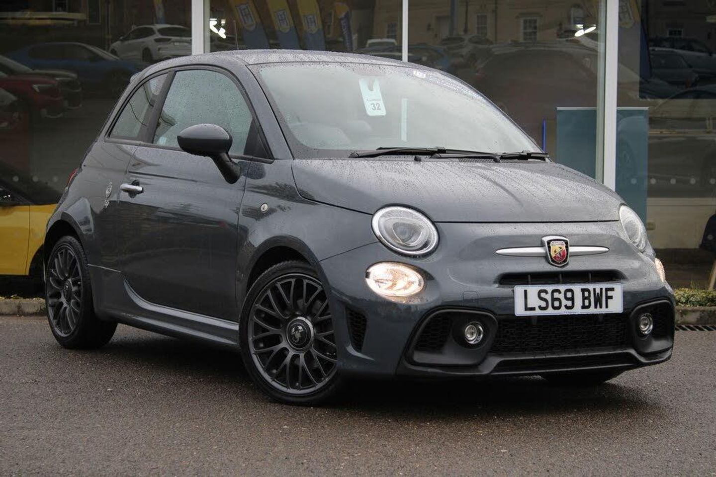 7" TFT instrument display with sports mode, Apple car play/Android Auto, Dualdrive PAS, E-call, Sports button, Trip computer, U-connect access via mobile, Uconnect live service, Wakeup screen for 7" radio, Electric front windows, Front bumper with honeycomb grille and embossed Abarth logo, Front fog lights, LED daytime running lights, Rear wiper, Satin chrome finished handles and badge surrounds, Third brake light, Twin exhausts with satin steel tailpipes, 12V socket, 2 seat bench in 2nd row, Chrome gear knob, Driver/front passenger seat height adjustment, Front head restraints, Front passenger seat memory, Glovebox, Height adjustable steering wheel, Interior stowage net, Rear headrests, Single front passenger seat, Sports leather multifunction steering wheel with controls and satin chrome detailing, Sports seats, Stainless steel sports pedals, Alarm, Central locking, Immobiliser, Remote central locking, 17in Alloy Wheels - Sport - Anthracite Finish