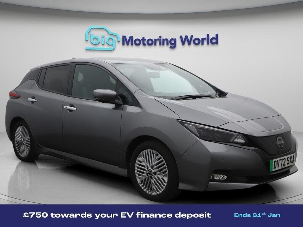 £750 towards your finance depo-Our Nissan Leaf is finished in Grey. Specification includes a range of fantastic features including £750 towards your finance deposit, 17'' Alloy Wheels, Part Leather Seats, Leather Seats, Privacy Glass, Heated Seats, Rear View Camera, Heated Rear Seats, Heated Steering Wheel, Bluetooth Specification information is supplied by CAPHPI and may vary to the actual car. This data does not form any part of a buying contact. Please check specification prior to purchase in-store. The MOT is valid until September 2026, visit bigmotoringworld.co.uk for more photos, a 360 tour, service history and a free HPI report.Were BIG on peace of mind and this Grey Nissan Leaf has completed our comprehensive 200 point inspection and passed all checks. Its ready for you to drive away with immediate collection in-store. We include a 90-day warranty as standard plus an option to extend for up to 3 years.Reserve this car exclusively for you, safely and securely at bigmotoringworld.co.uk, with a fully refundable £99 deposit. Test drive before you buy, with no commitment, no hassle and a completely haggle free experience. Still searching and want to see thousands more cars? We are BIG on choice with over 8000 cars to choose from.Visit our award winning web site bigmotoringworld.co.uk.Were Big Motoring World and were BIG on what matters to you.