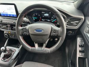 Black interior.This 2020 Ford Focus ST Line offers a superb blend of style and practicality, making it an excellent choice for any driver. Powered by an efficient 1.5 litre Euro 6 diesel engine, this model ensures a smooth and economical driving experience. The ST Line trim level brings a sporty aesthetic, complemented by practical features such as front and rear parking sensors with parking assistance, making manoeuvring in tight spaces effortless. Inside, you'll find the Ford SYNC 3 DAB Radio system, complete with a vibrant 6.5 inch touchscreen that seamlessly integrates with both Android Auto and Apple CarPlay, keeping you connected and entertained on every journey. For added convenience, manual air conditioning ensures a comfortable cabin temperature, while automatic headlights adapt to changing light conditions. The inclusion of the Ford SYNC 3 DAB Navigation System further enhances your travel, providing clear directions and Bluetooth connectivity for hands free calls. These features collectively demonstrate the Focus ST Line's superior comfort and technological advancement compared to other vehicles in its class.