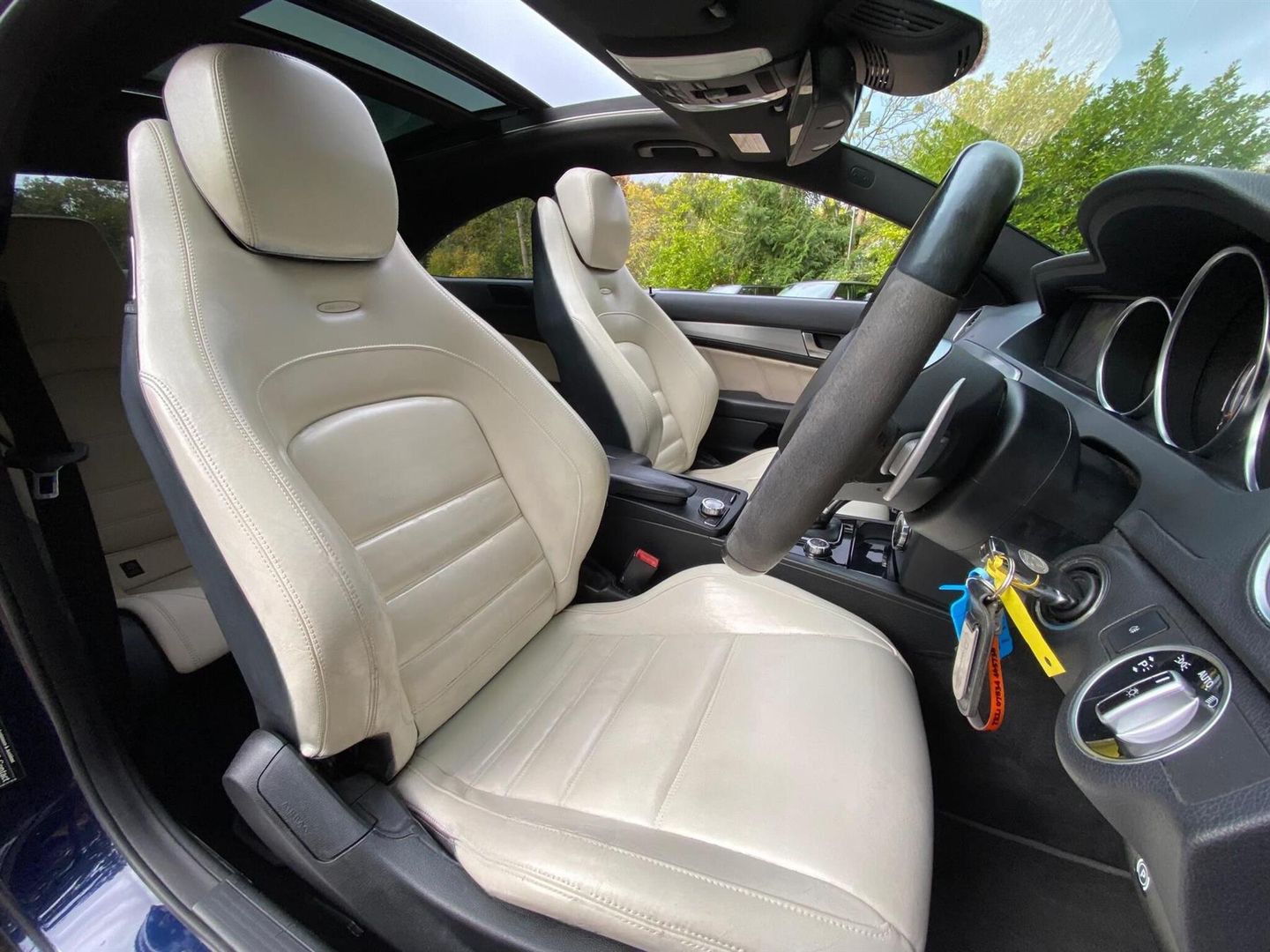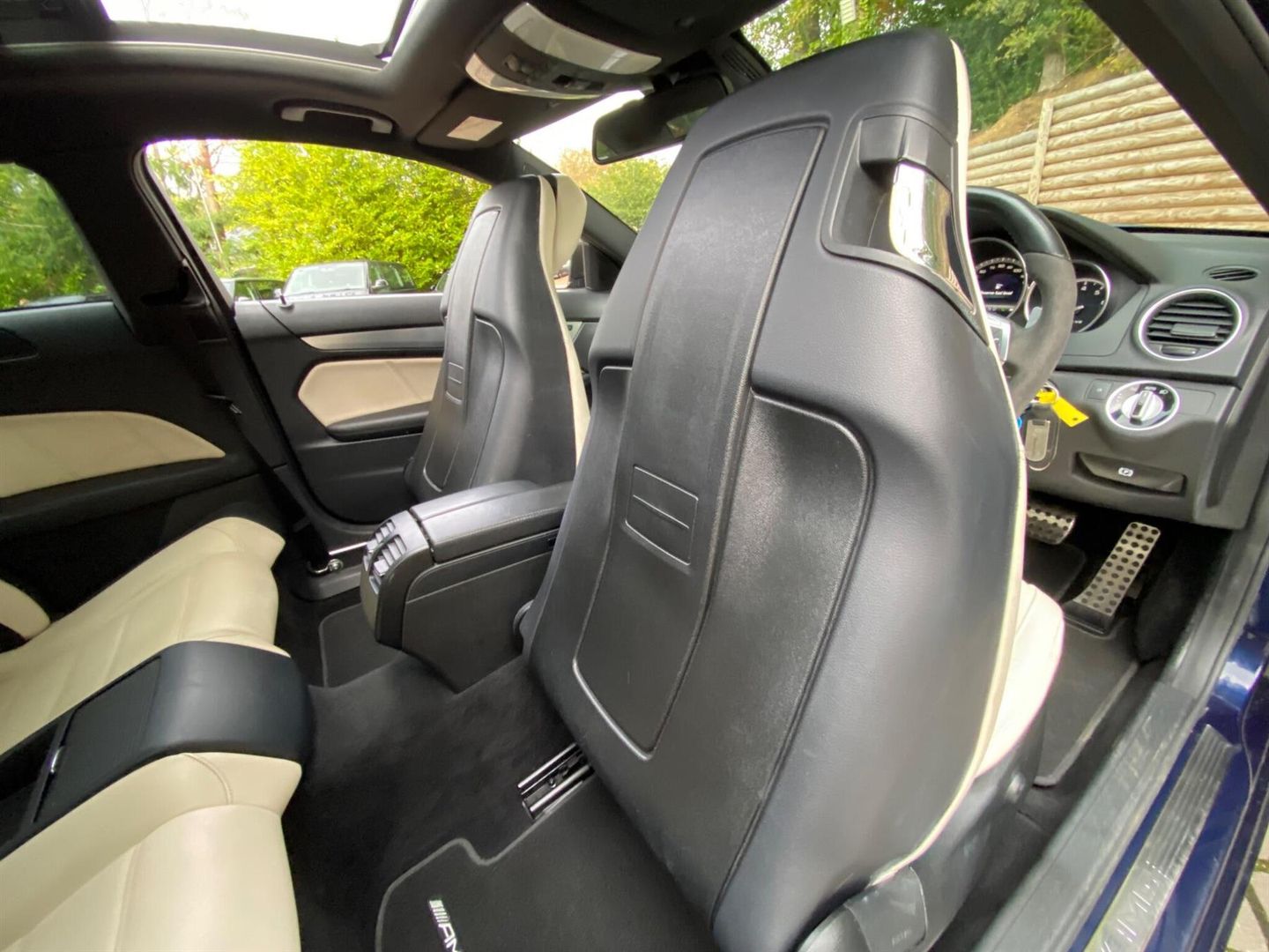 This Special Order super rare, highly desirable, sought after 2013 Mercedes Benz C Class C63 V8 AMG Designo presented in metallic Cavansite blue with Porcelain premium Nappa leather and ‘507’ 19 inch Alloys and factory options list exceeding £15K Edition 125 is a truly special example! AMG performance package plus includes a 30 bhp power upgrade to 487hp, SLS engine internals including forged pistons, Connecting rods, Revised crankshaft, Intake manifold painted titanium grey, AMG carbon fibre exterior package, Red brake calipers, AMG high performance composite brake system with composite brake discs and AMG performance steering wheel trimmed in Alcantara/Nappa leather. Boasting the desirable AMG Performance Package Plus (PPP), AMG Drivers Package, Electric tilt/slide panoramic glass sunroof, MEDIA package, Cruise control, Heated seats, Memory package, COMAND comprising radio, Integrated CD/DVD changer, MP3 Player, HDD Map navigation with TMC, Linguatronic, PCMCIA and 4GB music register with video capability. Under the bonnet lies a potent 6.3 litre petrol engine, delivering exhilarating performance. This particular model features the premium Harman Kardon Logic 7 surround sound system, ensuring an exceptional audio experience. For added convenience and safety, it includes a reversing camera with parking assistance.The AMG Edition 125 trim signifies a high level of specification, and this vehicle further enhances its dynamic capabilities with AMG Performance Suspension. These elements combine to offer a driving experience that is noticeably more engaging and refined than other vehicles in its class. The AMG Drivers Package also allows for an increased top speed, highlighting its performance pedigree.