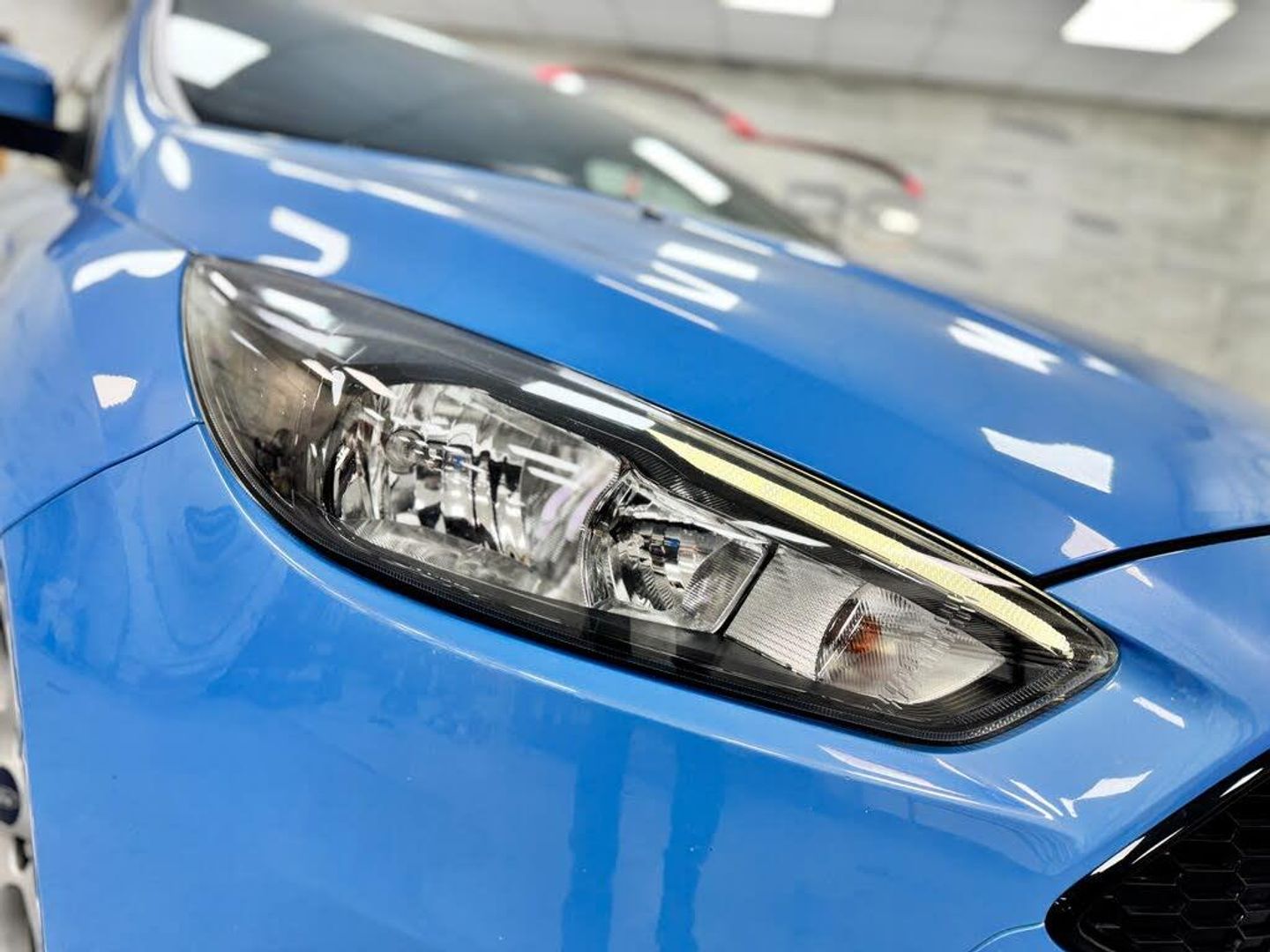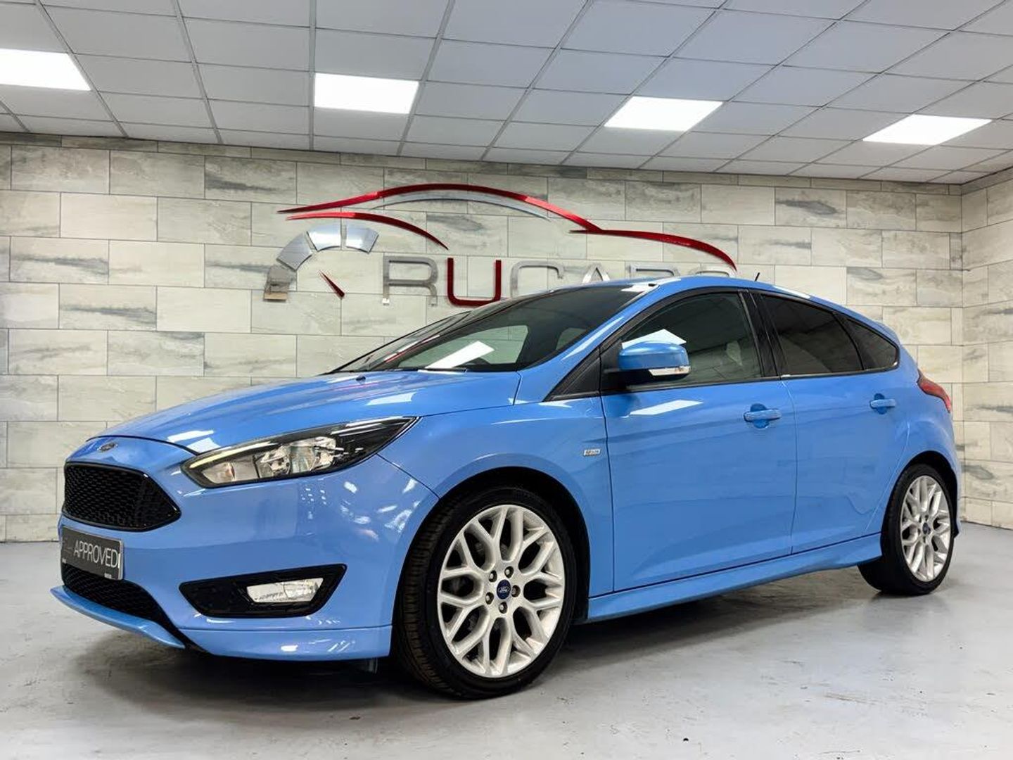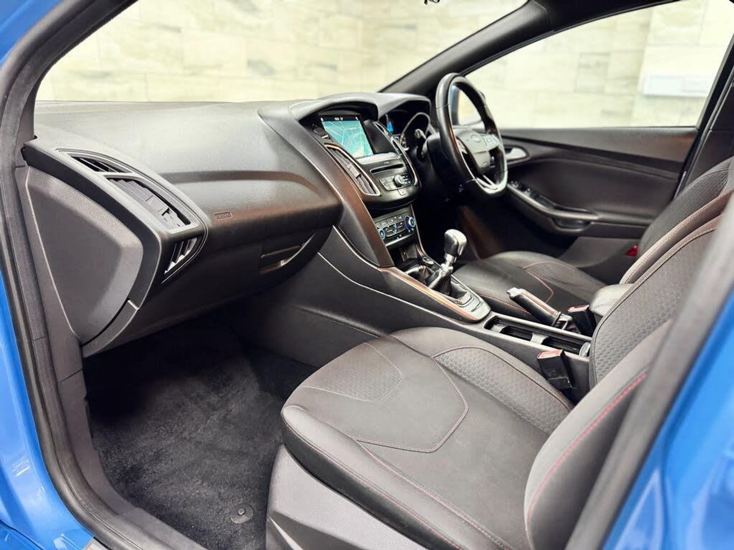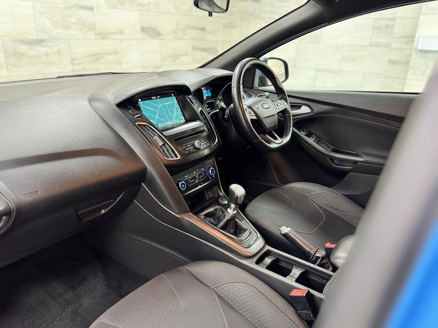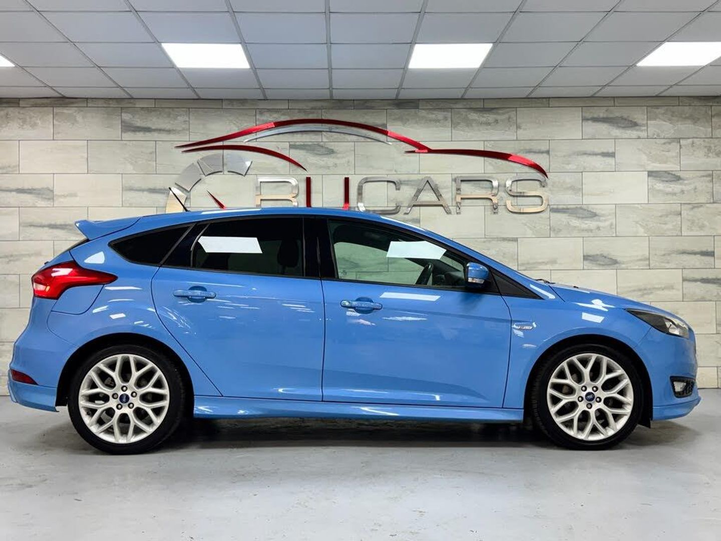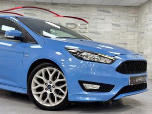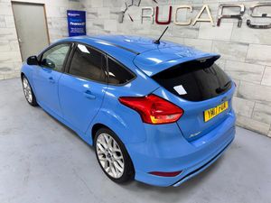 This 2017 '17' Ford Focus 1.5 Tdci ST-Line is finished in Iceberg Blue with Black interior.