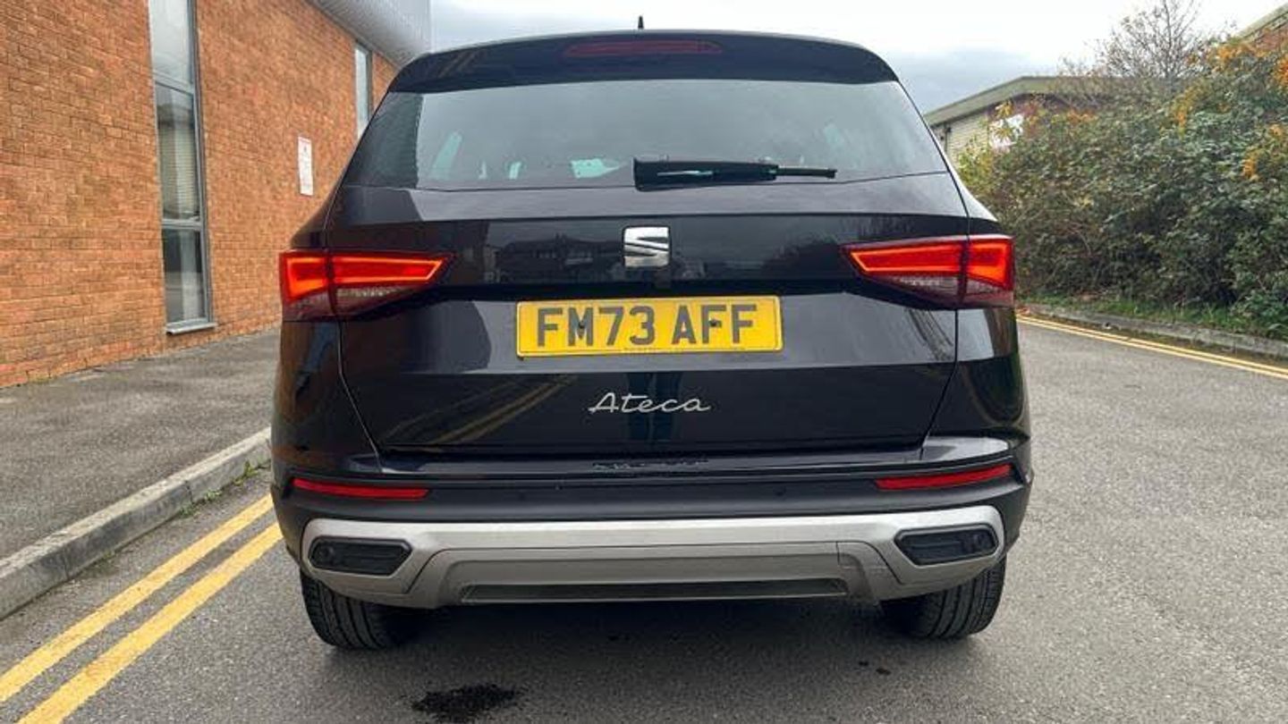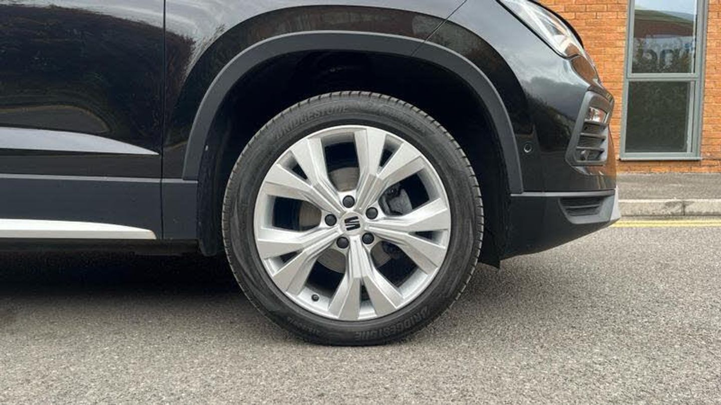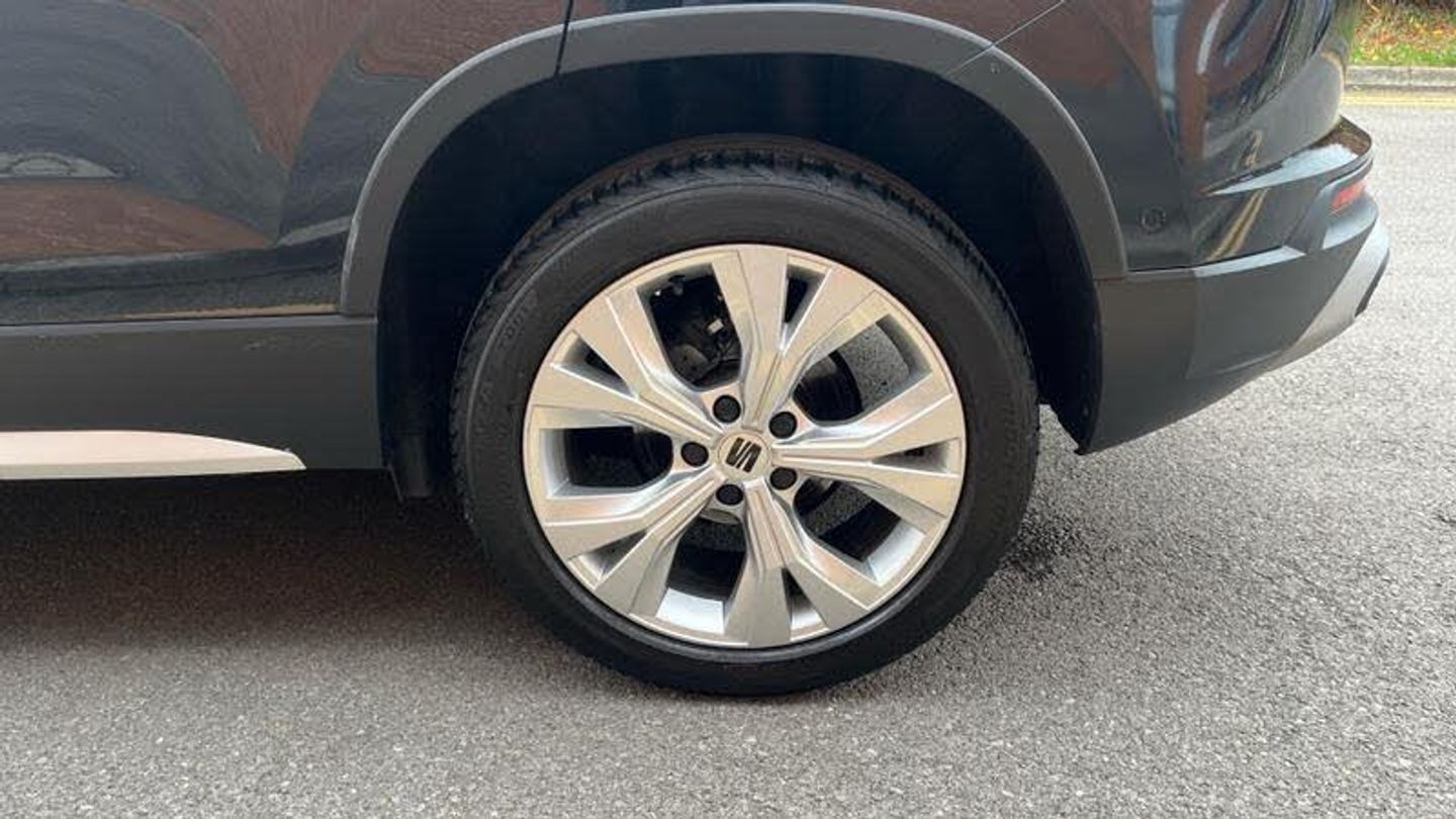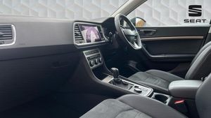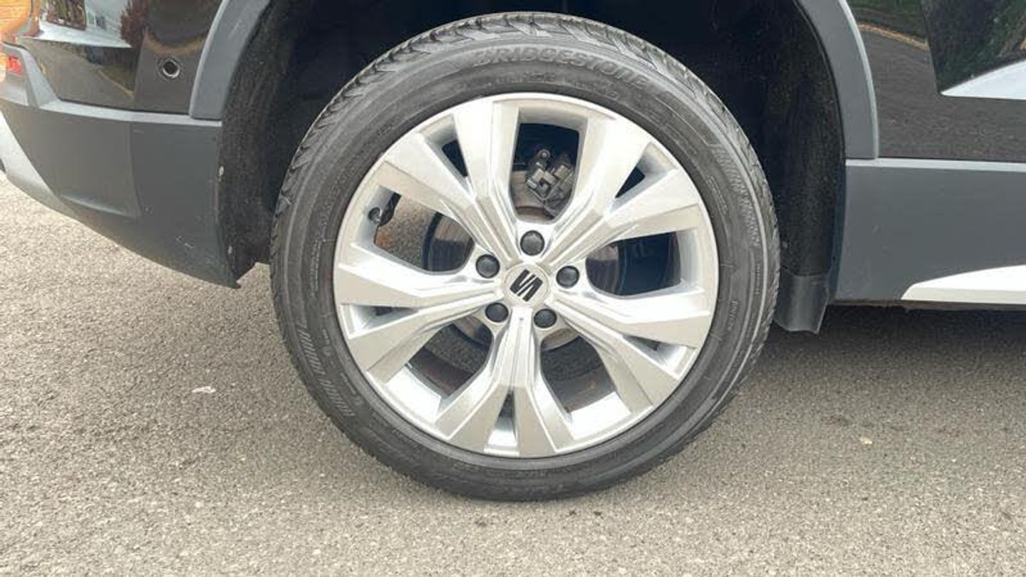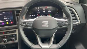 Rear wash/wipe, Variable front intermittent wipers, Black simulated exhaust pipes, Black wheel arch surrounds, Body colour bumpers, Chrome front grille frame, Chrome roof rails, Chrome side window trim, Front grille hot stamping, Rear side wing doors, Reflex silver side mouldings, Dynamic headlight range control with self adjusting whilst driving, Full LED headlamps with lens and LED front fog lamps with cornering function, LED rear tail lights with dynamic indicators, Rear fog lights, ABS, Traction control system (TCS), Electronic stability control (ESC) and Electronic differential lock system (XDS), Electric parking brake with auto hold function, Traction control, Progressive power assisted steering, SEAT drive profile with driving experience button - Normal, Sport, Eco and Individual mode, gearshift, steering and throttle response, Self parking functionality (includes front and rear parking sensors), Electric adjustable/heated/folding door mirrors, 3x3 point rear seatbelts, Airbags - Driver and front passenger airbag with deactivation, front side, two curtain and driver's knee airbags, Manual rear child locks, Single tone horn, E-call, Steering wheel mounted audio/phone controls, Start/stop system, Tailgate, 8 Digital cockpit, Colour multi-function on board computer display, Outside temperature gauge, Trip computer, Chrome interior detailing, 3 seat bench in 2nd row, 60/40 split folding rear seat, Front and rear head restraints, Height adjustable driver and passenger seat with lumbar adjustment, Rear armrest and easy back seat release mechanism from boot, Single front passenger seat, Drawer under right front seat, Leather steering wheel and gear knob, Microsuede upholstery with front comfort seats, Steering wheel mounted gearshift paddles, Convenience pack - Ateca, Interior lighting pack - Ateca, Navigation system pack with DAB - Ateca, Safe and driving pack with lane assist - Ateca, Remote central locking, 18 Brillaint silver alloy wheels, [Audio and Communications]Wireless full link smartphone integration, Wireless phone charger, 12v socket in front, [Drivers Assistance]Rear view camera, Tiredness recognition system, Tyre pressure monitoring system, [Exterior]Dark tinted rear windows, Front and rear electric windows, Locking wheel bolts, [Illumination]Daytime running lights, Door mirrors with welcome light silhouette, [Interior]Illuminated aluminium front door sill, Front seat back storage pockets, Dual zone climate control, Front centre armrest, [Safety and Security]Hill hold control, Front and rear seatbelt reminder, ISOFIX points in outer rear seats with top tether anchorage points, Alarm, Keyless entry