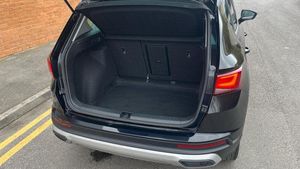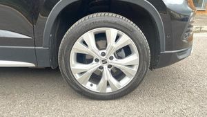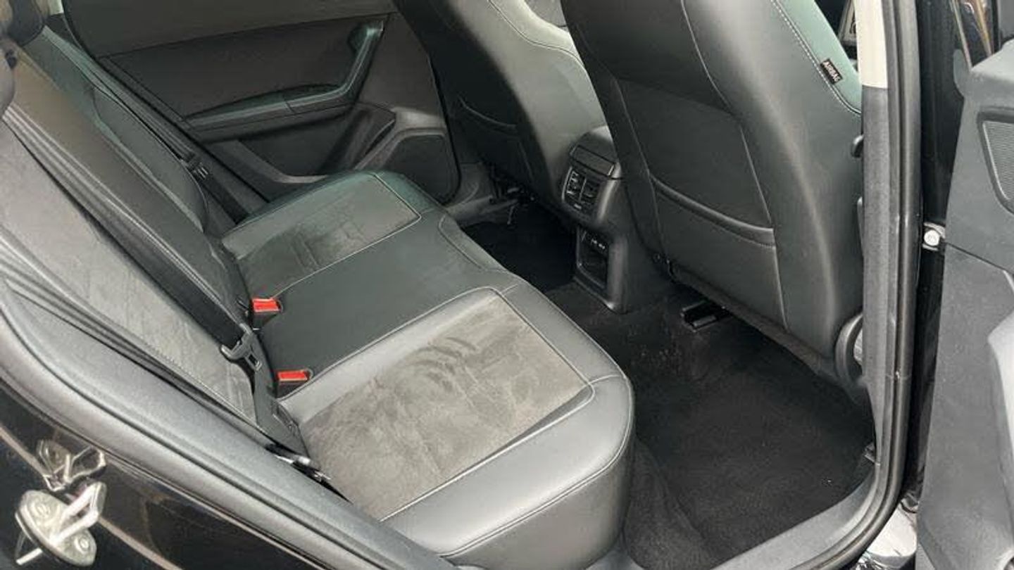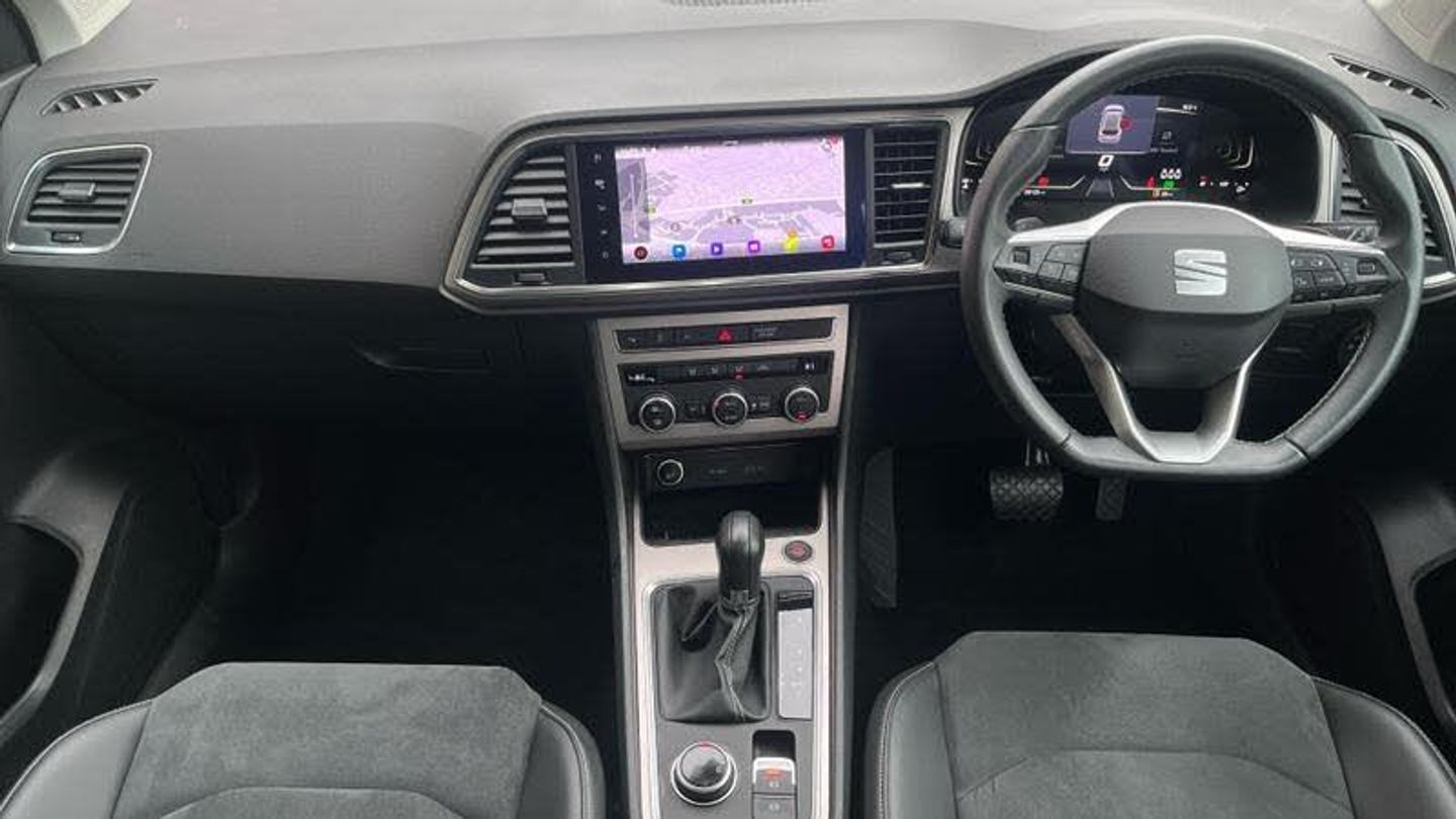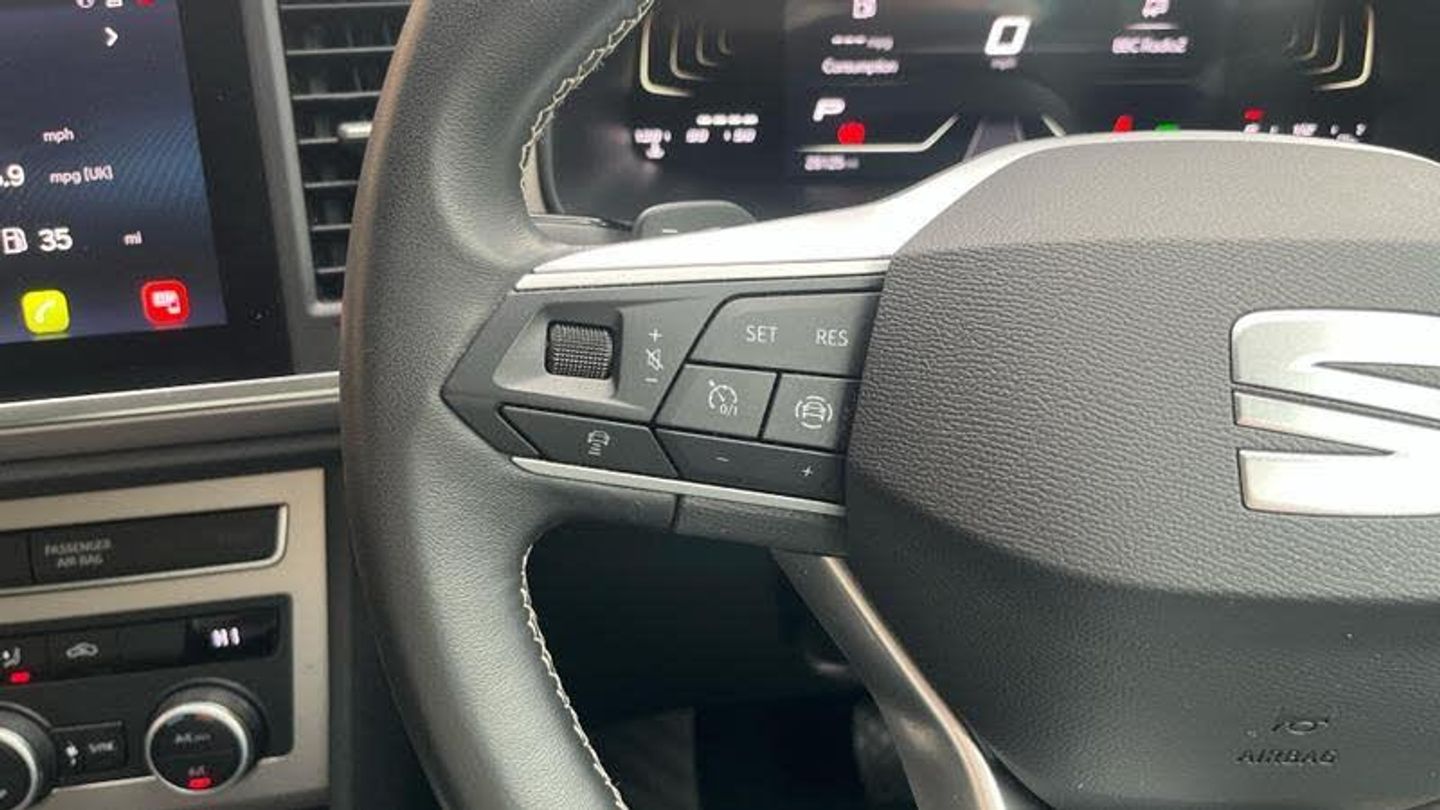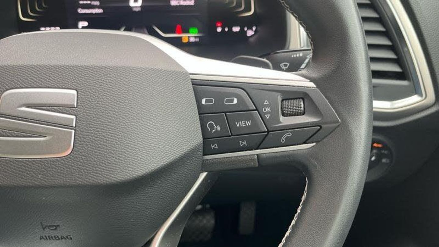 Rear wash/wipe, Variable front intermittent wipers, Black simulated exhaust pipes, Black wheel arch surrounds, Body colour bumpers, Chrome front grille frame, Chrome roof rails, Chrome side window trim, Front grille hot stamping, Rear side wing doors, Reflex silver side mouldings, Dynamic headlight range control with self adjusting whilst driving, Full LED headlamps with lens and LED front fog lamps with cornering function, LED rear tail lights with dynamic indicators, Rear fog lights, ABS, Traction control system (TCS), Electronic stability control (ESC) and Electronic differential lock system (XDS), Electric parking brake with auto hold function, Traction control, Progressive power assisted steering, SEAT drive profile with driving experience button - Normal, Sport, Eco and Individual mode, gearshift, steering and throttle response, Self parking functionality (includes front and rear parking sensors), Electric adjustable/heated/folding door mirrors, 3x3 point rear seatbelts, Airbags - Driver and front passenger airbag with deactivation, front side, two curtain and driver's knee airbags, Manual rear child locks, Single tone horn, E-call, Steering wheel mounted audio/phone controls, Start/stop system, Tailgate, 8 Digital cockpit, Colour multi-function on board computer display, Outside temperature gauge, Trip computer, Chrome interior detailing, 3 seat bench in 2nd row, 60/40 split folding rear seat, Front and rear head restraints, Height adjustable driver and passenger seat with lumbar adjustment, Rear armrest and easy back seat release mechanism from boot, Single front passenger seat, Drawer under right front seat, Leather steering wheel and gear knob, Microsuede upholstery with front comfort seats, Steering wheel mounted gearshift paddles, Convenience pack - Ateca, Interior lighting pack - Ateca, Navigation system pack with DAB - Ateca, Safe and driving pack with lane assist - Ateca, Remote central locking, 18 Brillaint silver alloy wheels, [Audio and Communications]Wireless full link smartphone integration, Wireless phone charger, 12v socket in front, [Drivers Assistance]Rear view camera, Tiredness recognition system, Tyre pressure monitoring system, [Exterior]Dark tinted rear windows, Front and rear electric windows, Locking wheel bolts, [Illumination]Daytime running lights, Door mirrors with welcome light silhouette, [Interior]Illuminated aluminium front door sill, Front seat back storage pockets, Dual zone climate control, Front centre armrest, [Safety and Security]Hill hold control, Front and rear seatbelt reminder, ISOFIX points in outer rear seats with top tether anchorage points, Alarm, Keyless entry