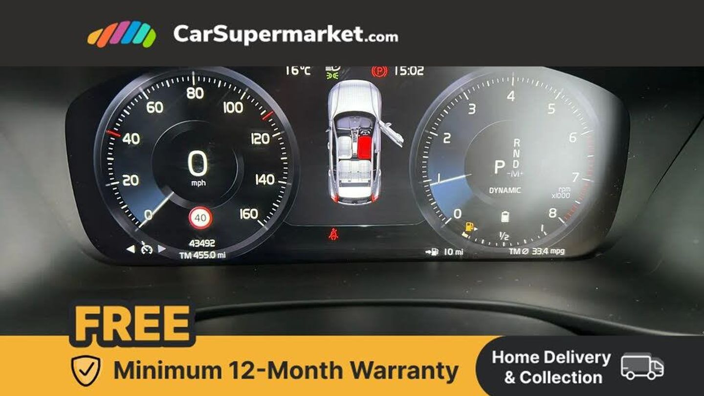 12.3" Active TFT crystal driver's instrument display,9" centre console portrait touch screen,Adjustable steering wheel force,Bluetooth hands free telephone kit,Drive mode selector,Lane keep assist with driver alert control,Oncoming Lane Mitigation,Sensus navigation with European mapping and traffic information,Speed limiter,Speed sensitive steering,Voice activated control for key functions,Volvo on call,Sports chassis,DAB Digital radio,Steering wheel mounted remote controls,Adaptive brake lights with high level LED brake lights,Auto dimming interior mirror,Automatic headlamp levelling,Black stone door mirrors,Black stone roof,Colour coordinated auto folding and heated power door mirrors,Dark tinted windows for rear door side windows and cargo compartment,Dual integrated exhaust pipes with high gloss black surround,Front aluminium tread plates,Front and rear electric windows,High gloss black front and rear skid plate,High gloss black lower front bumper,High gloss black mesh front grille with high gloss black surround,High gloss black roof rails,High gloss black sensus surround deco,High gloss black window trim,Home safe and approach lighting,LED front fog lights,LED Headlights + Active high beam incorporating daytime running lights,Rain sensor with automatic windscreen wiper activation,Rear side wing doors,Rear wiper,Roof antenna,Roof spoiler,Visible VIN plate,12V socket in front tunnel console and luggage compartment,2 zone electronic climate control and rear air vent,3 seat bench in 2nd row,60/40 split folding rear seat,Ambient front door and instrumental panel lighting,Black headlining,Centre console cupholders and storage,Driver's side lower dashboard credit card storage compartment,Front door pocket and front cupholder illumination,Front footwell illumination,Front headrests,Front reading light and theatre lighting,Front tunnel net pocket and integrated waste bin,Glovebox bag hook,Height/reach adjustable steering column,High gloss centre tunnel deco,Illuminated glovebox,Illuminated luggage compartment,Illuminated tailgate,Illuminated vanity mirrors,Isofix attachments on outer rear seats,Key integrated remote,Leather gearknob,Load protection net,Multi directional lumbar support,Multicolour theatre lights,Rear armrest / integral cup holders / storage tray,Rear coat hook,Rear reading and courtesy lights,Single front passenger seat,Sports Leather steering wheel,Sports pedals,Underfloor cargo storage,3x3 point rear seatbelts,City safety includes pedestrian, cyclist and large animal detection and front collision warning with full auto brake,Drivers knee airbag,Dual stage driver/passenger airbags,Electronic parking brake with auto hold,First aid kit,Front and outer rear seatbelt reminder and pretensioners,Front seats SIPS airbags,Hill descent control,Hill start assist,Inflatable curtain,Passenger airbag cut-off device,Road sign information display,Run off Road Mitigation,Run off Road Protection,SIPS (Side Impact Protection System),Slippery road and hazard light alert,Stability and Traction Control with Spin control, Engine Drag Control and Corner Traction Control,Tyre pressure monitoring system,Vehicle deceleration control with Anti-lock Brake System, Electronic Brake Distribution and Emergency Brake Assist,Warning triangle,WHIPS whiplash protection system - front,Anti-theft alarm including immobiliser/volume sensor + level sensor,Care key with user defined top speed,Key integrated remote control central locking + fuel flap with deadlocking system and auto open/close power windows,Locking wheel nuts,Private locking for tailgate,Cutting edge aluminium inlay,Leather-Nubuck - Charcoal,Thunder Grey