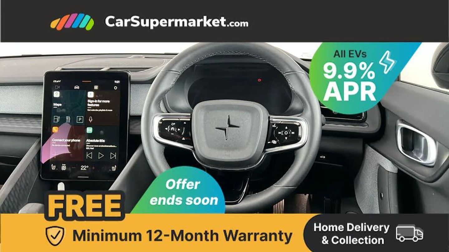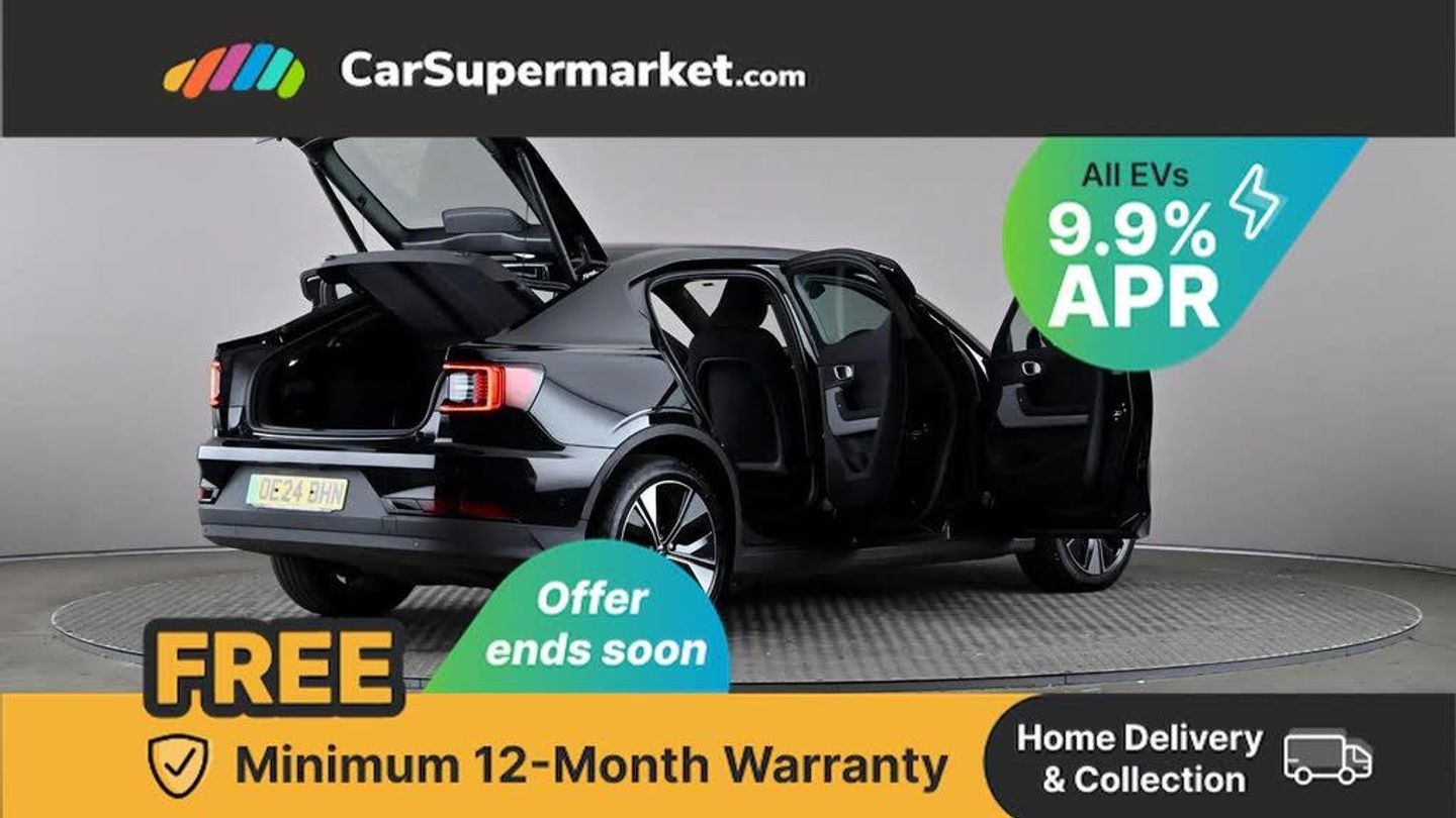 11.15 Central display touch screen,12.3" progressive driver's digital display,360 degree camera,Adjustable speed limiter with speed sign support,Adjustable steering force,Apple car play,Automatic braking after collision,Blind spot information system with steer assist (BLIS),Bluetooth telephony,Cross traffic alert (CTA) with brake support,Cruise control,Cyclist Detection,Driver alert control,Electric tailgate with soft closing,Emergency call service,Forward collision warning,Front park assist,Inductive charging 15W for smart phone,Integrated e-SIM with constant Internet connectivity,Lane keeping aid with steering support,Oncoming Lane Mitigation,Over the air (OTA) updates for lifetime of the vehicle,Park assist side,Polestar app with vehicle functionality,Progressive steering,Ready to drive notification,Rear park assist,Steering wheel buttons,Trip computer,11 kW AC onboard charger,Dynamic chassis,Type 2 Mode 3 charge cable 3P, 230V, 16A, 11kW- 6m,2 USB-C connectors front,2 USB-C connectors rear,DAB Digital radio,High performance audio system with 250W + 8 speakers,Infotainment powered by Android including Google Assistant, Google Maps, Google Play Store,Polestar Connect,Adaptive LED Headlights,Approach lighting,Auto-dimming full-LED rear light bar with persistent light signature,Automatic dimming interior and exterior mirrors,Automatic headlight levelling system,Body coloured front grille surround,Electric and heated frameless colour coordinated autofolding side mirrors,Emblem in grille,Front and rear power windows,Front tread plates,Heated rear window,Preparation for semi automatic towbar,Rain sensor with automatic windscreen wiper activation,Rear side wing doors,Steel roof,Thor's hammer daytime running lights,12V power outlet - Boot,2 Front cupholders,2 rear cupholders,2 zone electronic climate control,3 seat bench in 2nd row,Bag hooks,Charcoal headlining,Cleanzone with pre ventilation + multifilter,Embossed textile vegan upholstery with 3D Etched deco,Front and rear head restraints,Front armrest with storage compartment,Front footwell illumination,Front reading lights and theatre lighting,Front seat 4-way power adjustable lumbar support,Front seats cushion extensions,Front storage compartment (41 litres),Full parking climate and pre-conditioning,Heated front seats,Height and reach adjustable steering column with speed sensitive steering,Hexagonal shaped gear shifter with illuminated polestar symbol,High voltage coolant/heater,Hooks on rear B-pillar,Humidity sensor,Illuminated vanity mirrors + ticket holder,Interior mid level illumination,ISOFIX attachment on rear outer seats,One pedal drive (regenerative braking), adjustable,Rear reading and courtesy lights,Rear seat 40/60 split,Semi-electric front seats with drivers seat memory,Single passenger seat,WeaveTech steering wheel,3x3 point rear seatbelts,Alcolock preparation,Collision avoidance and mitigation by braking and steering,Connected safety with slippery road alert and hazard light alert,Driver and front passenger airbags,Dual curtain airbags,Dual inner side airbags,Dual Side airbags,Electrical child lock for rear doors and rear windows,Electronic stability control,First aid kit,Front and outer rear seatbelt reminder and pretensioners,Hill start assist,Indirect tyre pressure monitoring system (ITPMS),Passenger airbag cut-off switch,Pedestrian detection,Polestar digital key,Post-impact Braking,Power parking brake with auto hold function,Road sign information display,Run off road mitigation and protection,Safety assistance,Stability and Traction Control with Spin control, Engine Drag Control and Corner Traction Control,Vehicle deceleration control with Anti-lock Brake System, Electronic Brake Distribution and Emergency Brake Assist,Warning triangle,WHIPS whiplash protection system - front,Acoustic vehicle alert system (AVAS),Alarm inclination sensor,Alarm with interior alarm motion sensor,Double-locking door locks,Key integrated remote control central locking,Keyless entry with handsfree boot lid opening,Keyless Start,Lockable wheel bolts,One key fob and one activity key,Tyre repair kit,Space