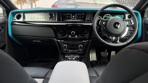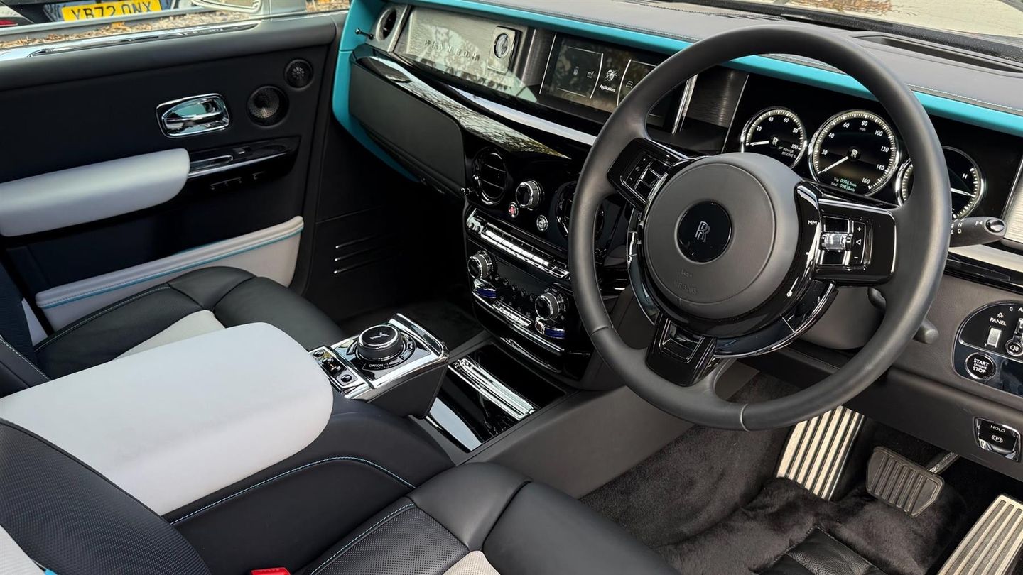 VAT Qualifying Vehicle,Starlight/Shooting Star Headlining,Immersive Seating with Occasional Third Seat,Coolbox for Lounge Seat,Rolls-Royce Bespoke Audio,Dark Chrome Front Grille,Front & Rear Massage Seats,Front & Rear Ventilated Seats,22" Forged Black Painted Disc Wheel,Chrome Plated Visible Exhausts,Rear Privacy Glass,Ambient Air Package,Active Cruise Control with Stop & Go,Comfort Entry System,TV Function,Universal Garage Door Opener,Tyre Pressure Monitor,DAB Tuner,Apple CarPlay,Rear Theatre Configuration,Picnic tables,Signature Key in Turchese,Illumuninated Treadplates - "Phantom",Polished Metal Fuel Filler Cap,Carbon Fibre Spirit of Ecstasy,Enhanced Exterior Black Detailing,SOE Embossing to all Doors,Coloured Interior Brightwork in Black,RR Monogram to all Headrests in Turchese,Contrast Seat Piping in Turchese,Coloured Stitching in Turchese,Extended Piping in Turchese,Pinstripe Applied to Wheel Centre in Turchese,Coachline in Turchese,Contrast Exterior Colour - Black Diamond,Rear Compartment Footrests,Rivenslate Gallery,Illuminated Grille,Piano Black Veneer,Driver Assistance Systems