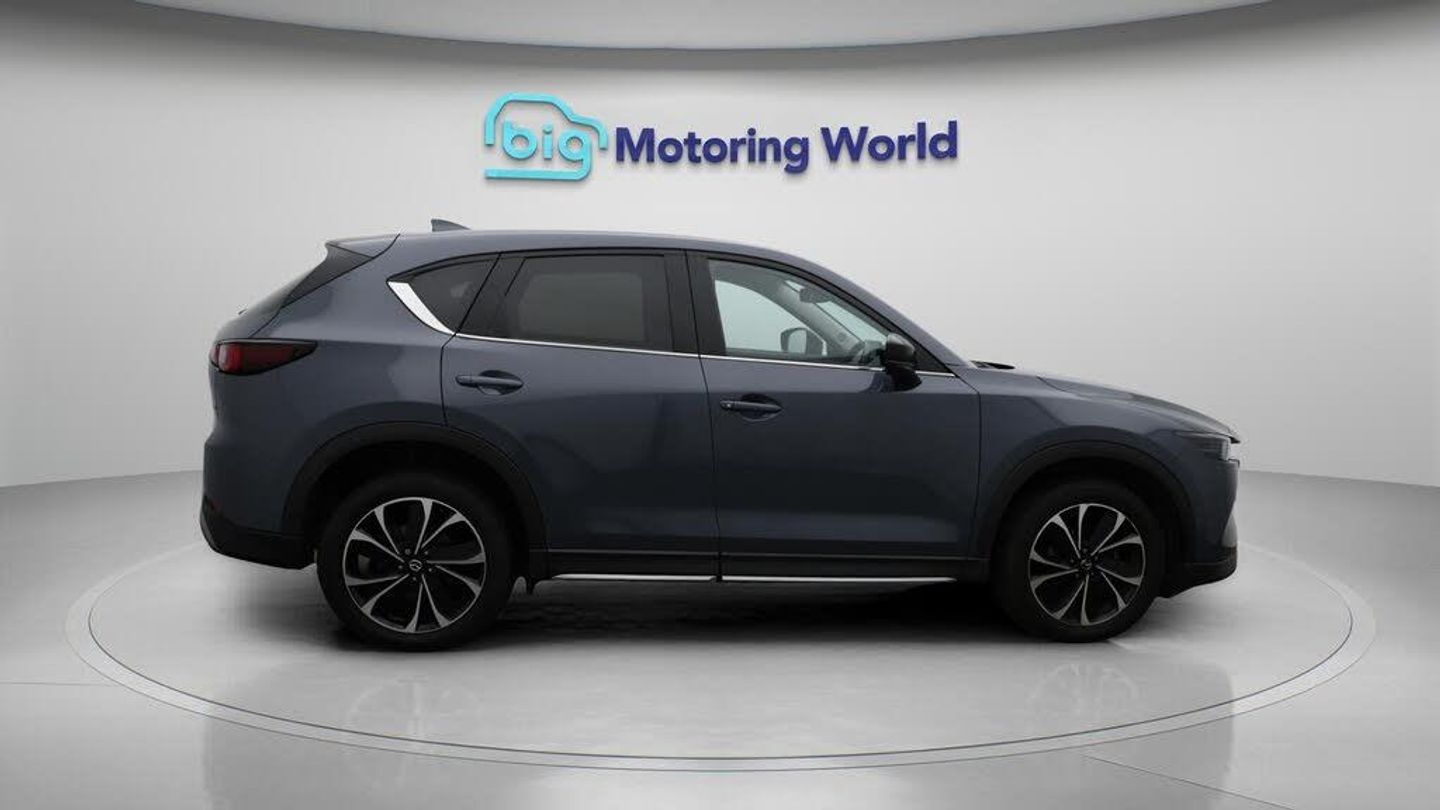 19'' Alloy wheels,Part Leather-Our Mazda CX-5 is finished in Grey. Specification includes a range of fantastic features including 19'' Alloy wheels, Part Leather Seats, Satellite Navigation, Privacy Glass, Heated Seats, Bluetooth, Blind Spot Assist, Parking Sensors, Touch Pad, Powered Folding Mirrors Specification information is supplied by CAPHPI and may vary to the actual car. This data does not form any part of a buying contact. Please check specification prior to purchase in-store. The MOT is valid until July 2026, visit bigmotoringworld.co.uk for more photos, a 360 tour, service history and a free HPI report.Were BIG on peace of mind and this Grey Mazda CX-5 has completed our comprehensive 200 point inspection and passed all checks. Its ready for you to drive away with immediate collection in-store. We include a 90-day warranty as standard plus an option to extend for up to 3 years.Reserve this car exclusively for you, safely and securely at bigmotoringworld.co.uk, with a fully refundable £99 deposit. Test drive before you buy, with no commitment, no hassle and a completely haggle free experience. Still searching and want to see thousands more cars? We are BIG on choice with over 8000 cars to choose from.Visit our award winning web site bigmotoringworld.co.uk.Were Big Motoring World and were BIG on what matters to you.
