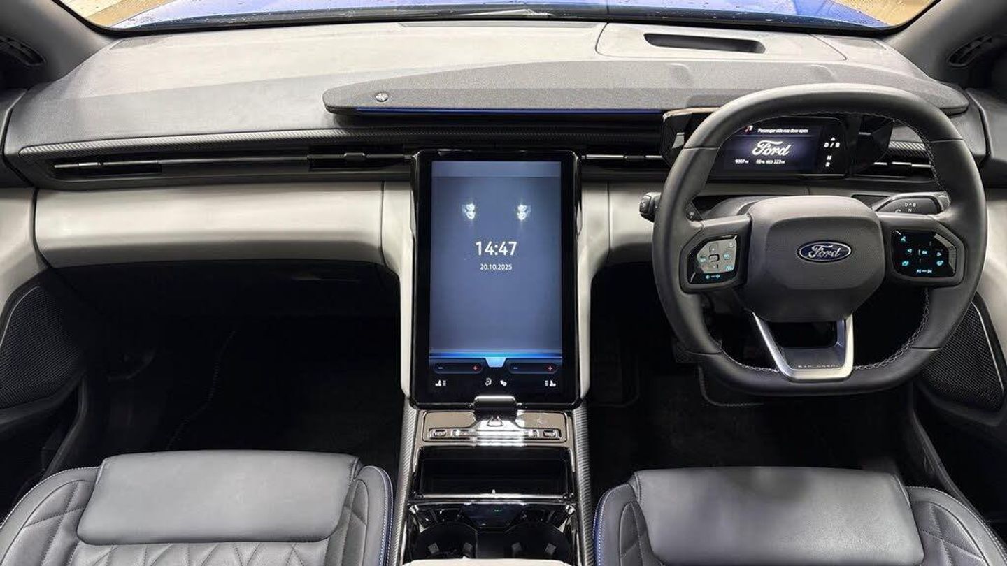 12-Way Power Driver Seat with Memory, 14.6in Touchscreen with SYNC Move with Wireless Apple CarPlay and Android Auto Integration, 20in Alloy Wheels - Aero - Magnetic - Bright Machined, 5.3in Full Digital Cluster Screen, 6-Way Manual Passenger Seat, ABS - Anti-lock Braking System, Airbags - Driver, Airbags - Front Passenger, B&O Premium Sound System, BP Pulse Charging Access - 1 Year Trial, Blue Oval Charge Network Access - Lifetime Access, Cross Traffic Alert with Active Braking and Exit Warning, Door Mirrors - Heated - Power-Foldable with Logo Puddle Lamps and Memory Function - Black, Dual Electronic Automatic Temperature Control, Electric Windows - Front, Front Door Scuff Plates, Front and Rear Parking Sensors, Handsfree Power Tailgate, Heated Driver and Passenger Seats with Massage Function, IONITY Charging Access - 1 Year Trial, Inductive Wireless Phone Charging, Intelligent Adaptive Cruise Control with Stop-Go, Keyless Entry-Start, LED Ambient Lighting, Lane Keeping Aid with Lane Departure Warning, Matrix LED Headlamps with Automatic High-Low Headlamp and Glare-Free Function, Panoramic Roof, Power Steering, Pre-Conditioning - Battery and Cabin, Public Charging Cable - Mode 3 Type 2, Rear Lights - LED, Rear Privacy Glass, Rear View Camera, Selectable Drive Modes, Speakers - x10, Thatcham Alarm, Traffic Sign Recognition with Navigation with Wrong Way Alert, Driver Assistance Pack, Heat Pump, Full Sensico - Black Onyx, FORD DIRECT CAR - 24 MONTHS UNLIMITED MILEAGE NATIONWIDE WARRANTY & 24 MONTHS FORD ASSISTANCE