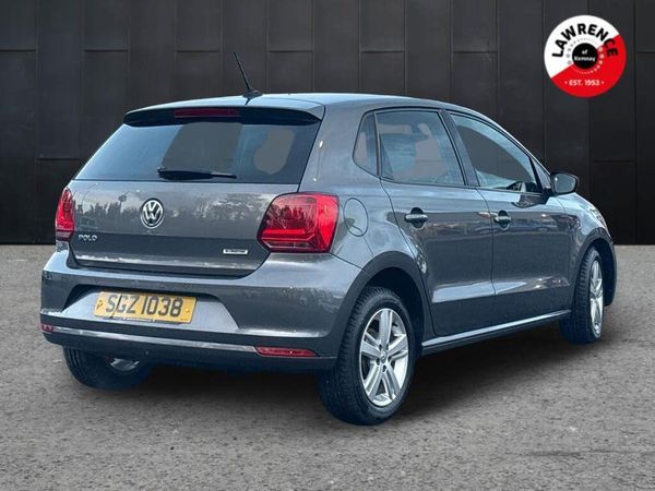 Bluetooth Telephone preparation, Driver alert system, Multi function display, Multifunction computer, PAS - speed related, Service interval indicator, Warning buzzer and light for front seatbelts unfastened, 6 speakers, Composition media system with radio, glovebox mounted CD, colour touch screen, SD card, aux-in, USB, multimedia interface, DAB Digital radio, Black grille with chrome surround, Body colour bumpers, Body colour door handles, Body colour door mirrors, Body coloured side sills, Chrome trimmed front air intake surrounds, Electric front windows, Electric operated/heated door mirrors, Front fog lights with static cornering function, Front wash/wipe with interval delay, Heat insulated tinted glass 65% light absorbing from B pillar back, Heated rear window with auto timer, Rear electric windows, Rear windscreen washer and wiper with interval delay, 12V power socket in centre console, 2 bag hooks in luggage compartment, 2 cupholders, 3 rear head restraints, 3 spoke steering wheel, 4 grab handles, 60/40 split folding rear seat, Centre console storage, Chrome interior door handles, Driver and passenger sunvisors, Driver seat height adjust, Dust/pollen filter, Front door pockets, Front passenger seat height adjust, Front seat backrest storage nets, Front/rear reading lights, Glovebox, Height/reach adjustable steering column, Illuminated vanity mirror, Interior light with delay, Isofix Preparation 2 Rear child seats, Luggage compartment cover, removable, Luggage compartment lighting, Matt chrome gear lever gaiter surround, Multifunction leather steering wheel with leather gear knob/handbrake grip, Storage compartment in front doors, Storage compartment in rear doors, Sunglasses holder, Variable boot floor, Cruise and Park Pack - Polo, 3 point height adj front seatbelts + pretensioners, 3x3 point rear seatbelts, ABS, Automatic post collision braking, Driver/front passenger airbag, Driver/Passenger whiplash optimised head restraints, ESC - Electronic Stability Control + traction control, ESP with EDL + ASR, Hill hold control, Hydraulic Brake Assist (HBA), Tyre pressure monitoring system, Alarm with remote central locking and interior protection, Electronic engine immobiliser, Air vents in Matt chrome, Matt chrome interior trim, 15" steel spare wheel