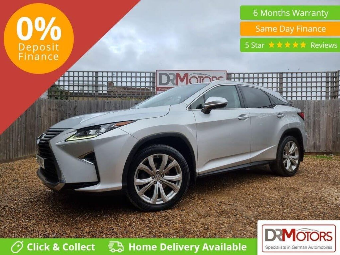 Lexus RX 450h 3.5 V6 Luxury SUV – Petrol Hybrid CVT 4WD +++ November Special Offer – 18 Months Nationwide Gold Warranty Included in the Price! +++ This stunning Lexus RX 450h combines luxury, performance, and efficiency in one exceptional SUV. The vehicle is automatic, petrol hybrid, and ULEZ compliant, offering a smooth and refined drive with low running costs. Finished in a beautiful colour combination, it's very clean inside and out – the first to see will buy. It comes with full Lexus service history (10 services) and a valid MOT until December 2026. The car includes satellite navigation, rear parking camera, heated, cooled, and electric leather seats with memory function, front and rear parking sensors, Bluetooth hands-free connectivity, 20-inch alloy wheels, cruise control, DAB radio, USB/AUX connections, electric tailgate, privacy glass, and a tow bar. This Lexus RX offers exceptional comfort and space, excellent fuel efficiency, and great value for money. It comes with two keys, has been well maintained, and represents an ideal choice for anyone seeking a premium hybrid SUV. Finance options are available – please call us for details. We have over 150 DR Approved Used Cars on site and are proud to be a CarGurus Top Rated Dealer 2020, 2021 & 2022. Debit cards are accepted. Please note: there is an additional £149 admin fee on all vehicles. Every vehicle is supplied with a 6-month Nationwide Gold Warranty, with the option to upgrade to 1 year for £399 or 2 years for £599. All cars are fully Experian HPI clear. Part exchange is welcome. Viewing is by appointment only. To arrange a viewing or place a deposit, please call our Sales Manager Jason on 07858 818 903. Visit www.drmotors.co.uk for full finance details and more vehicles. Every effort has been made to ensure the accuracy of the above information. However, errors may occur. Please check details with a salesperson before making your purchase.
