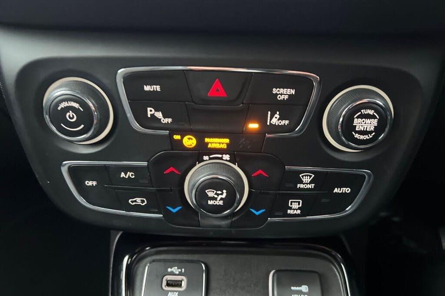 12V Auxiliary Power Outlet - Front, 18in Alloy Wheels - Low Gloss Black - Centre Cap Low Gloss Black, 230v Auxiliary Power Outlet, 4 Way Front Headrest Seats, Active Speed Limiting Device, Adaptive Rear Brake Lights, Advanced Brake Assist, Air Vents - Front and Rear, Airbags - Advanced Multistage Front - Front Side and Side Curtain Front and Rear, Alarm - Premium, All Speed Traction Control, Ambient LED Interior Lighting, Anti Lock 4 Wheels Disc Brake - ABS, Aspherical Driver Exterior Mirror, Auto Dimming Rear View Mirror, Autonomous Emergency Braking, Auxiliary 12v Power Outlet In Cargo Area, Black Front Grille, Black Side Roof Rails, Black Window Surrounds, Body Colour Bumpers, Body Colour Exterior Mirrors, Body Coloured Door Handles, Body-Colour Steel Roof, Brilliant Black, Capless Fuel Filler, Cargo Compartment Carpet, Cargo Compartment Cover, Cargo Compartment Lamp, Cargo Compartment Organiser, Cargo Tie Down Loops, Centre Console with Sliding Armrest, Centre Rear 3-Point Seat Belt, Child Seat Anchor System, Cloth - Black, Coat Hooks, Compass Badge - Gloss Black, Cruise Control, Daytime Running Lights, Door Mirrors - Power Folding, Drivers Manual Height Adjustable Seat, Dual Note Electric Horns, Dual Zone Climate Control, Electric Power Steering, Electric Windows - Front One Touch, Electronic Park Brake, ERM - Electronic Roll Mitigation, ESC - Electronic Stability Control, Fog Lamp Bezels - Gloss Black, Forward Collision Warning Plus, Front Fog Lights with Cornering Lights, Front Height-Adjust Seatbelts, Front Passenger - Seat Belt Alert, Front Tow Eye, Full Length Floor Console, Gear Knob - Satin Chrome, Gear Shift Indicator, Glovebox with Damper Door, GPS Navigation, Halogen Reflector Headlamps, Head Restraints - Rear x3, Headlamp Off Time Delay, Headlamps - Automatic, Heated Rear Window, Hill Start Assist, Illuminated Entry, Instrument Cluster - 3.5in Monochrome TFT Display, Integrated Voice Command, Jeep Badge, Keyless Enter-N-Go, Keyless Entry - Remote Keyless Fob - Proximity, Keyless Entry with Immobiliser, Lane Departure Warning Plus, Leather Wrapped Steering Wheel, LED Tail Lamps, Lower Bodyside Cladding - Black, Map-Courtesy Lamp, Map-Reading Lamps, Media Centre Electronics Storage, Night Eagle Badge, Occupant Detection System, Overhead Console, ParkSense Front and Rear Park Assist System, ParkView Rear Back Up Camera, Passenger Airbags Deactivation, Passenger Assist Handles, Passive Pedestrian Protection, Power Locking Fuel Filler Door, Pretensioning Seatbelts, Rain Sensitive Windscreen Wipers, Rear 60-40 Split Folding, Rear Air-Conditioning and Heater Vents, Rear Door Child Protection Locks, Rear Fog Lamps, Rear Window Washer-Wiper, Remote USB Port, Removable Short Mast Antenna, Seats - Front Back Map Pockets, Seats with Electric Lumbar Adjustment, Solar Control Glass, Speakers x6, Speed Sensitive Power Locks, Steering Column - Electronic Shaft Lock, Steering Column - Tilt and Telescopic, Steering Wheel - Mounted Audio Controls, Sun Visors with Illuminated Vanity Mirrors, Technology Pack, Temperature and Compass Gauge, Trailer Sway Damping - Control, Tyre Pressure Monitoring Display, Tyre Service Kit, Uconnect 8.4in DAB Radio with Touchscreen USB AUX Satellite Navigation and Bluetooth, Uconnect Live, Vehicle Information Centre, Winter Pack