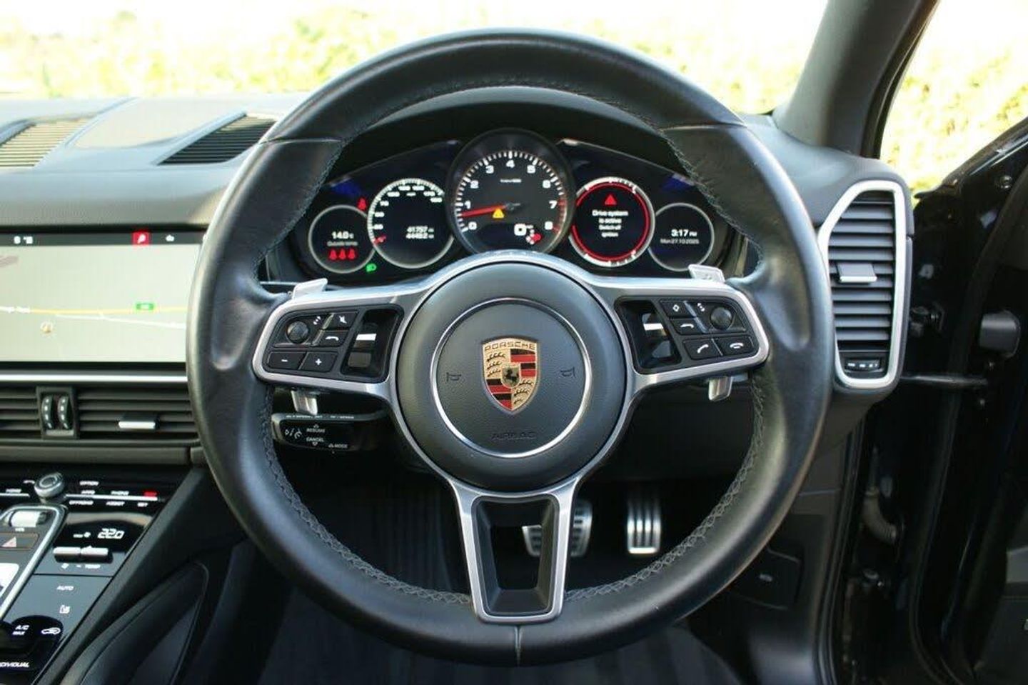 2021/21 Porsche Cayenne S 2.9T Tiptronic S 440bhp finished in Jet black metallic with black leather interior. One lady owner from new with full Porsche and Porsche specialist service history and comes with the perfect spec! Specification includes 21 inch RS Spyder design alloy wheels in gloss black, Porsceh colour crested wheel centres, wheel arch extensions in exterior colour, sports tailpipes in black, panoramic roof system, Porsche logo painted in matt black and model designation painted in black high gloss, monochrome black pack, privacy glass, LED headlights, front and rear parking sensors with reversing camera, electric folding door mirrors, electric tailgate, PASM Porsche active suspension management, 18 way adaptive sports seats, electric memory package, heated seats, heated steering wheel, Porsche crest on headrests, BOSE surround sound system, PCM satellite navigation, bluetooth, DAB radio, USB and AUX connection, Apple Car Play, Android Auto, piano finish interior trims, cruise control, multi-function steering wheel, paddleshift, voice control, dual zone climate control and sliding centre armrest with storage. Full service history having had its first minor service completed by Porsche in March 2023 at 18759 miles and then serviced by a Porsche specialist which was a major service in December 2024 at 33931 miles. Next service not due until August 2026 or another 9400 miles. 2 x keys, HPI clear, highly competitive HP and PCP finance packages available, RAC warranties available for up to 3 years, 12 Months RAC breakdown included, 12 Months MOT and all part exchanges considered. View this car on our YouTube channel (JB Prestige Cars) All of our cars are professionally detailed in house and are prepared to the highest standard possible. We are a family run company where customer service is paramount, please read all of our 5 star reviews on Auto Trader and Google. like us on Facebook and follow us on instagram! (JB Prestige Cars)